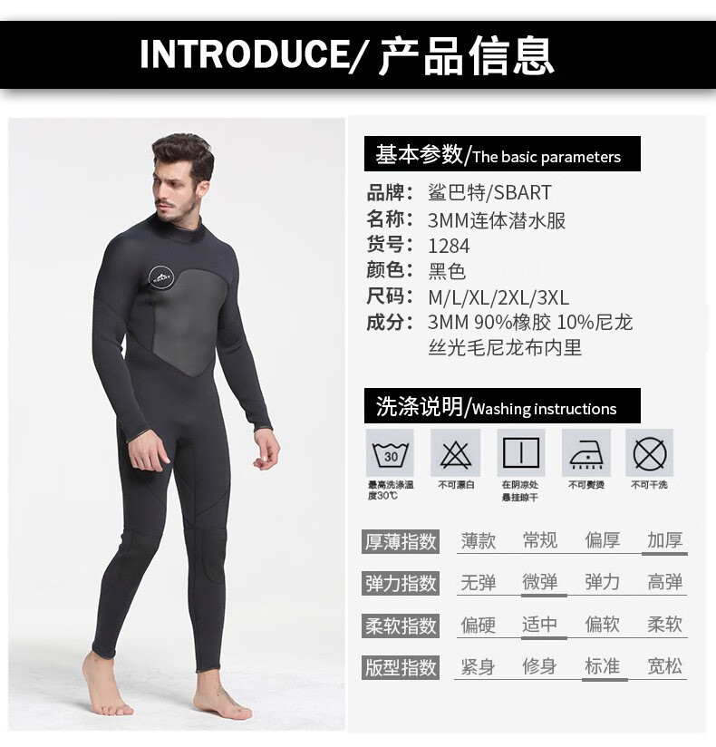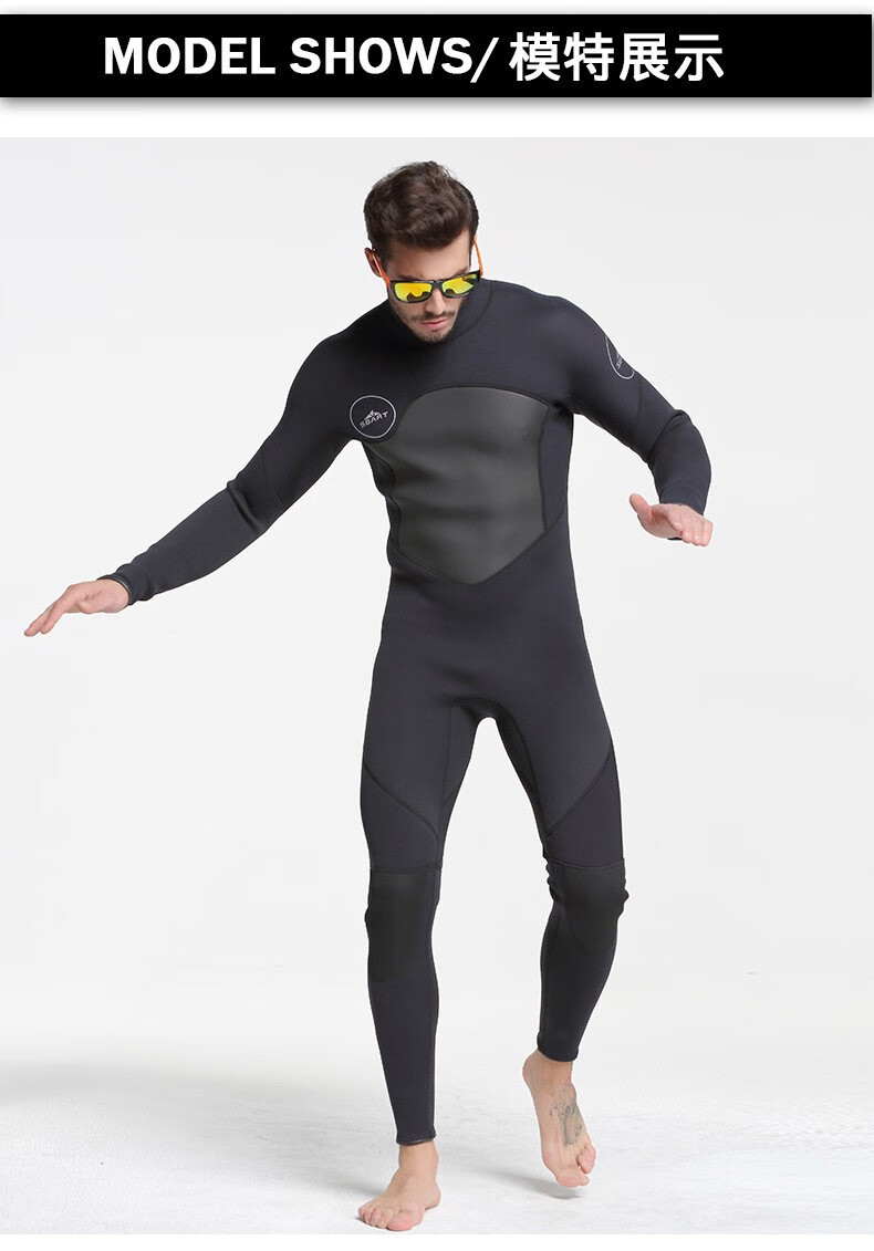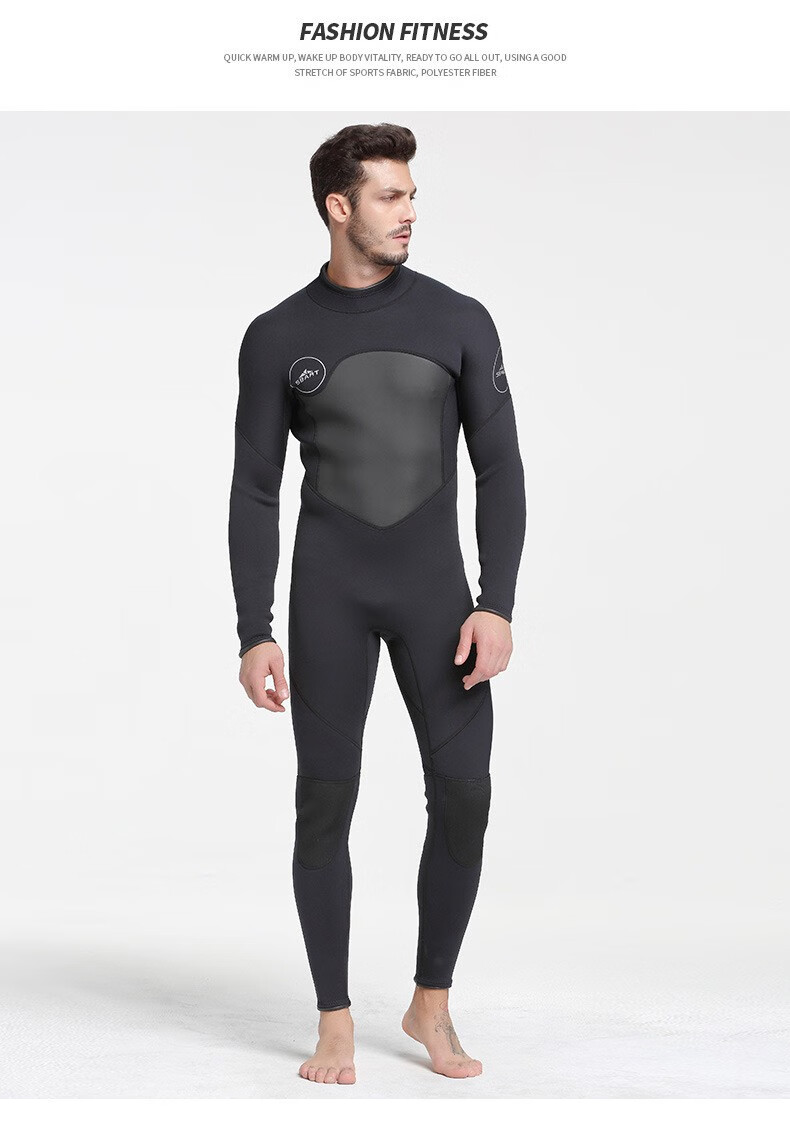 SBART 3MM velvet wetsuit for men, thermal clothing, cold-proof clothing, windproof snorkeling suit, swimsuit, terry cloth, adult wet suit, 3mm black M