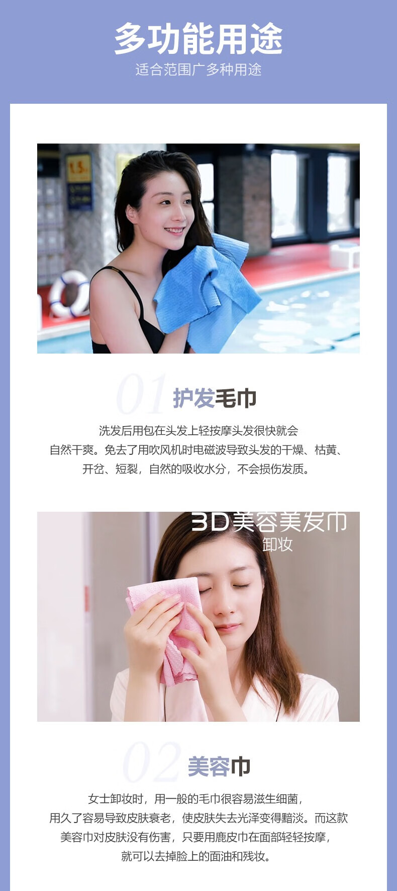 Lier's deerskin towel for wiping hair, quick-drying, face-washing, beauty towel, car-washing, home absorbent, quick-drying towel, 84*32cm, 3 mixed colors