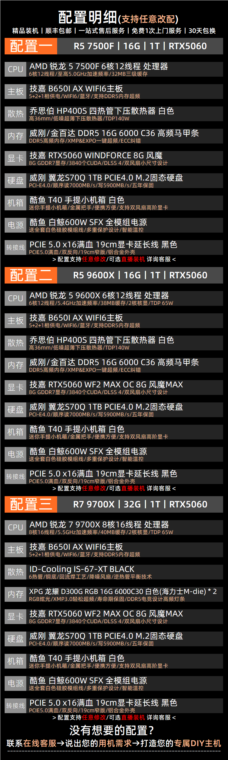 Gigabyte itx small steel gun RTX5060Ti/AMD Ryzen 7 9700X/9600X portable desktop high-performance online game mini home college student computer host 2 R5 9600X丨RTX5060