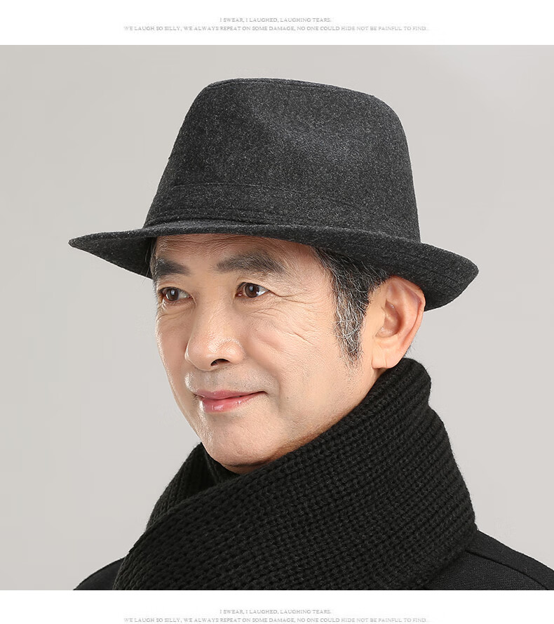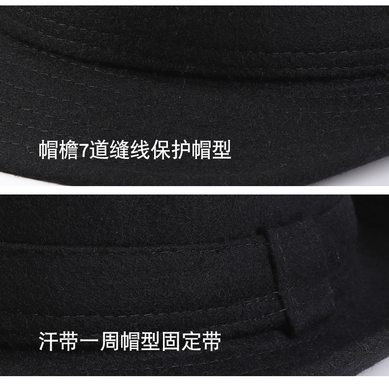 Mo Zilan old man's hat men's autumn and winter thickened velvet big brim middle-aged and elderly hat old man grandpa woolen jazz black M58-59cm