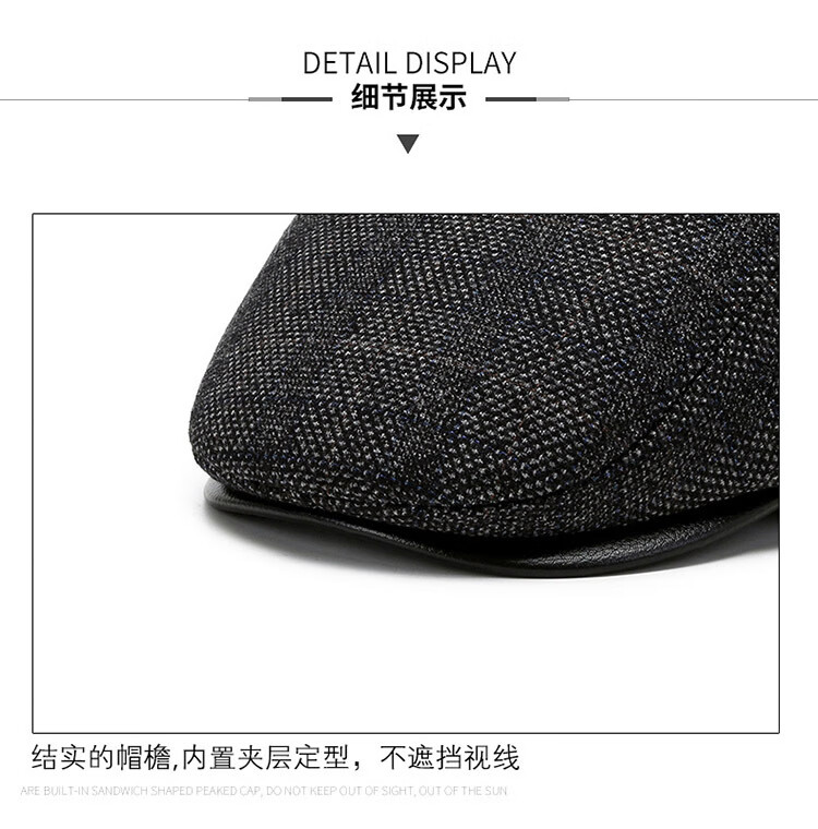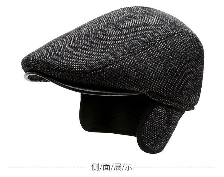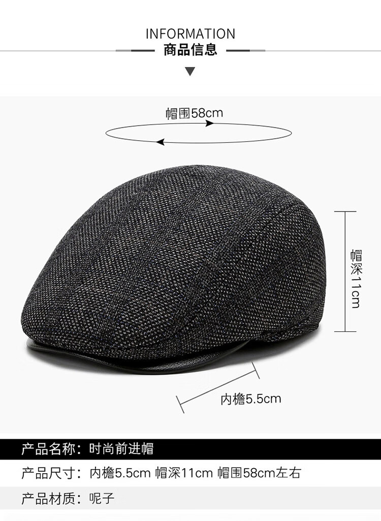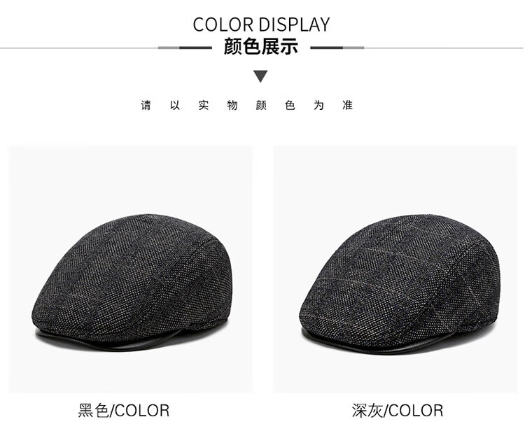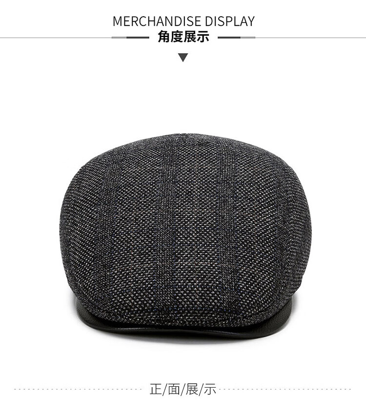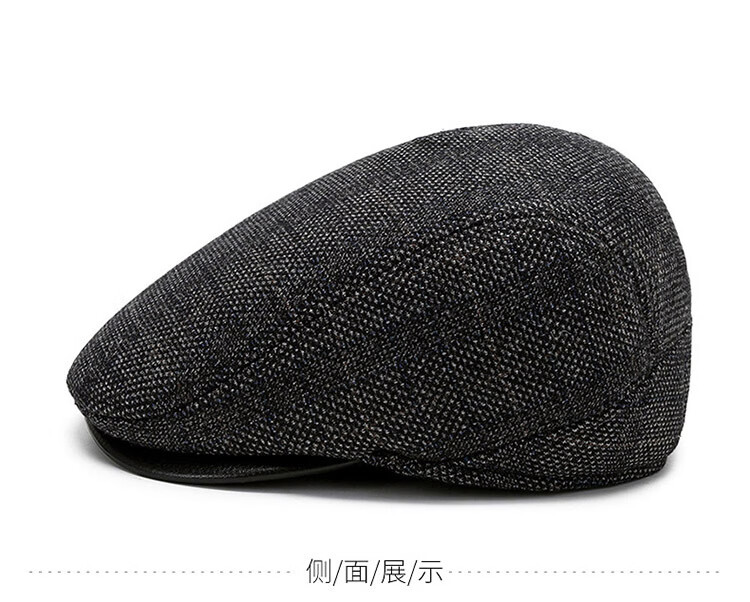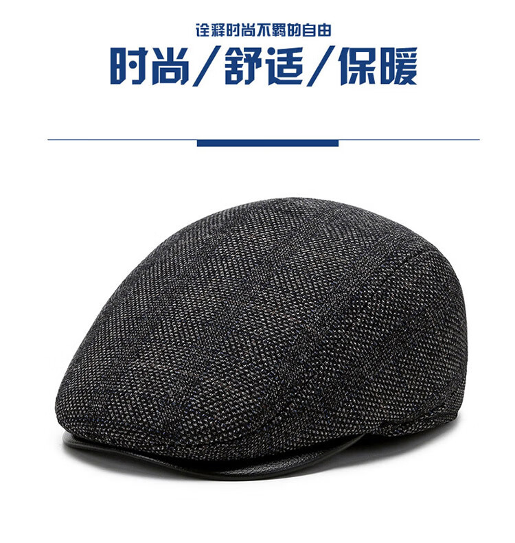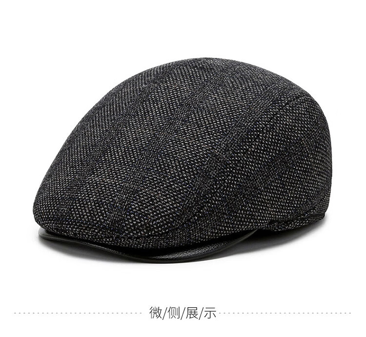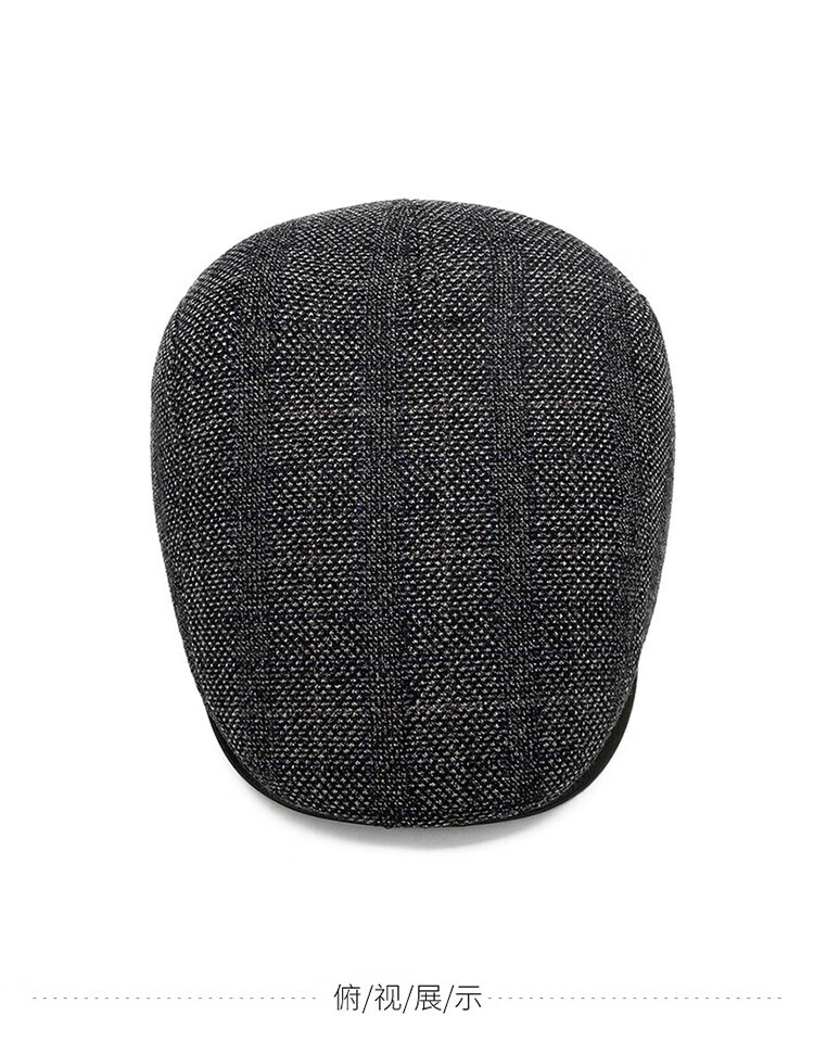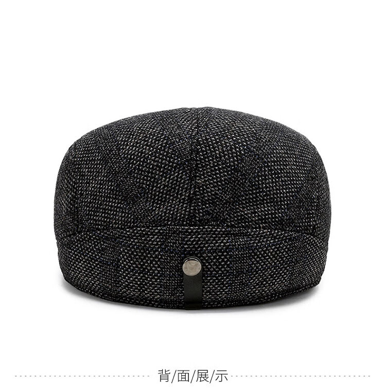 Mo Zilan autumn and winter new plaid woolen forward beret men's middle-aged and elderly plus velvet duck hat black L58-60cm