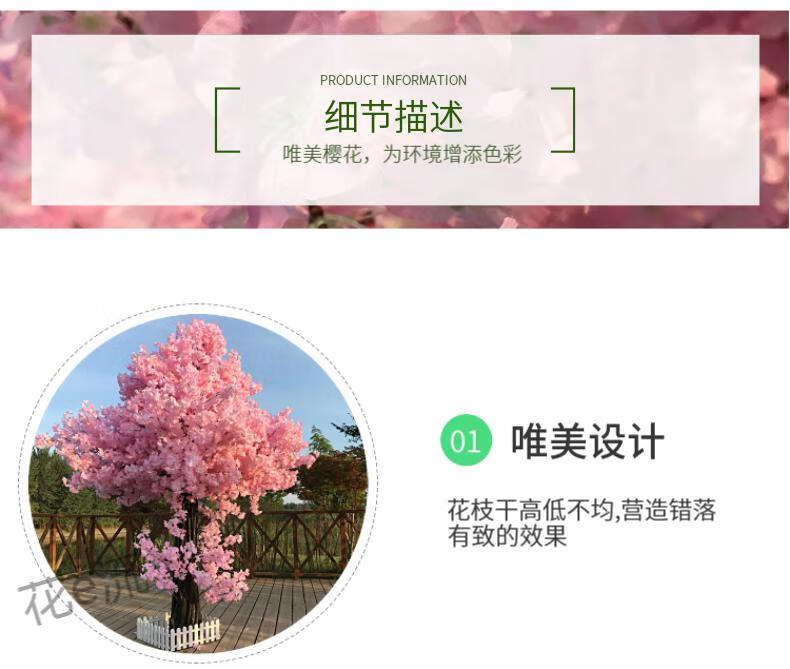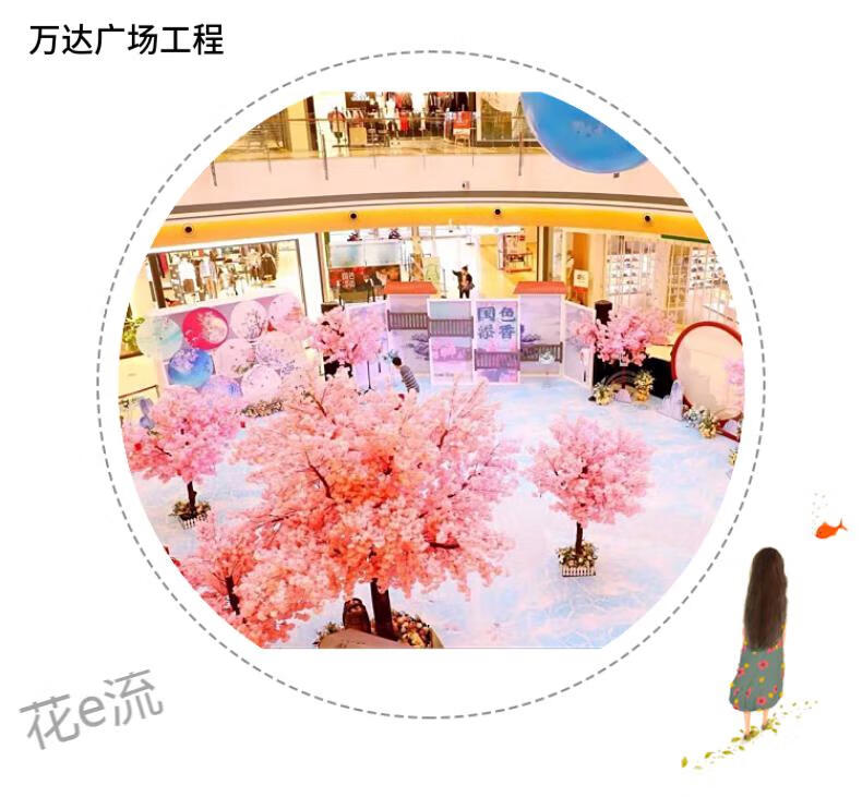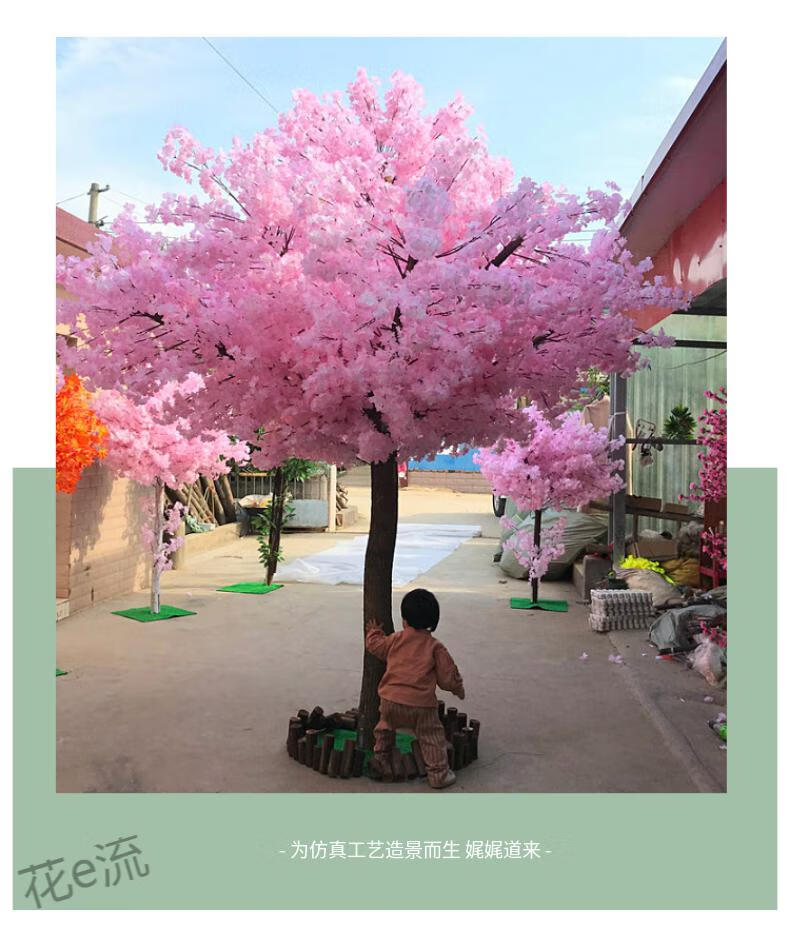 Flower e flow simulated cherry blossom fake peach tree large plant simulated cherry blossom tree simulated peach blossom tree wishing tree peach blossom living room decoration round 3.5 meters high 3.5 meters wide