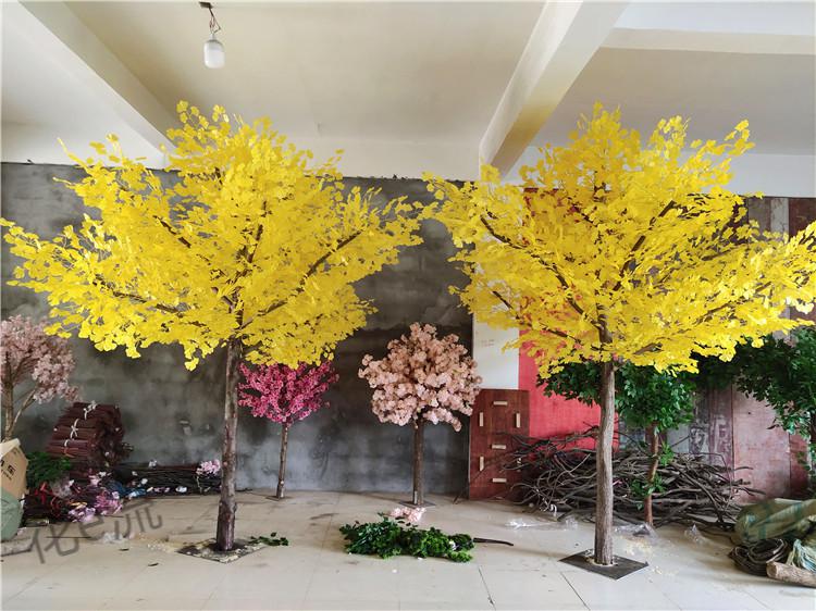 Hua e flow large simulation ginkgo tree simulation tree wedding restaurant hotel interior decoration golden wishing tree props tree fake tree (extended shape) 2.5 meters high and extended 2.5 meters