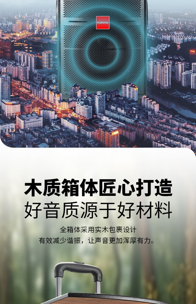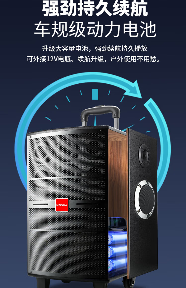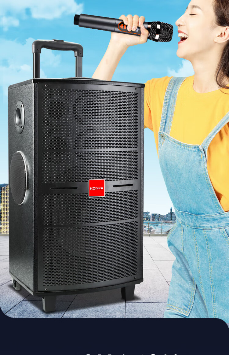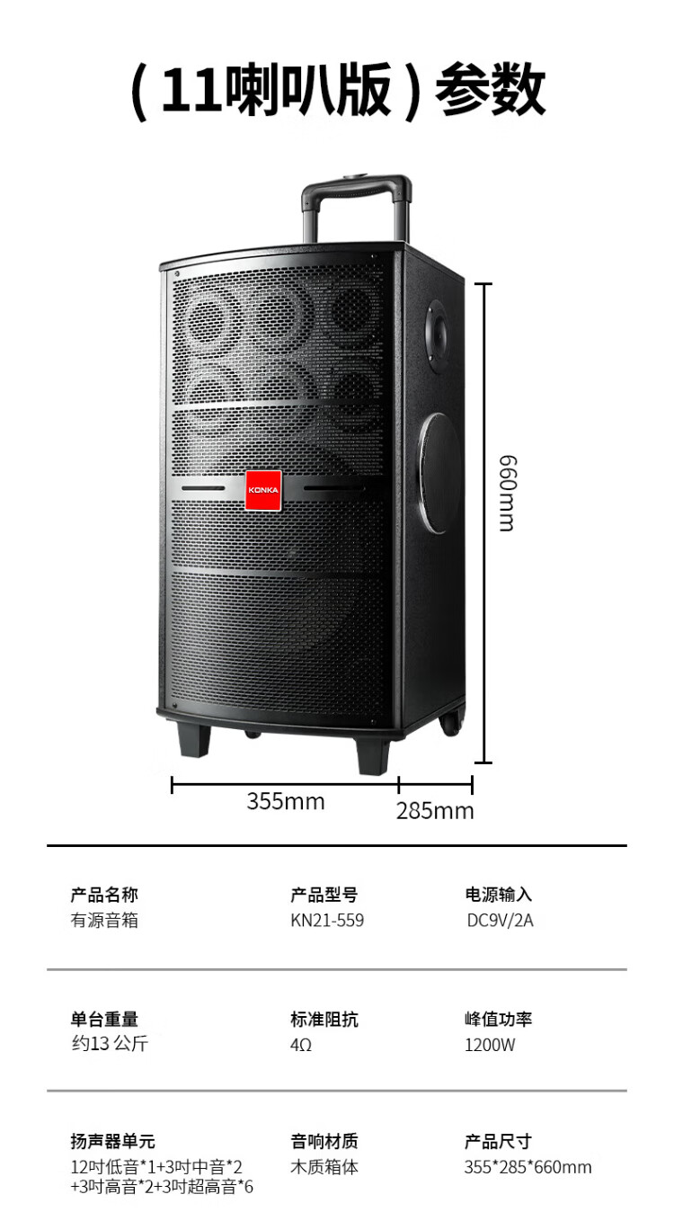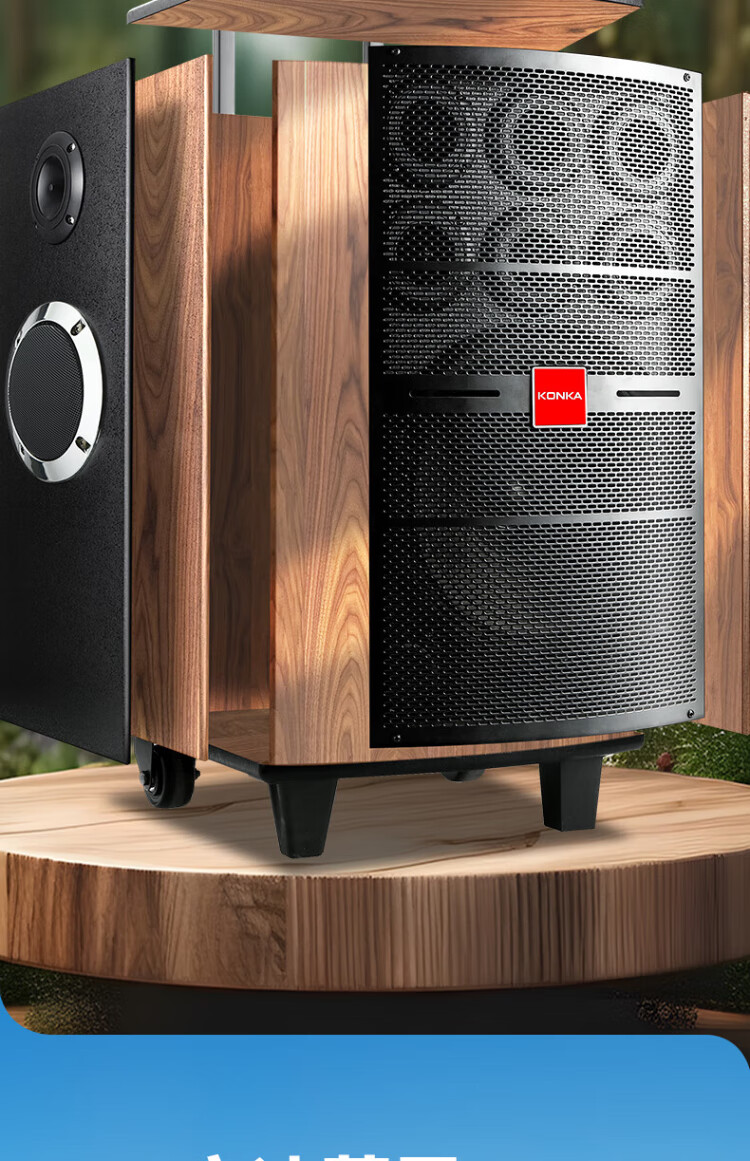 Konka square dance audio three-way outdoor mobile trolley performance singing karaoke wooden speaker subwoofer home portable Bluetooth high power high volume with wireless microphone 7 speakers + 2 rechargeable microphones