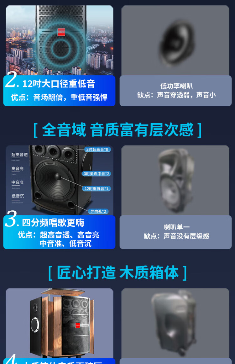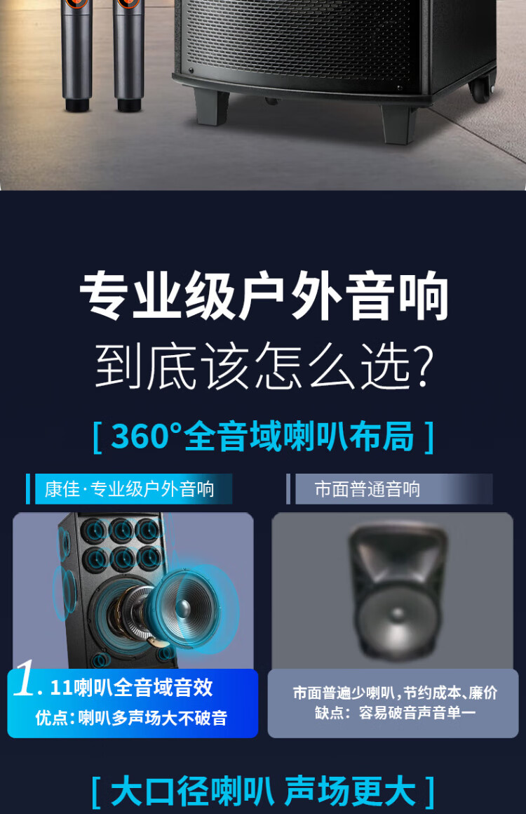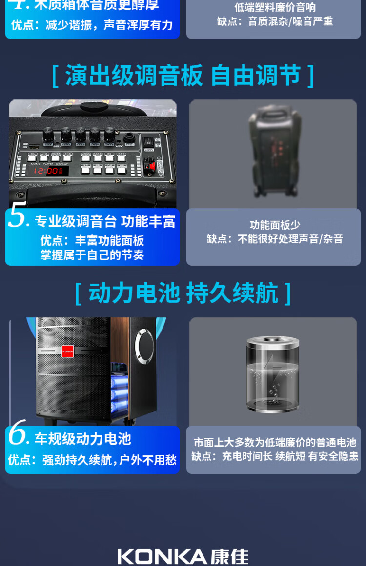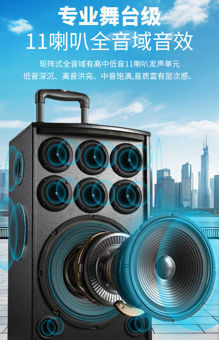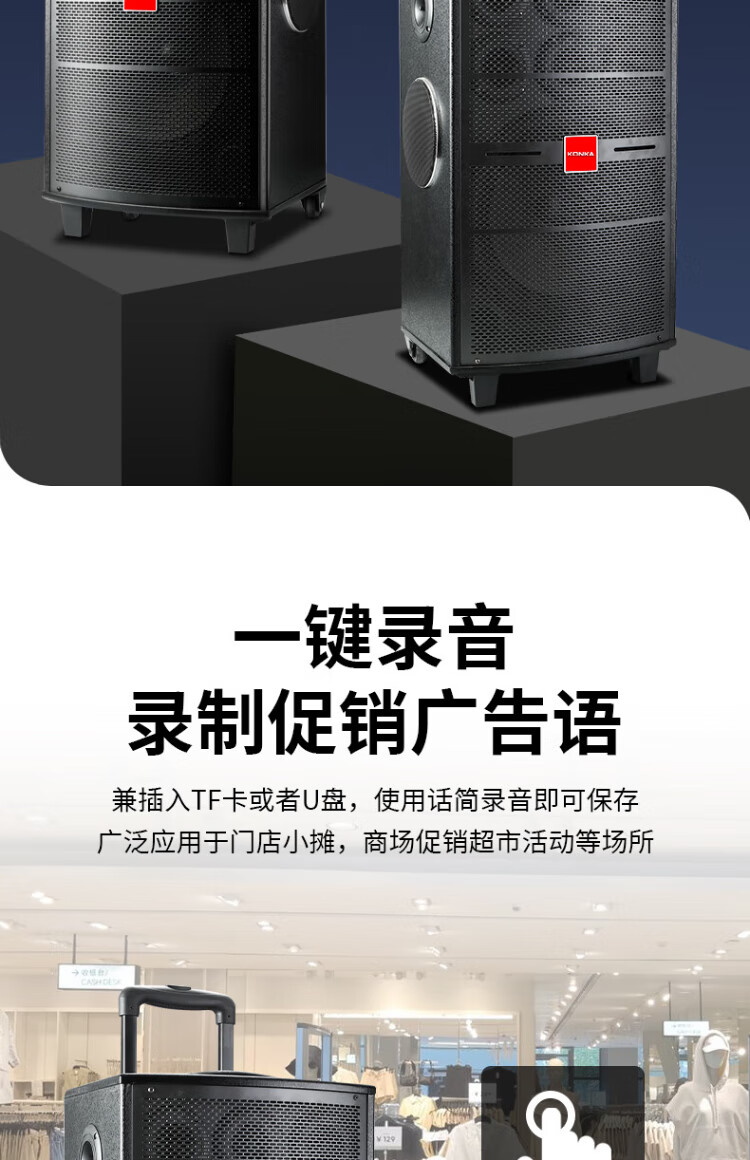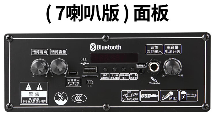 Konka square dance audio three-way outdoor mobile trolley performance singing karaoke wooden speaker subwoofer home portable Bluetooth high power high volume with wireless microphone 7 speakers + 2 rechargeable microphones
