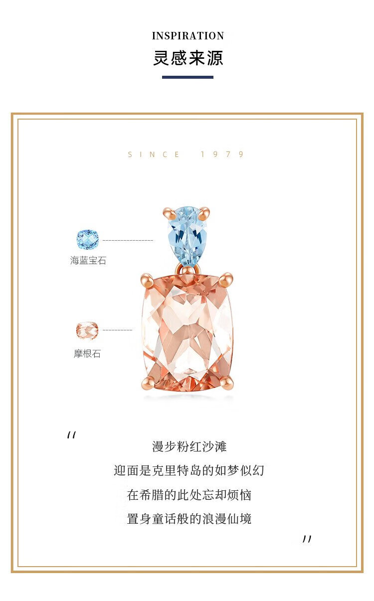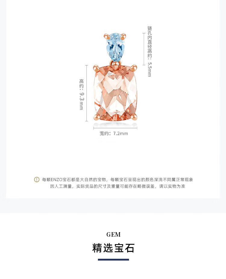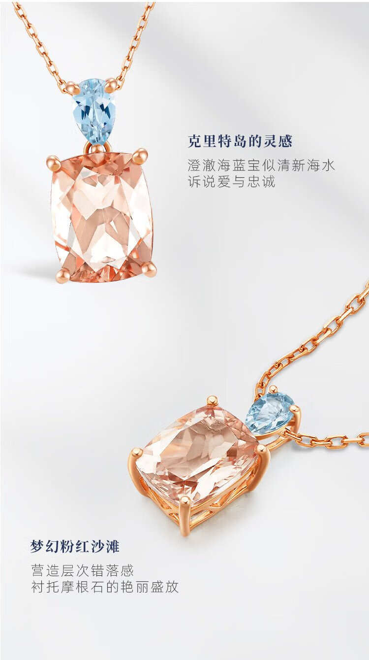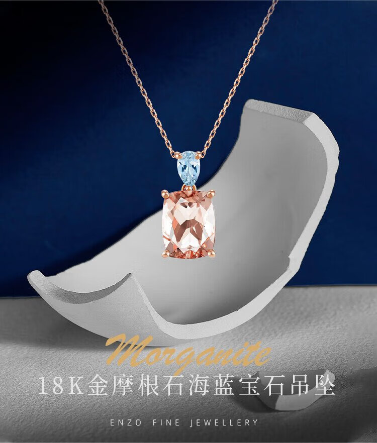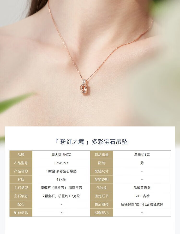 Chow Tai Fook ENZO Pink Realm 18K Gold Morganite Aquamarine Pendant for Women EZV6293 Free Silver Chain EZV6293
