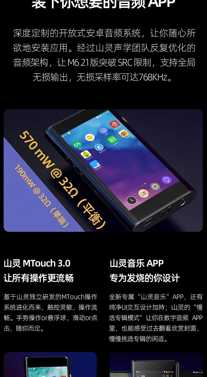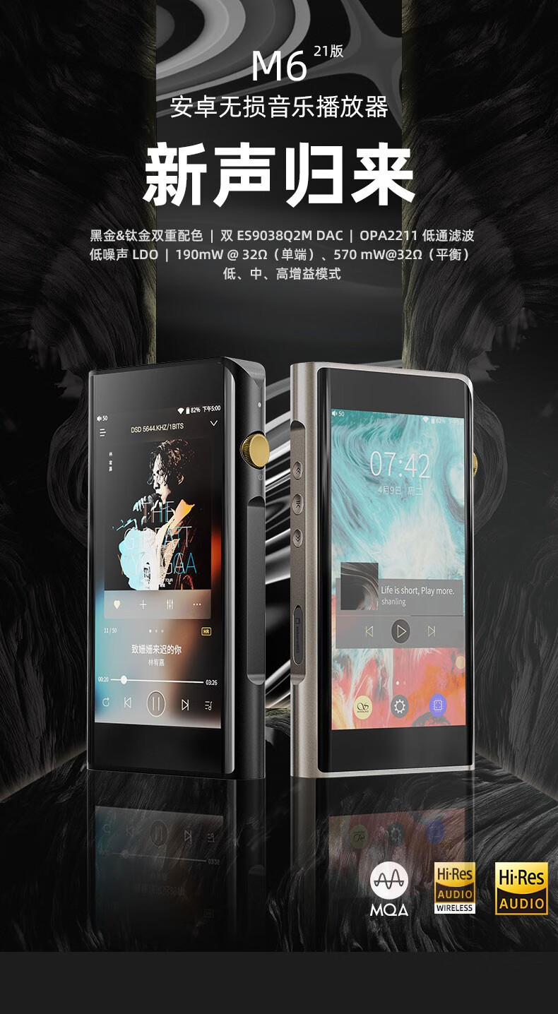 SHANLING M6 Music Player M621 MP3 Walkman Lossless Music HiFi Android Portable Compact Balanced DSD M6 21 Titanium Color