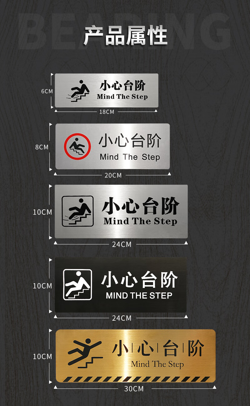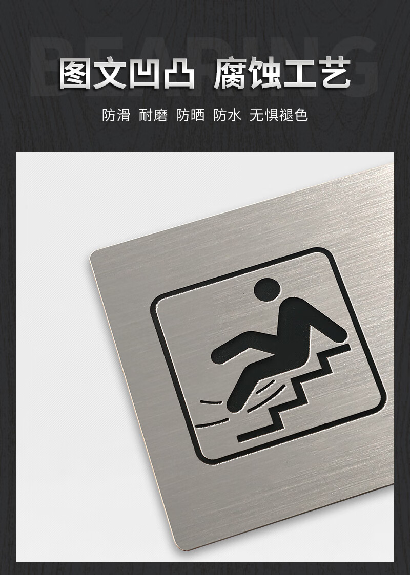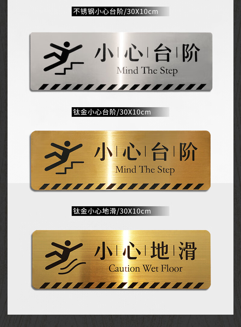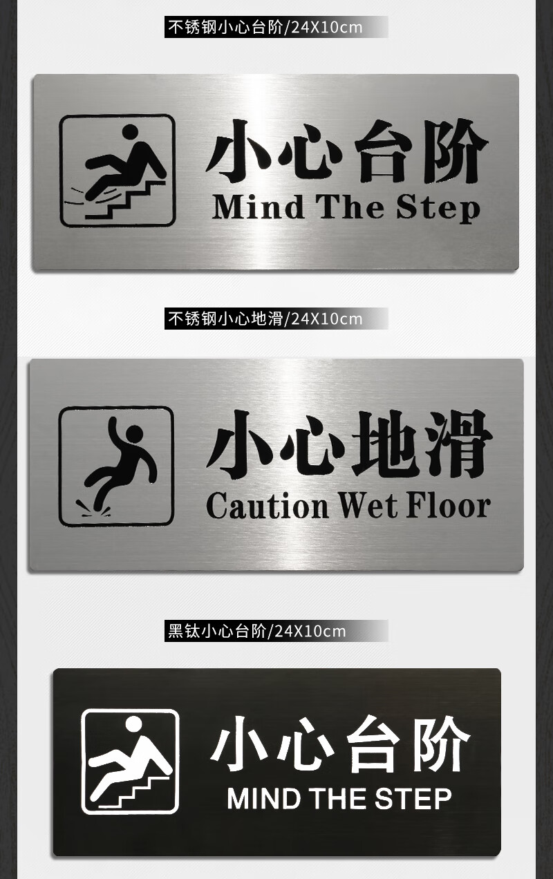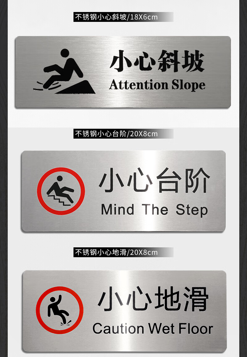 Litian Jiade Stainless Steel Beware of Steps Warning Sign Silver Brushed Carefully Slide Beware of Slope Signage Tips Beware of Steps Type A 24X10cm 24*10CM