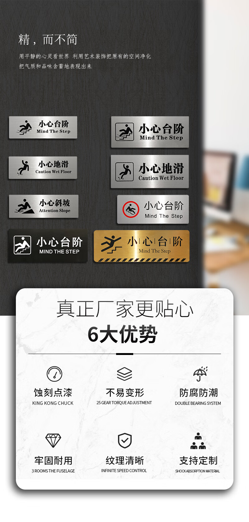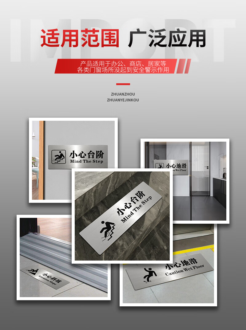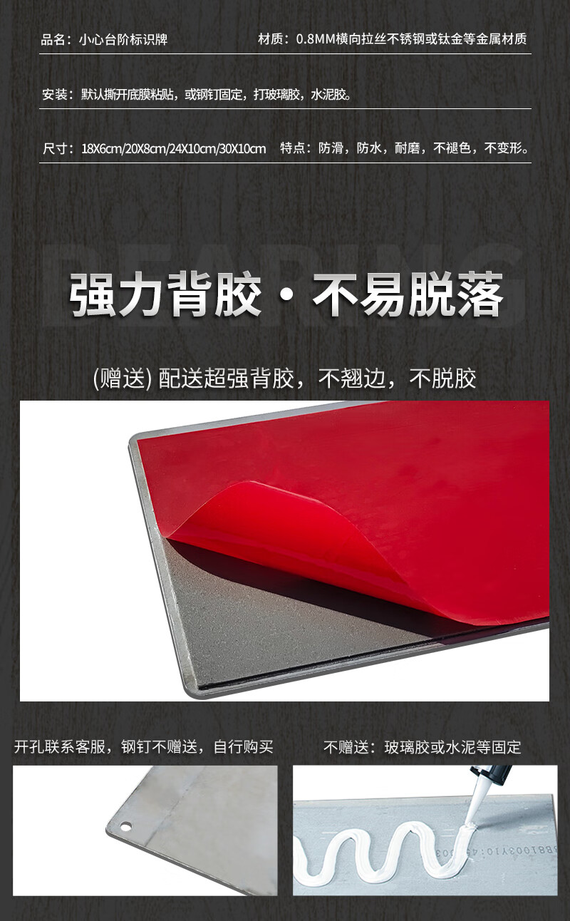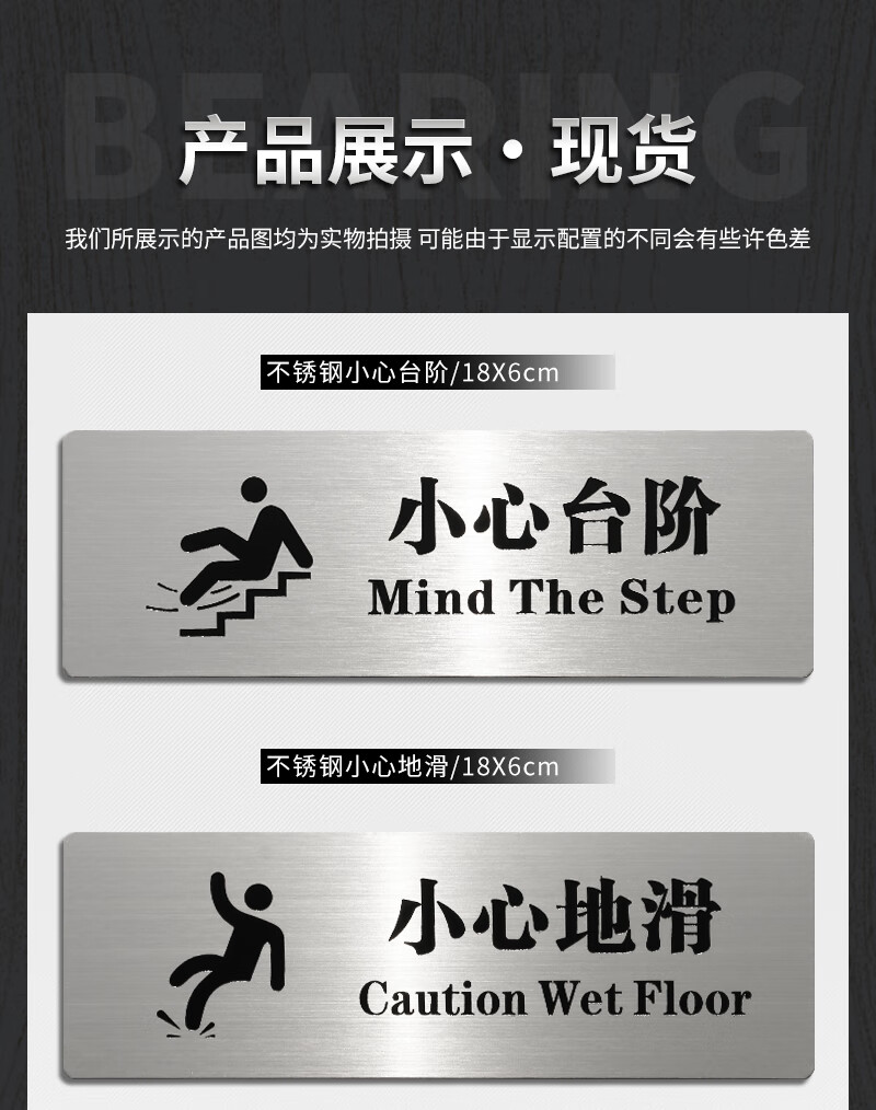 Litian Jiade Stainless Steel Beware of Steps Warning Sign Silver Brushed Carefully Slide Beware of Slope Signage Tips Beware of Steps Type A 24X10cm 24*10CM