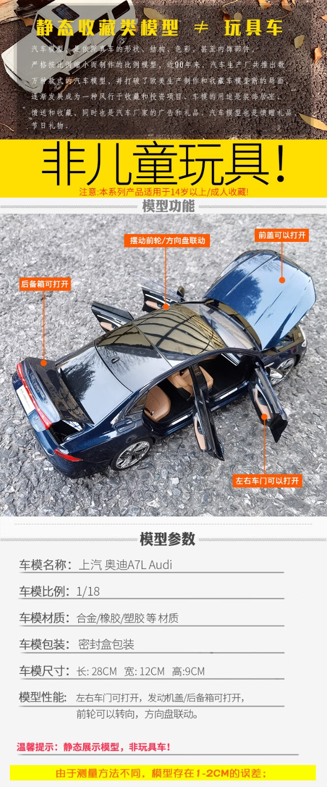YUEJISHENG Original Audi 1 18 Audi Audi A7L 2022 Alloy Fully Open Car Model Alloy Car Model Seer Edition Dark Blue