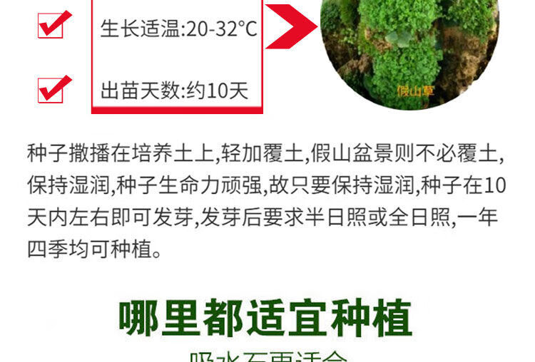 Rockery grass seed absorbs water, bonsai plant micro-landscape on stone, dwarf pearl grass can be kept green all year round, 4 kinds each, 1 pack, shipped in mixed packaging, 400 capsules