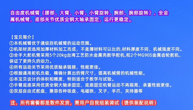 Lingle Intelligent Robot Six-Axis Robotic Arm Robotic Arm Multi-Degree of Freedom Manipulator Industrial Robot Model Customized Frame without Servo