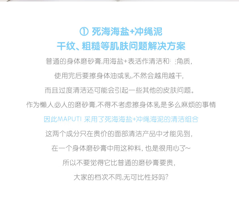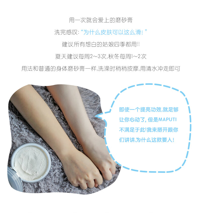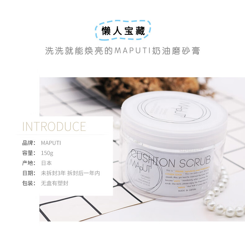 MAPUTI Body Scrub for whole body, face and hands, gentle cleansing, exfoliation, chicken skin, skin brightening 150g (white texture, thick ice cream)