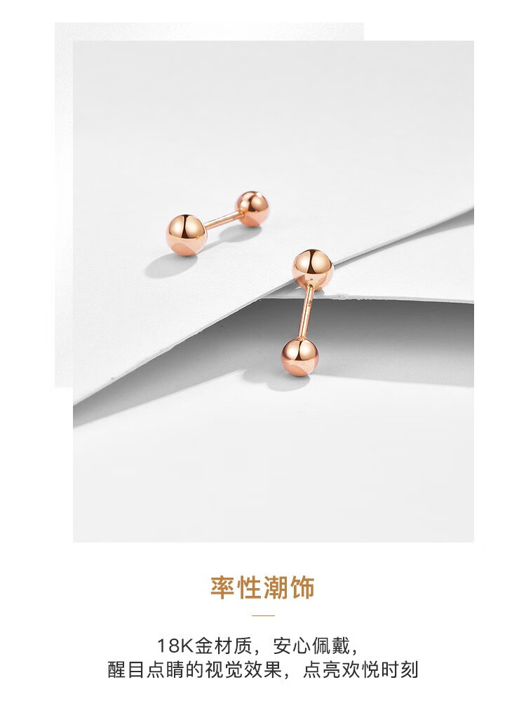 Ming brand jewelry 18K gold color rose gold earrings bright small gold ball earrings for gift women CSH0307 pricing 18K gold earrings about 0.78-0.84 grams