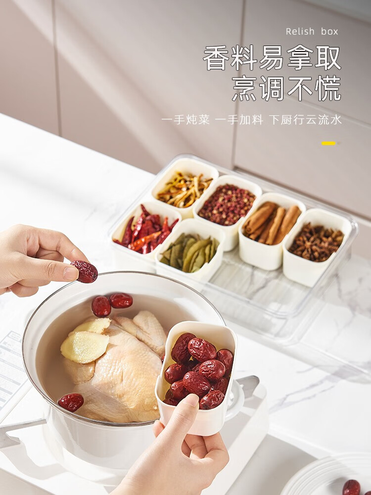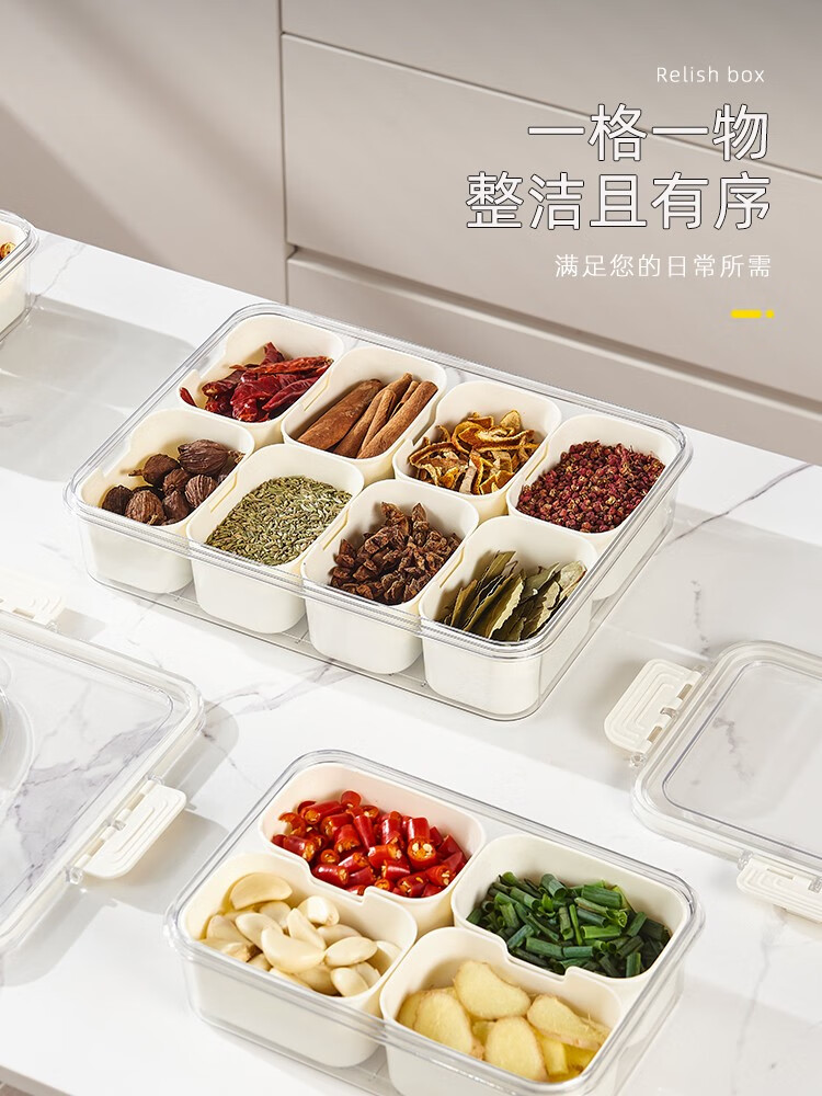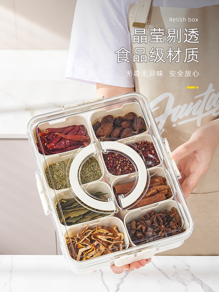 Bailu spice storage box dried chili seasoning box sealed pepper seasoning aniseed kitchen star anise cinnamon household packaging box spice storage box eight compartments
