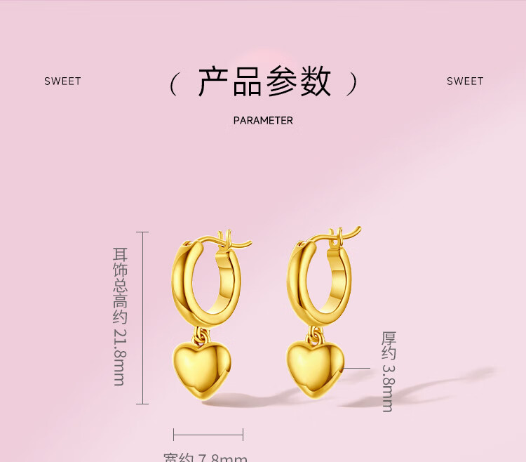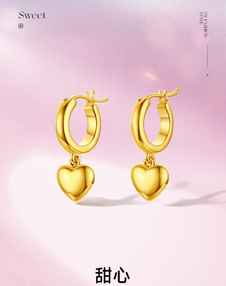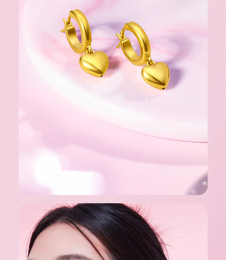 Saturday Fortune (ZLF) 18K gold earrings, colorful sweetheart fashion love earrings, a holiday gift for girlfriend and wife, one pair