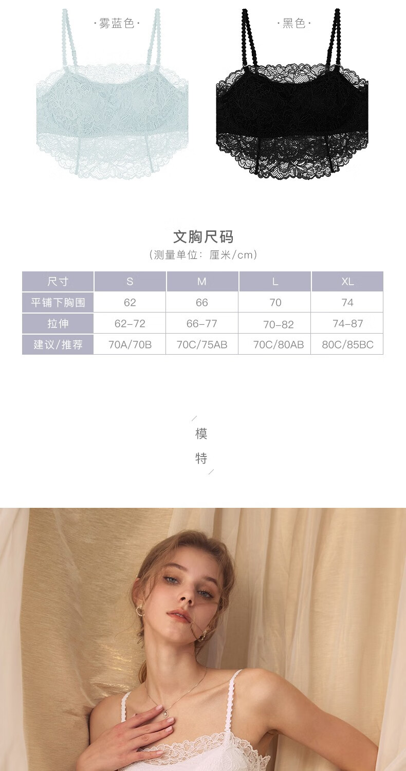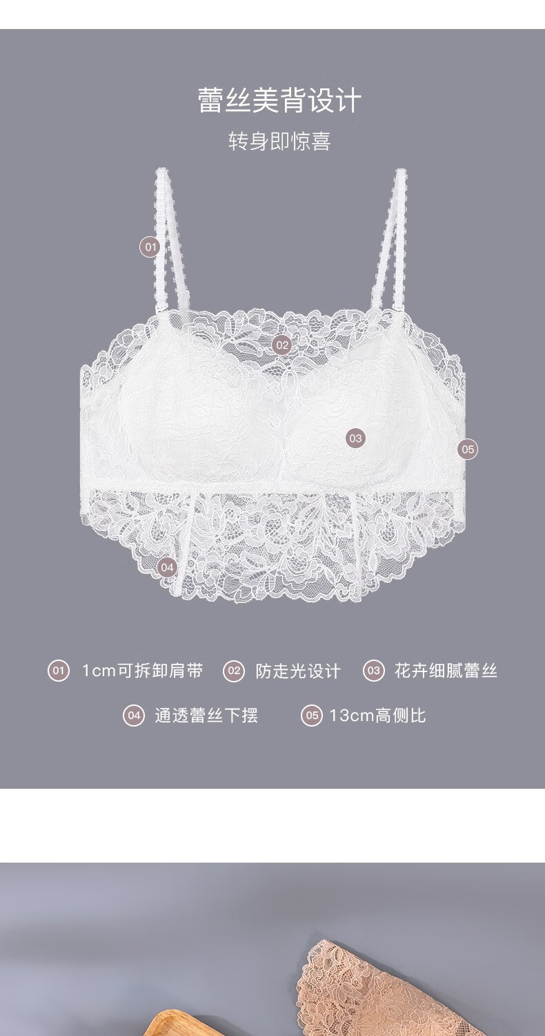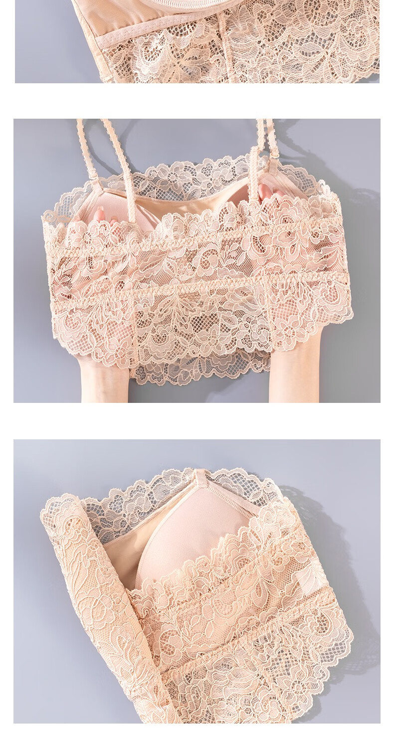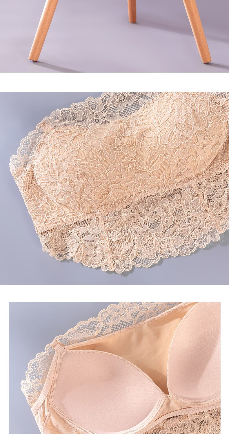 GORRENNO bandeau bra for women, back-wrapped and gathered to prevent exposure, lace camisole with breast pads, one-piece bra, Forbidden City Red S, suitable for 70A/B