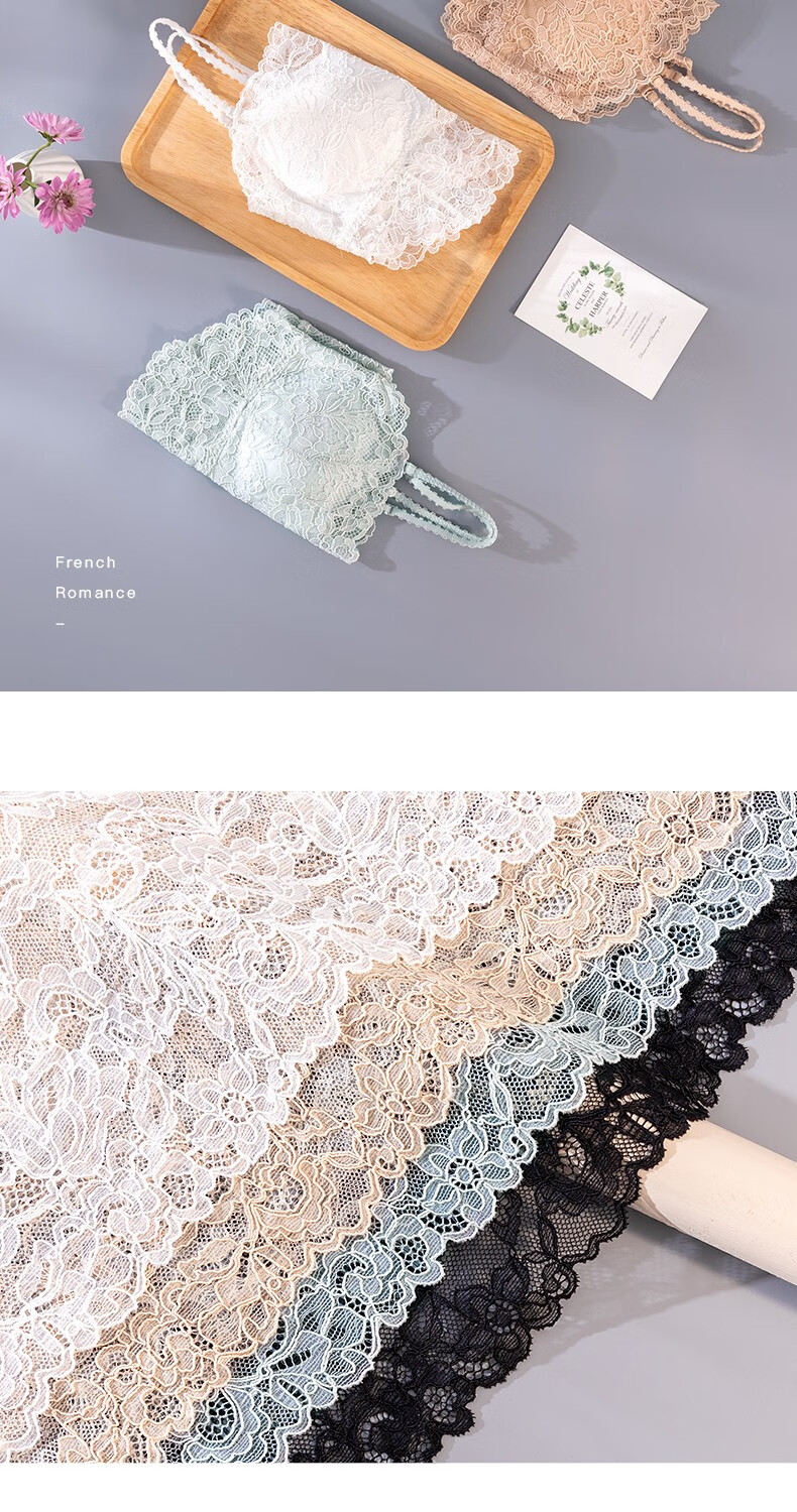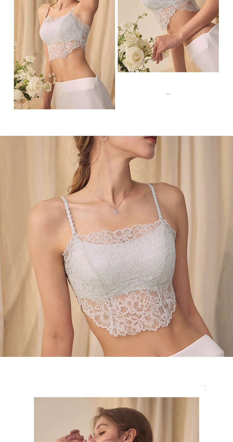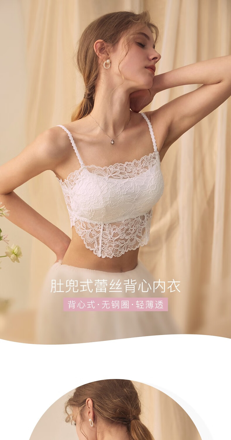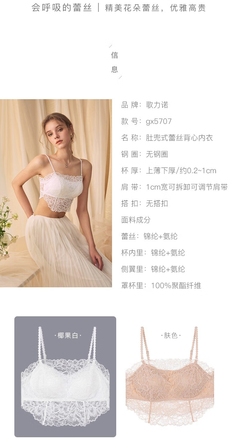 GORRENNO bandeau bra for women, back-wrapped and gathered to prevent exposure, lace camisole with breast pads, one-piece bra, Forbidden City Red S, suitable for 70A/B
