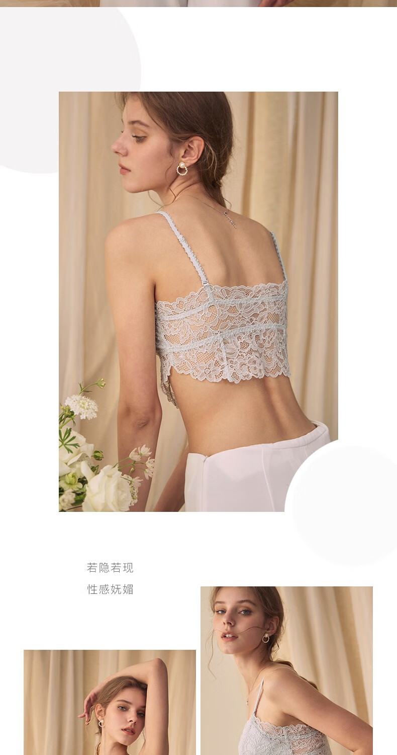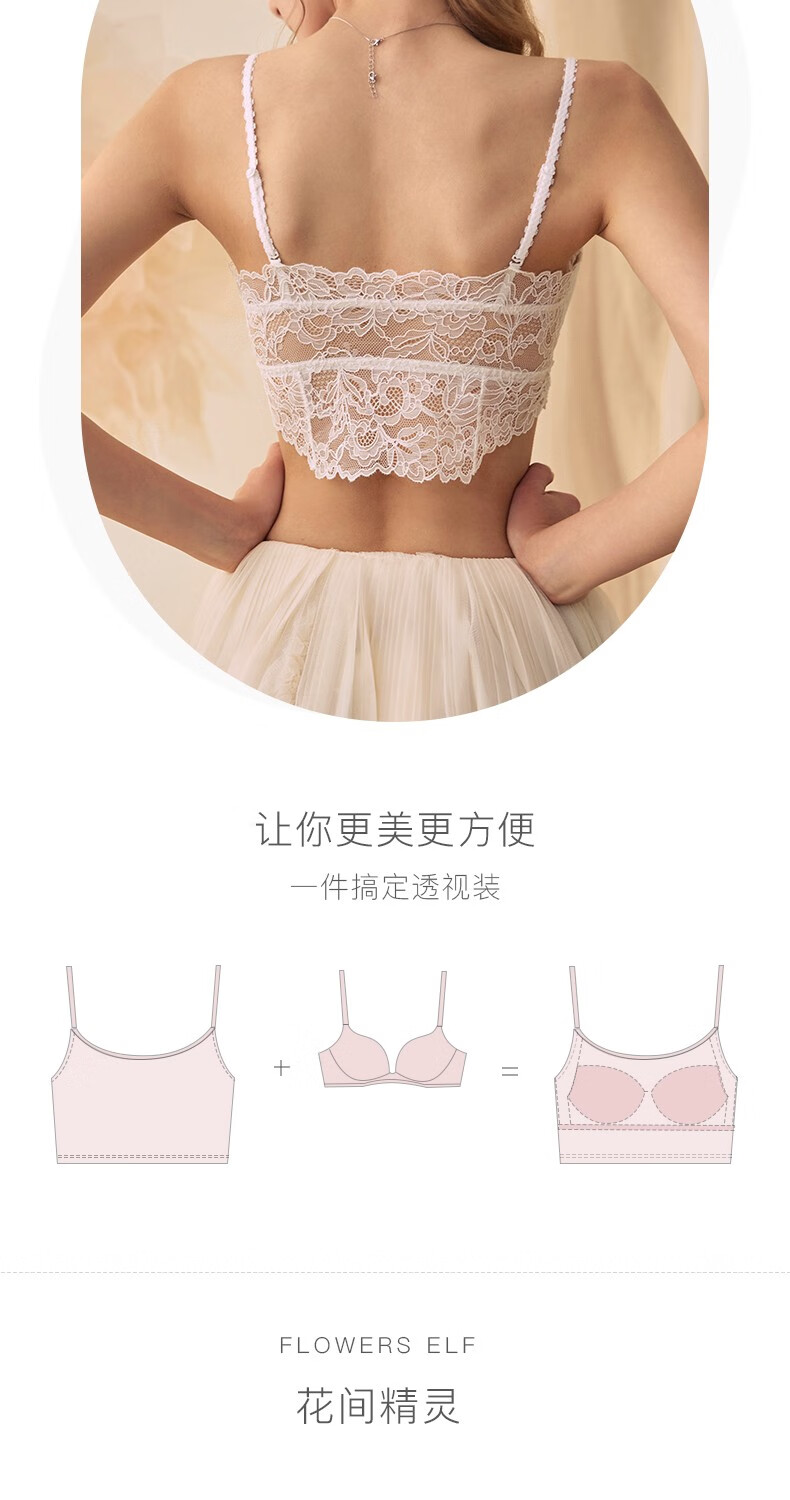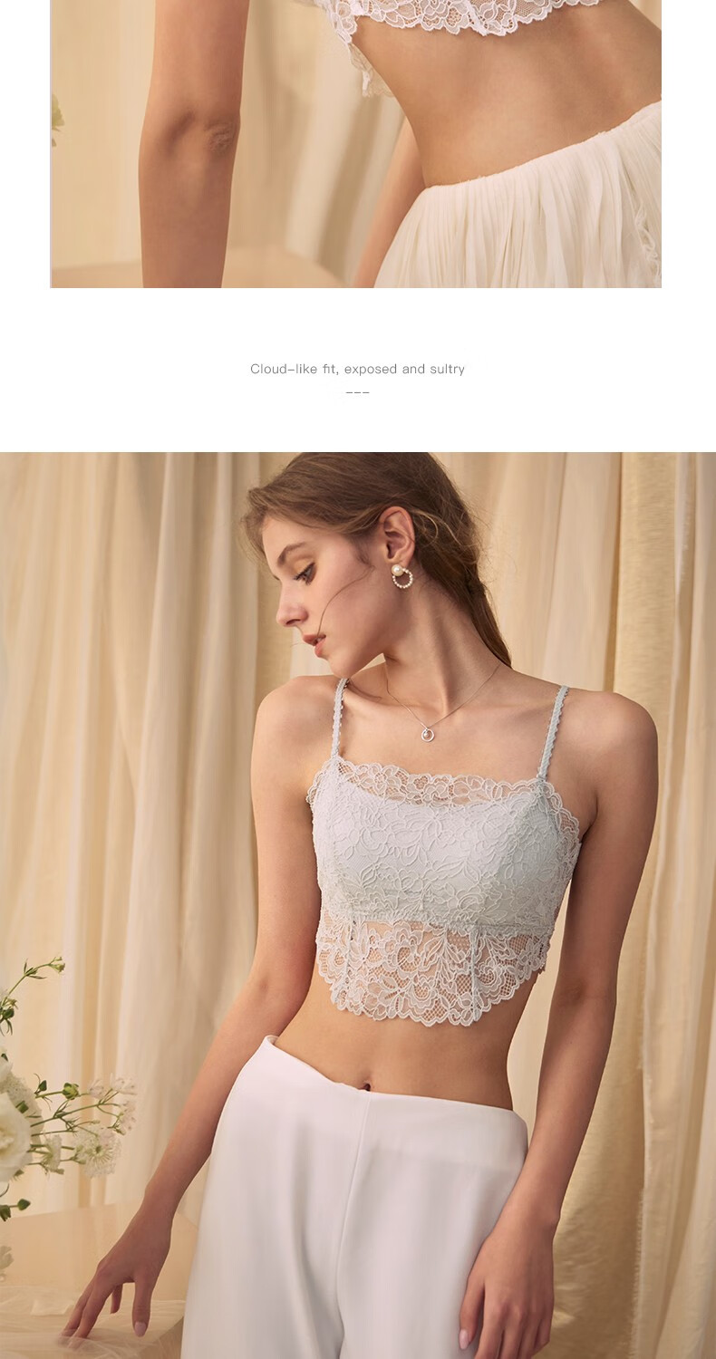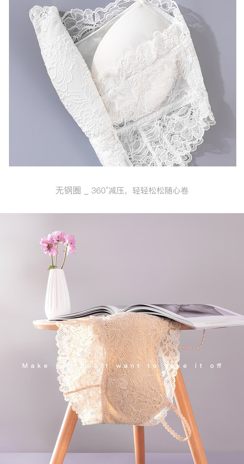GORRENNO bandeau bra for women, back-wrapped and gathered to prevent exposure, lace camisole with breast pads, one-piece bra, Forbidden City Red S, suitable for 70A/B