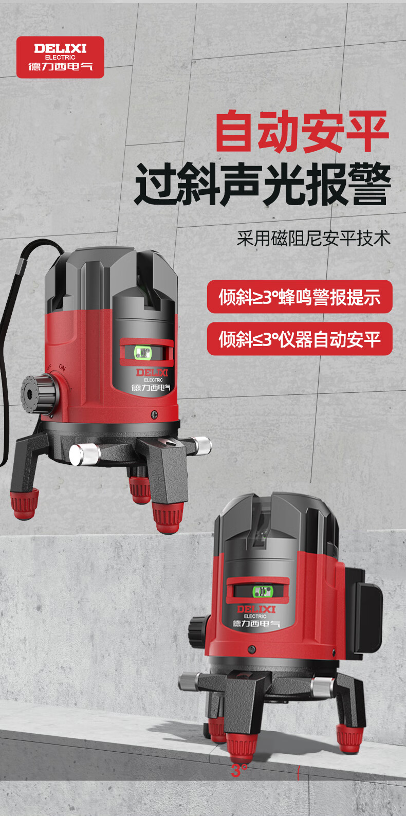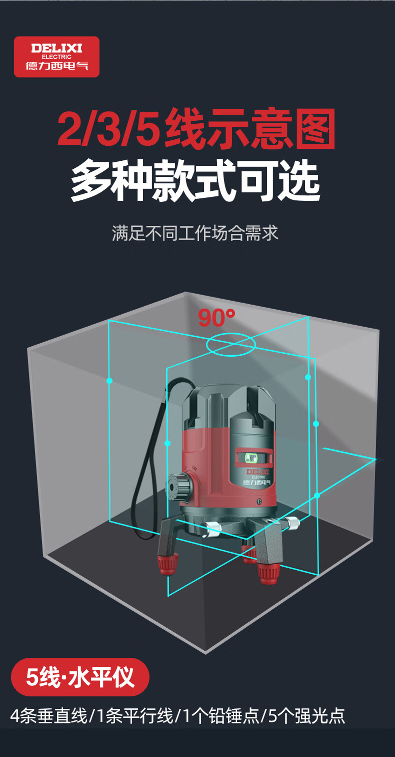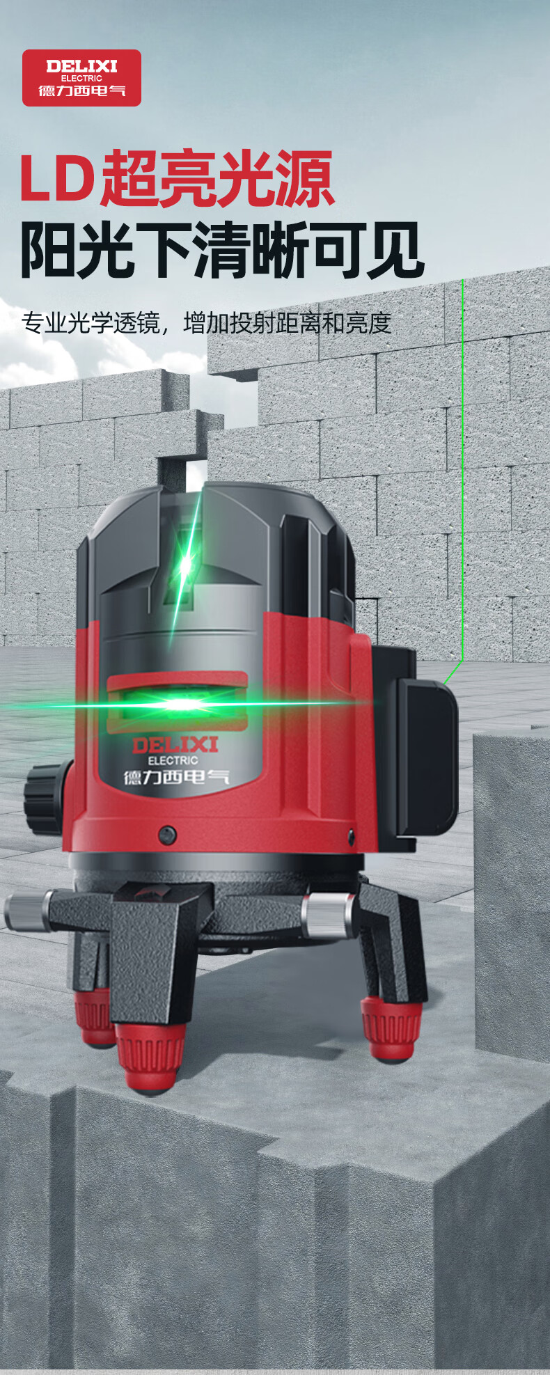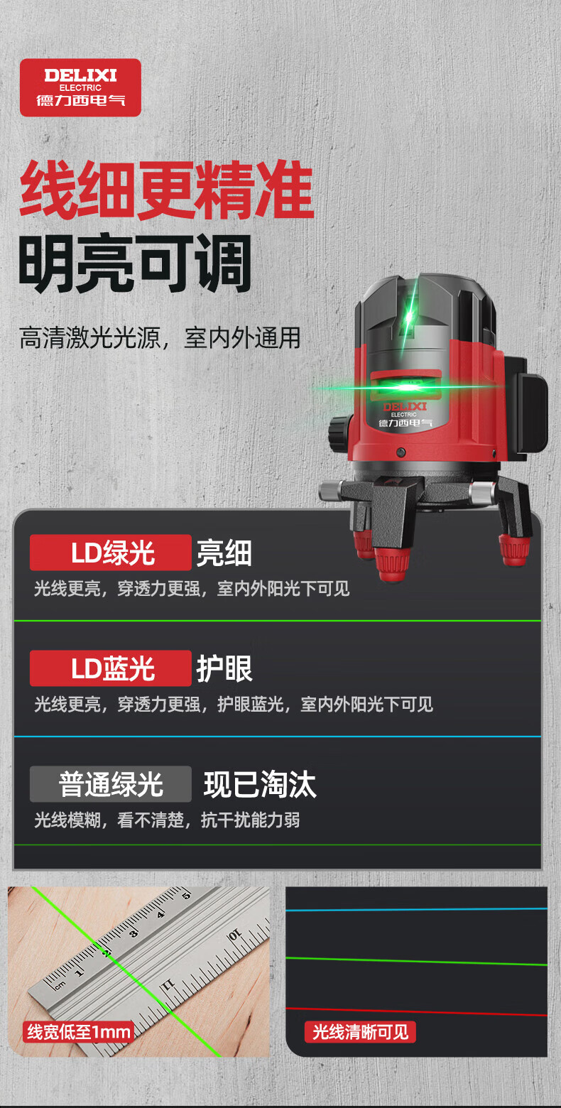 DELIXI ELECTRIC infrared level meter high-precision strong light thin line automatic leveling green light blue outdoor outdoor construction portable laser high-precision strong light green light 2 lines + two batteries