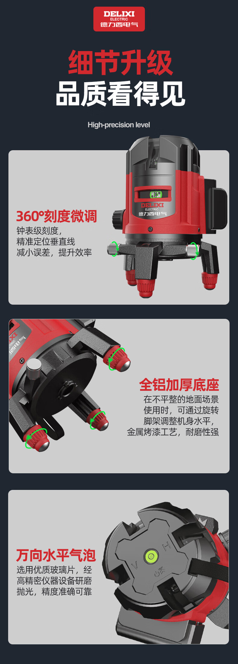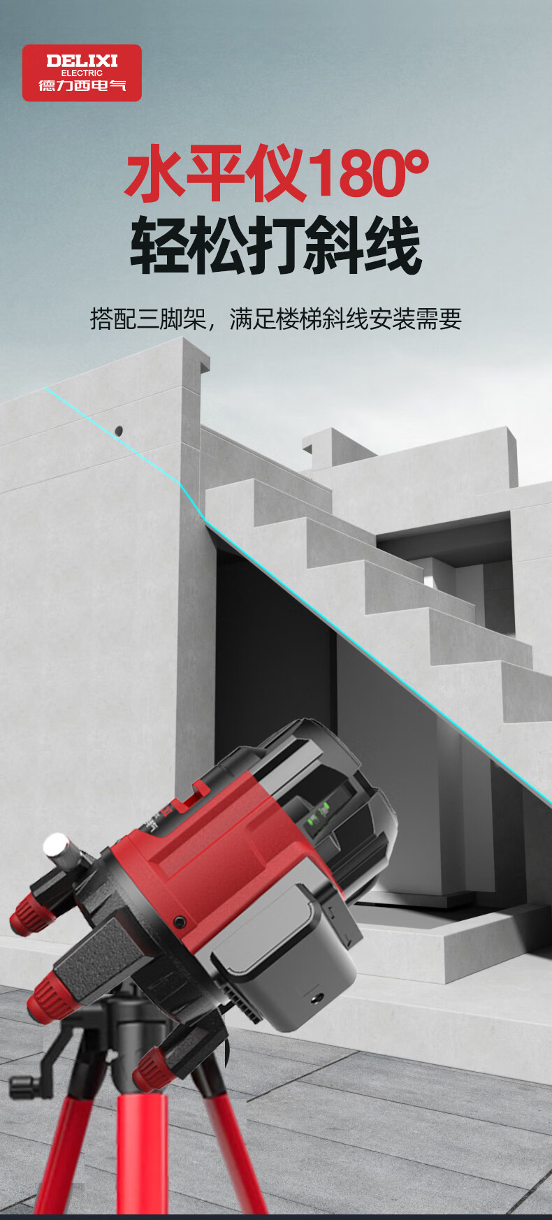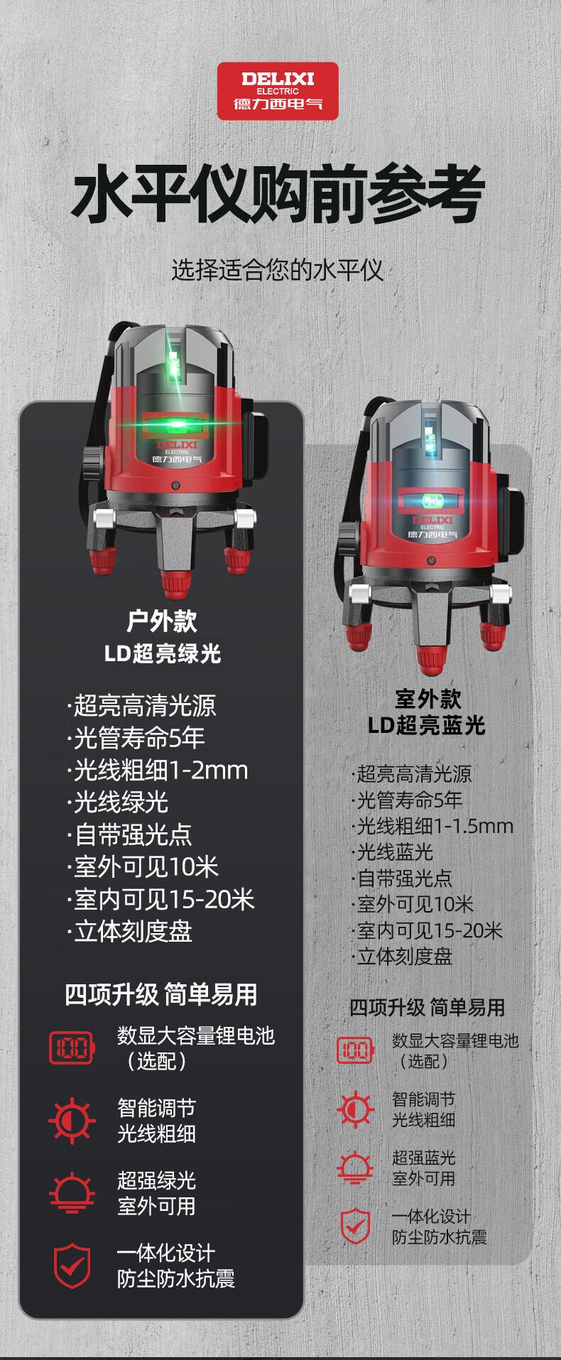 DELIXI ELECTRIC infrared level meter high-precision strong light thin line automatic leveling green light blue outdoor outdoor construction portable laser high-precision strong light green light 2 lines + two batteries