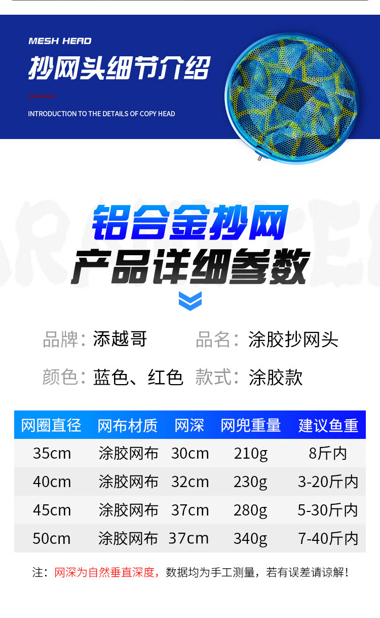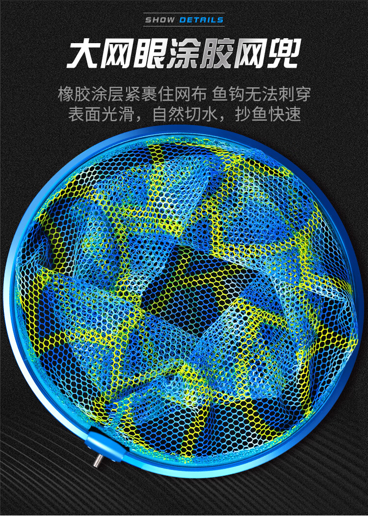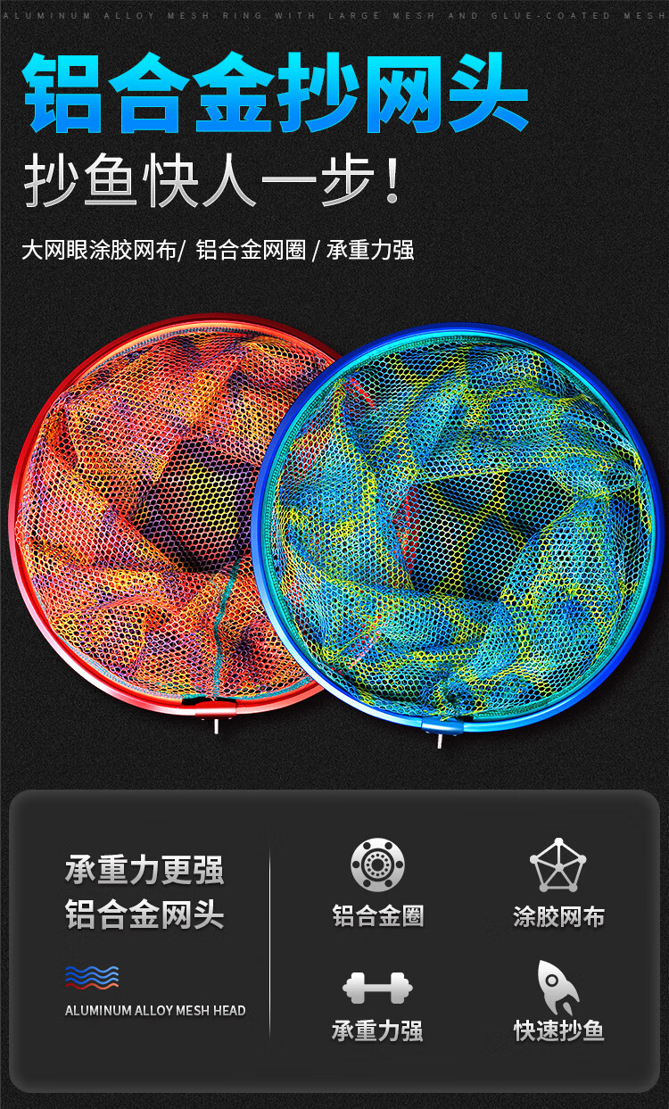 BEITU Copy Net Head Net Pocket Fish Net Fishing Folding Solid Net Bag Single Net Black Pit Titanium Alloy Fishing Gear Portable Large Mesh Large Mesh Rubberized Model Blue-35cm No Specifications