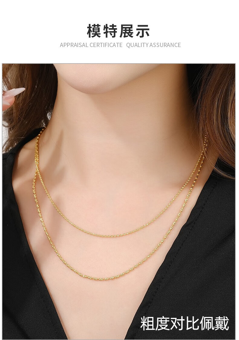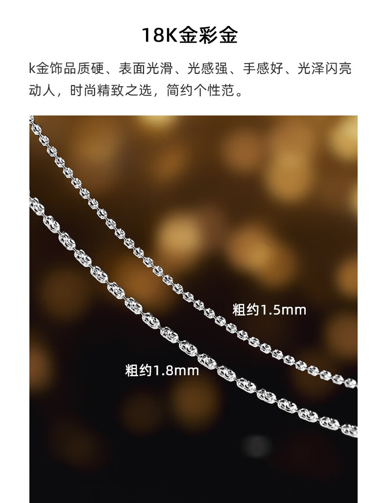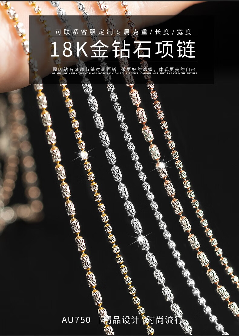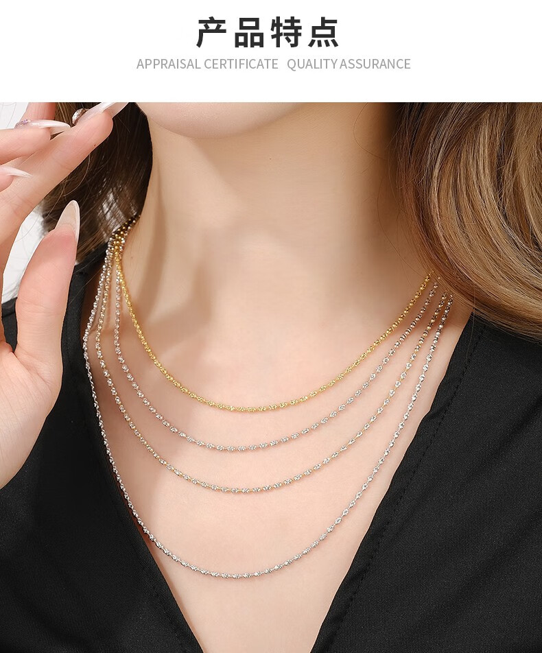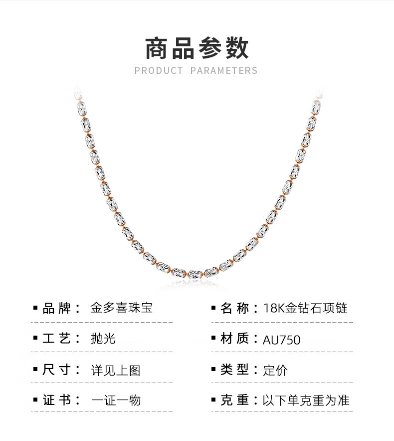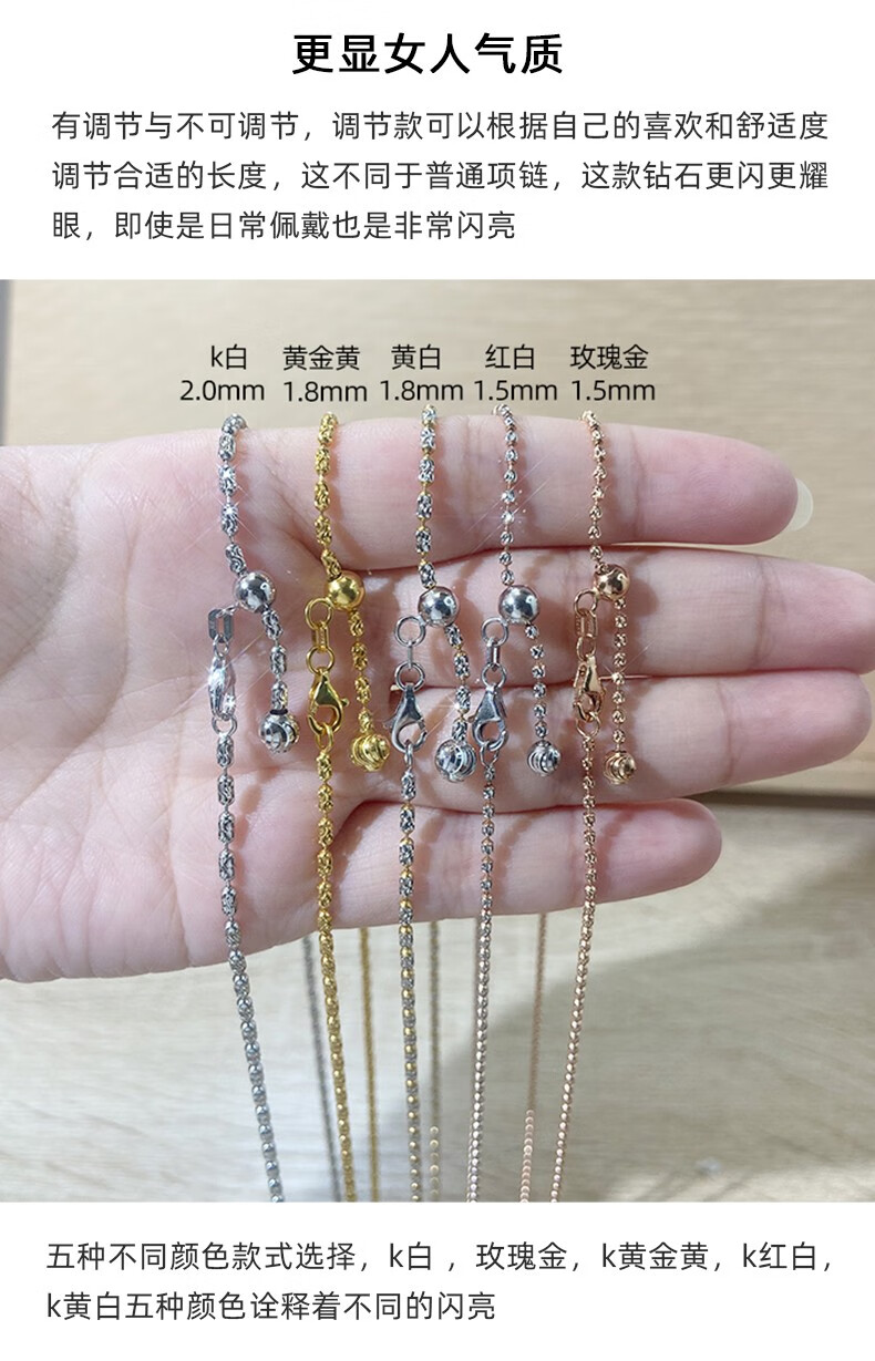 Jin Duoxi (COLDDOX) 18k gold diamond chain necklace for women Italian craftsmanship AU750 plain chain flash chain rose gold platinum gold two-color 1.8mm platinum adjustable model 50cm7.2-7.4g