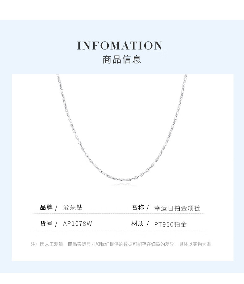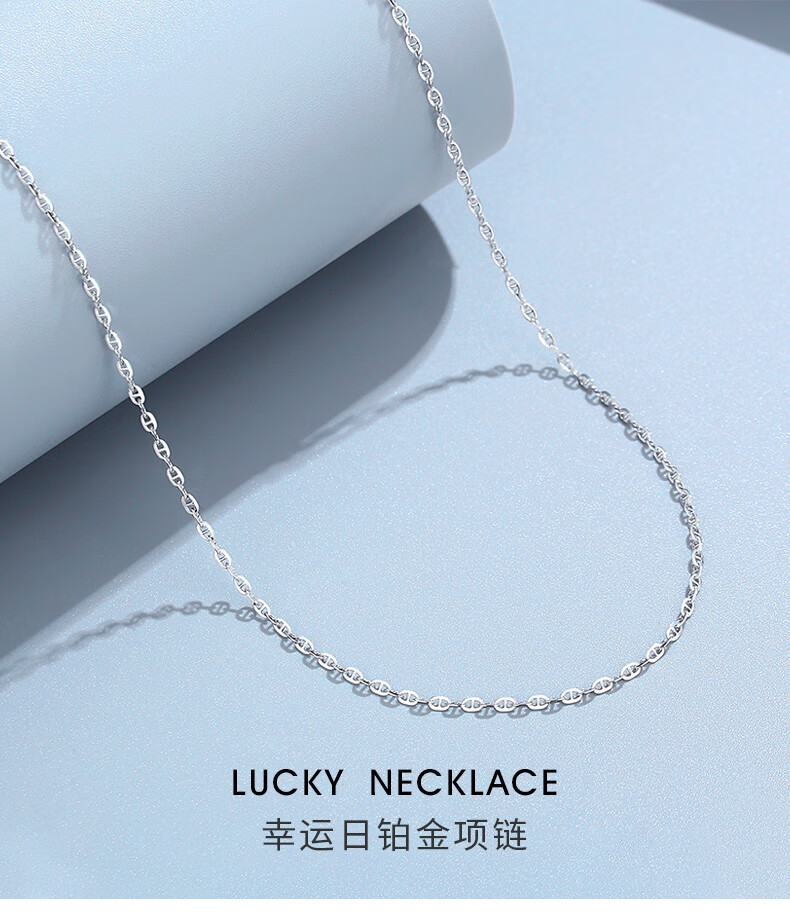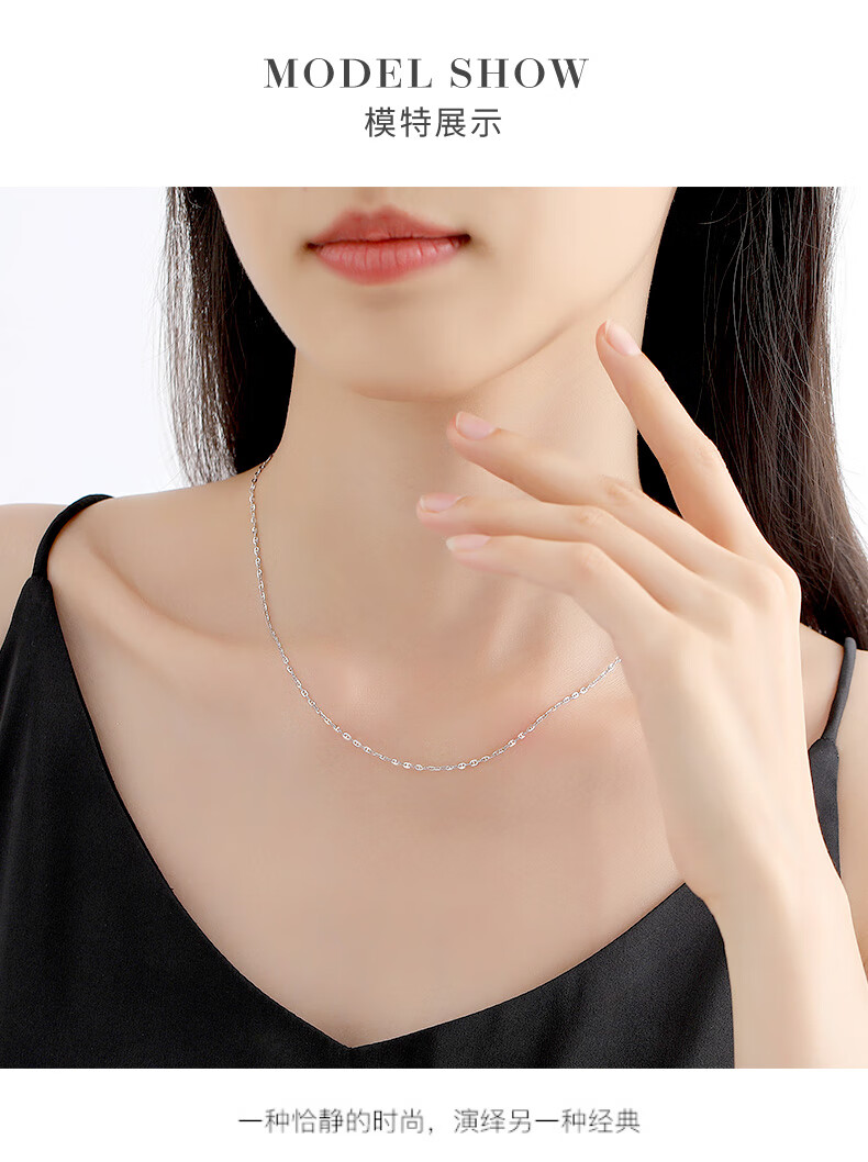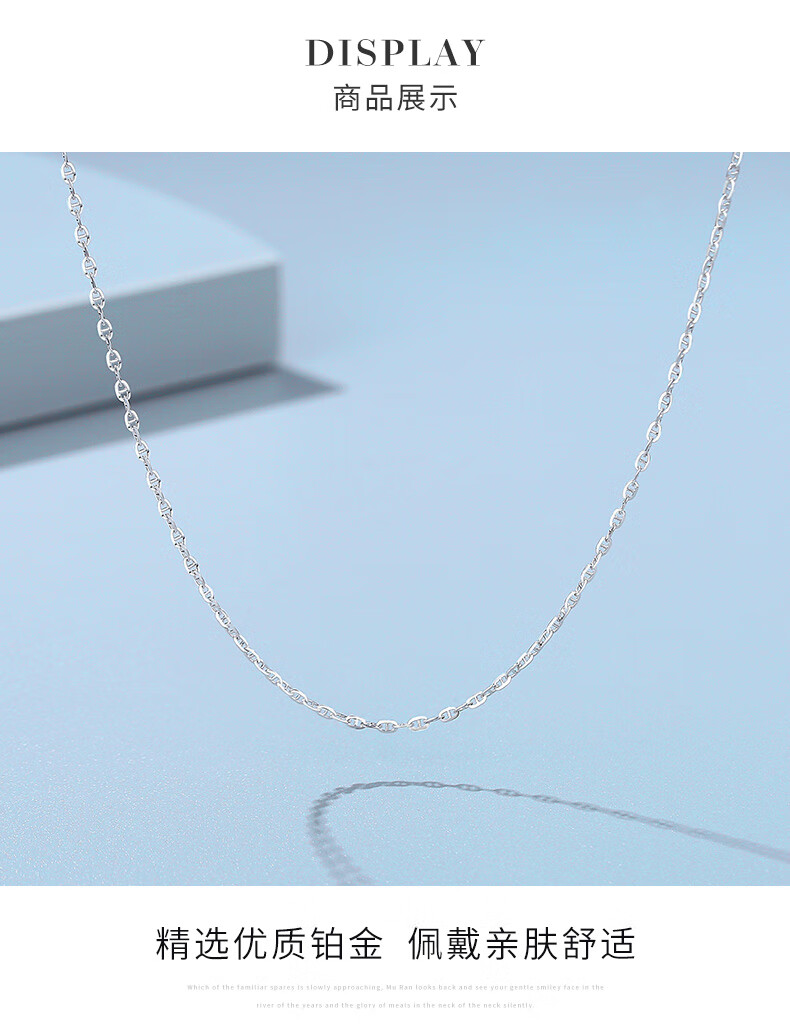 Aido Diamond Platinum Necklace Women's Plain Chain pt950 Platinum Japanese Chain with Pendant Clavicle Chain Weight 2.6-2.8g Length 45cm Thick About 1.4mm