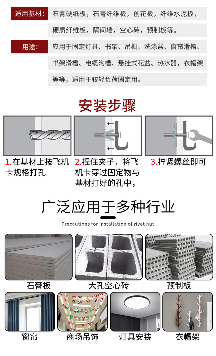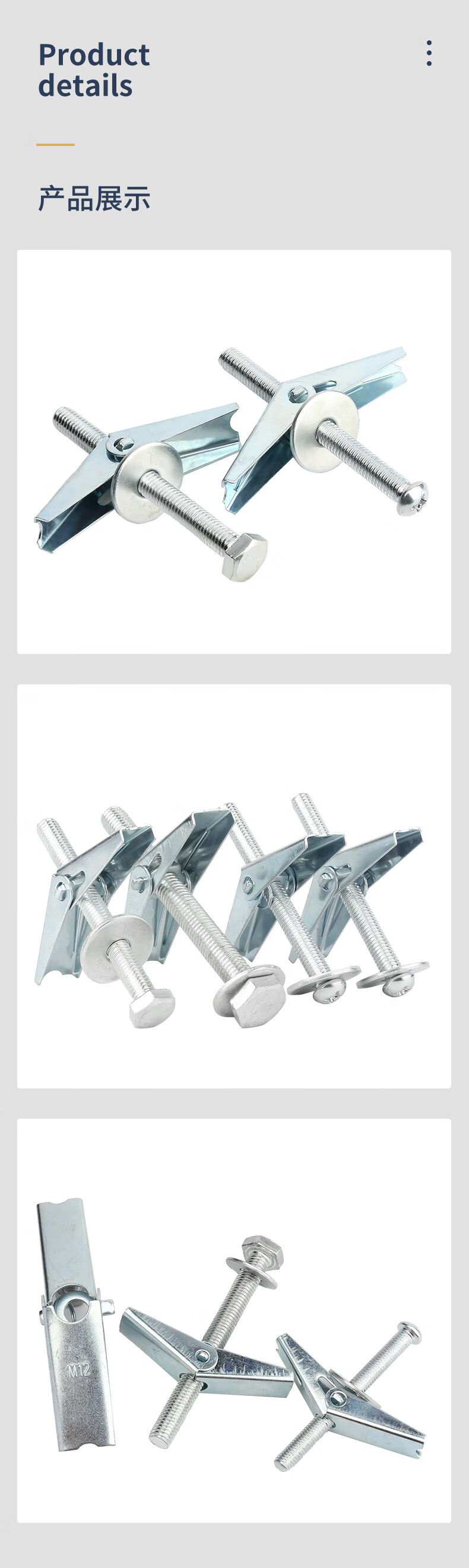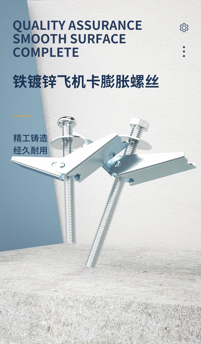 GUWANJI iron aircraft expansion screw hollow wall fiber/gypsum board orchid clip wall tiger umbrella type expansion plug national standard fastener round head M4x40 (set of 10) punching 12