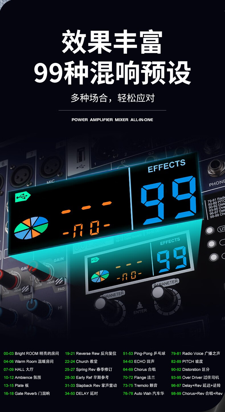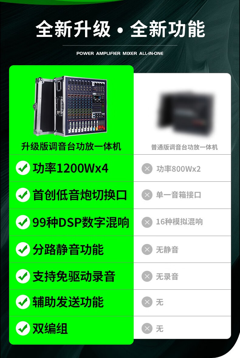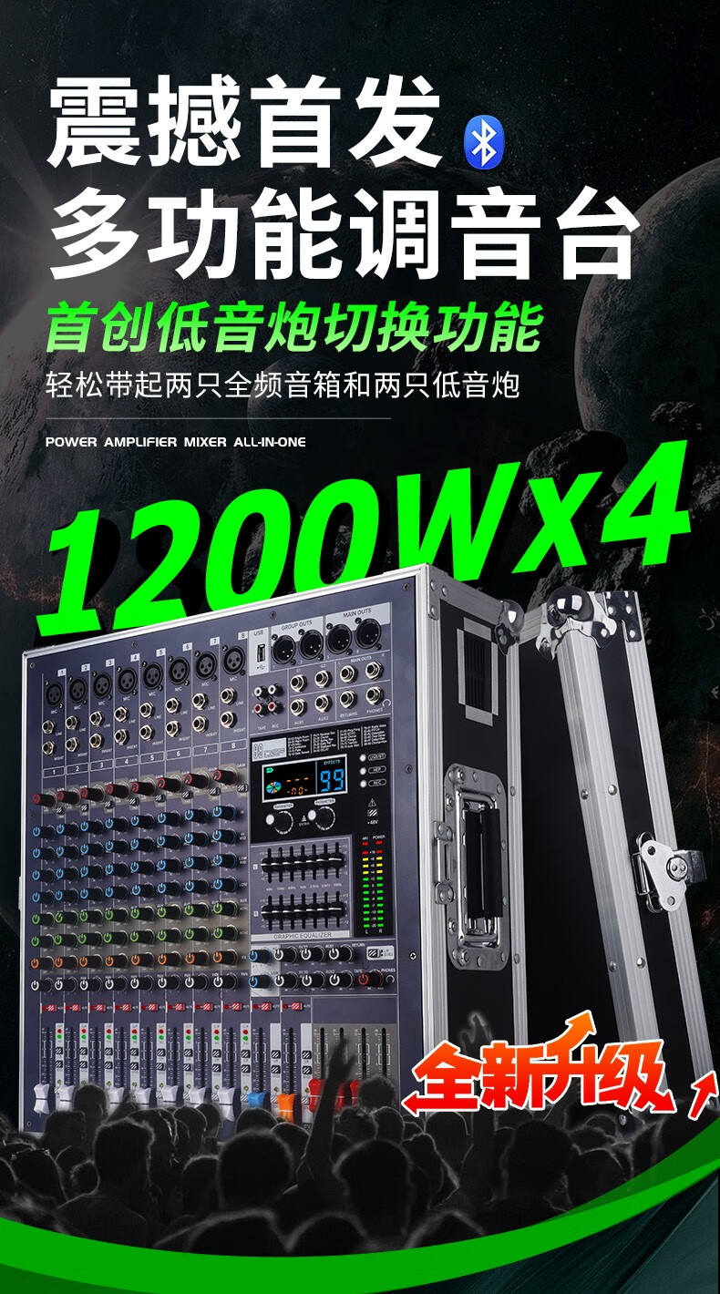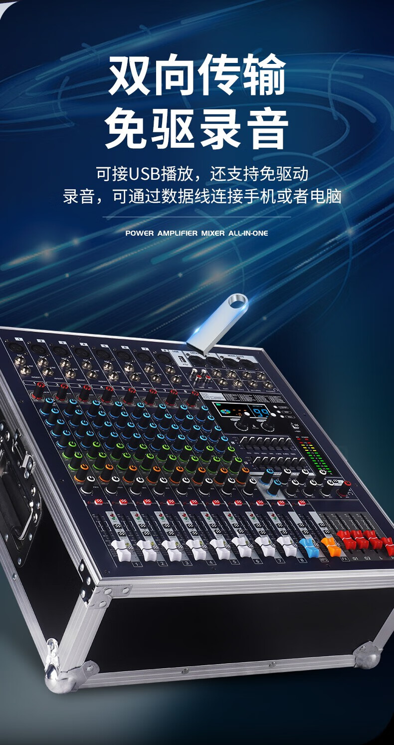 NXGNXG professional four-channel high-power amplifier with mixer all-in-one dual-group subwoofer interface stage speaker 12-channel 1600W*4 channels with subwoofer interface dual-group