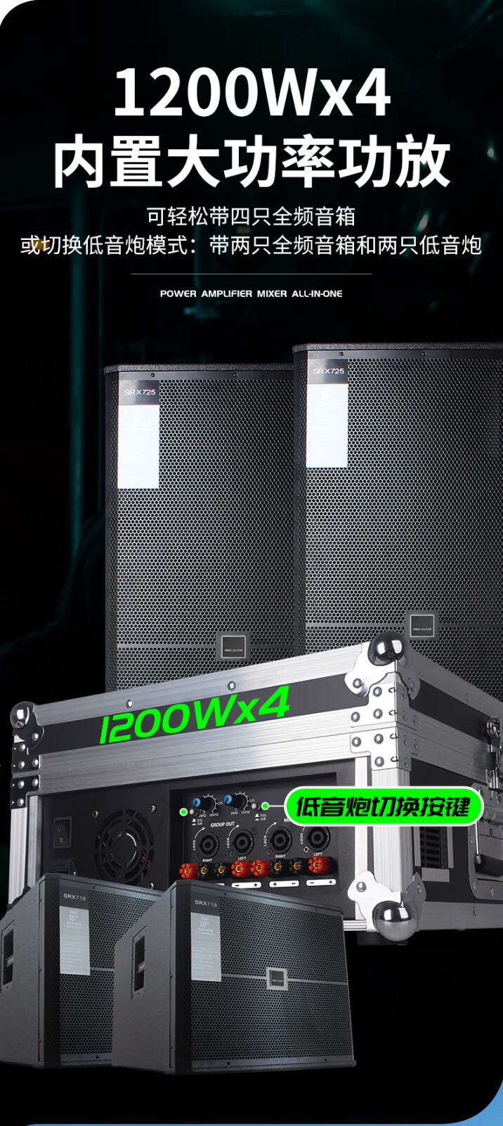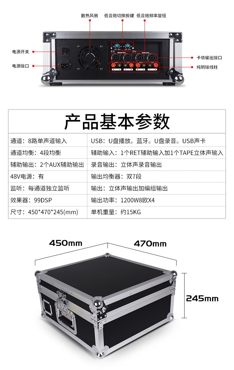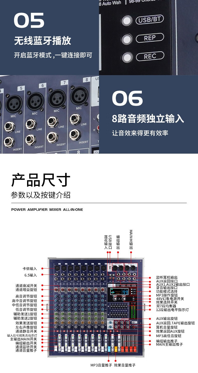 NXGNXG professional four-channel high-power amplifier with mixer all-in-one dual-group subwoofer interface stage speaker 12-channel 1600W*4 channels with subwoofer interface dual-group