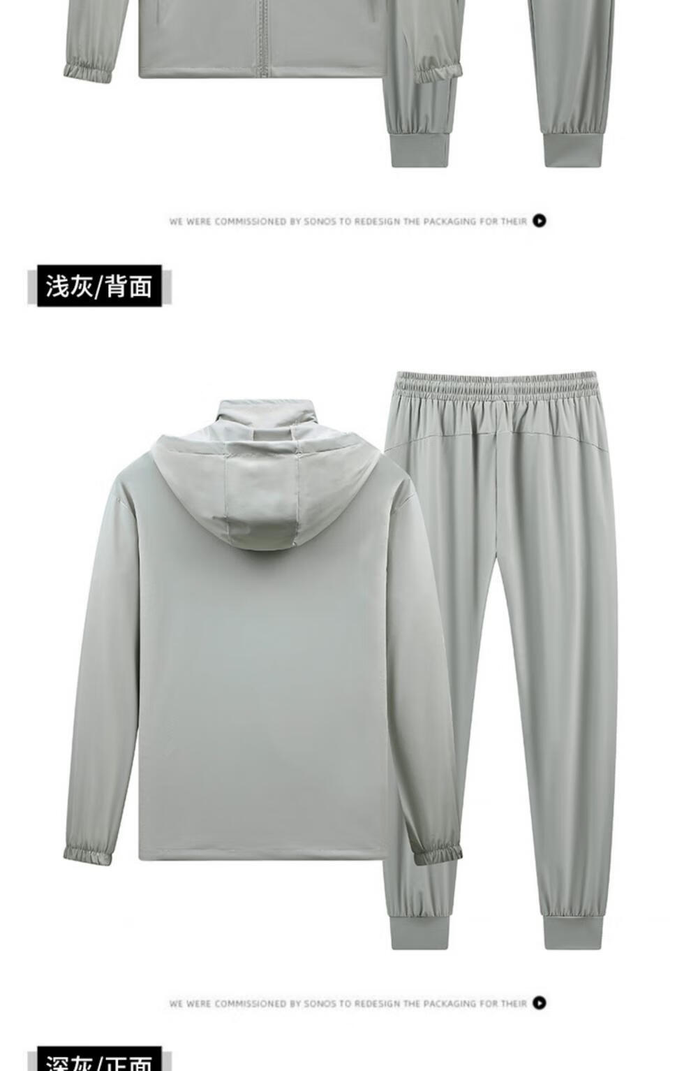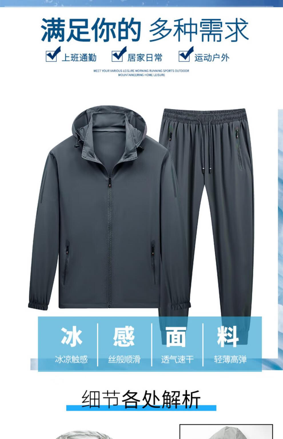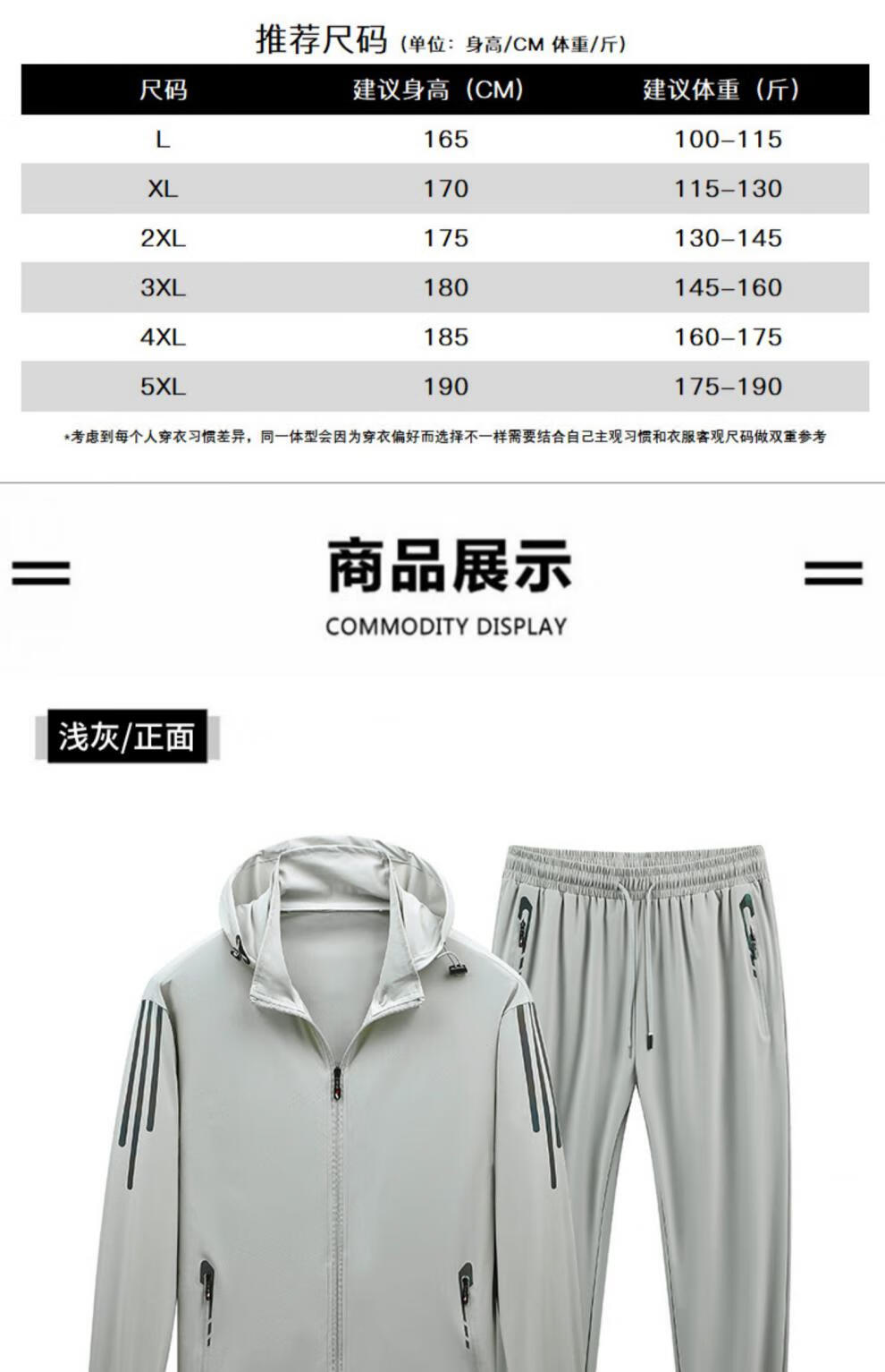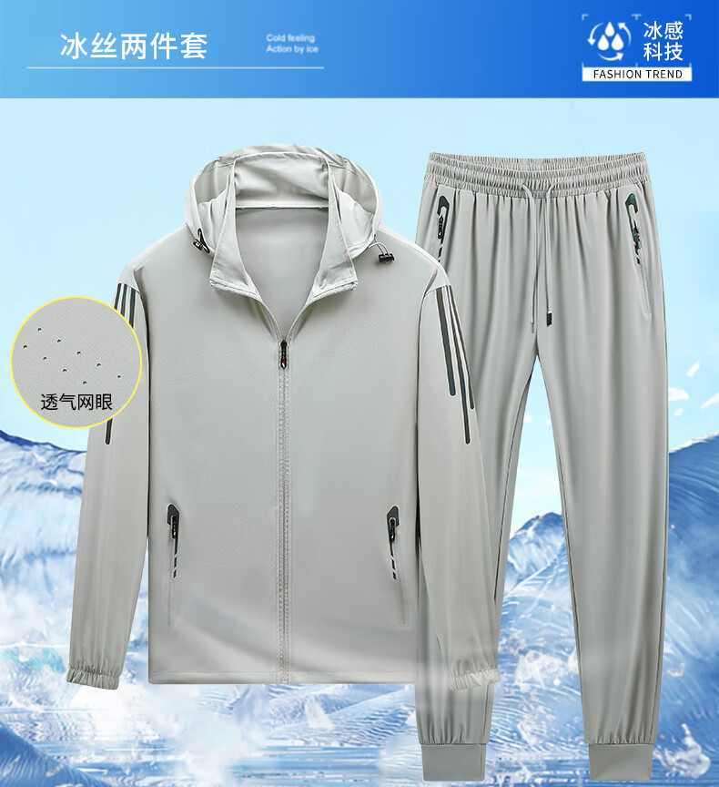ROMON Ice Silk Fishing Suit Men's Summer Thin Breathable Elastic Sun Protection Clothing Casual Sports Two-piece Set Light Gray L