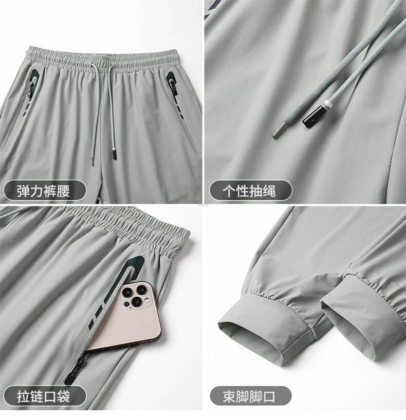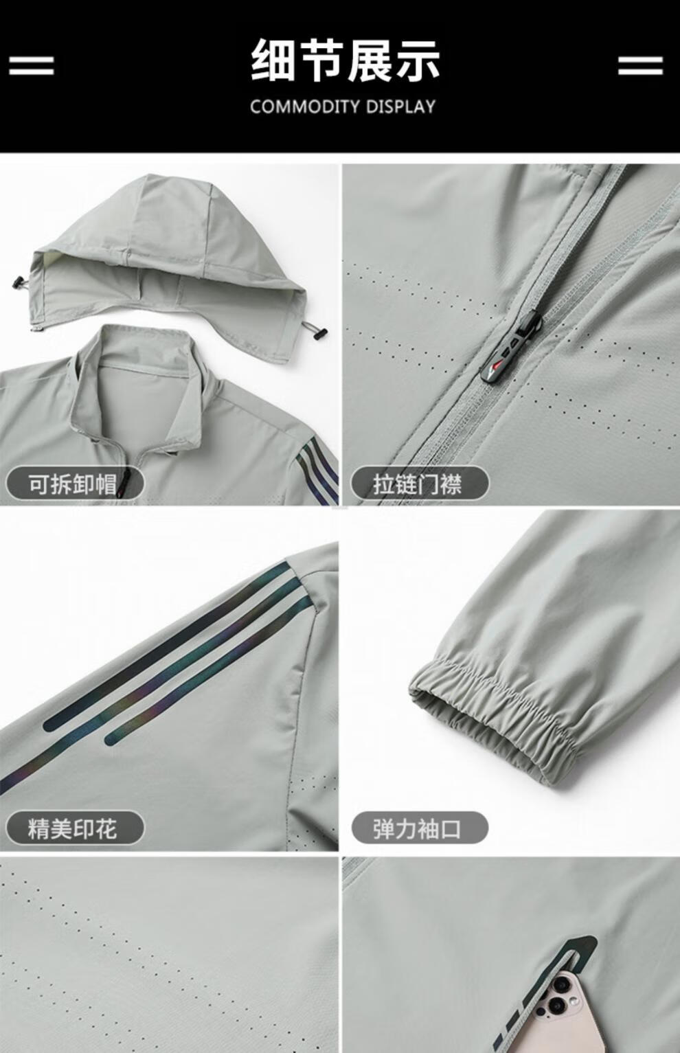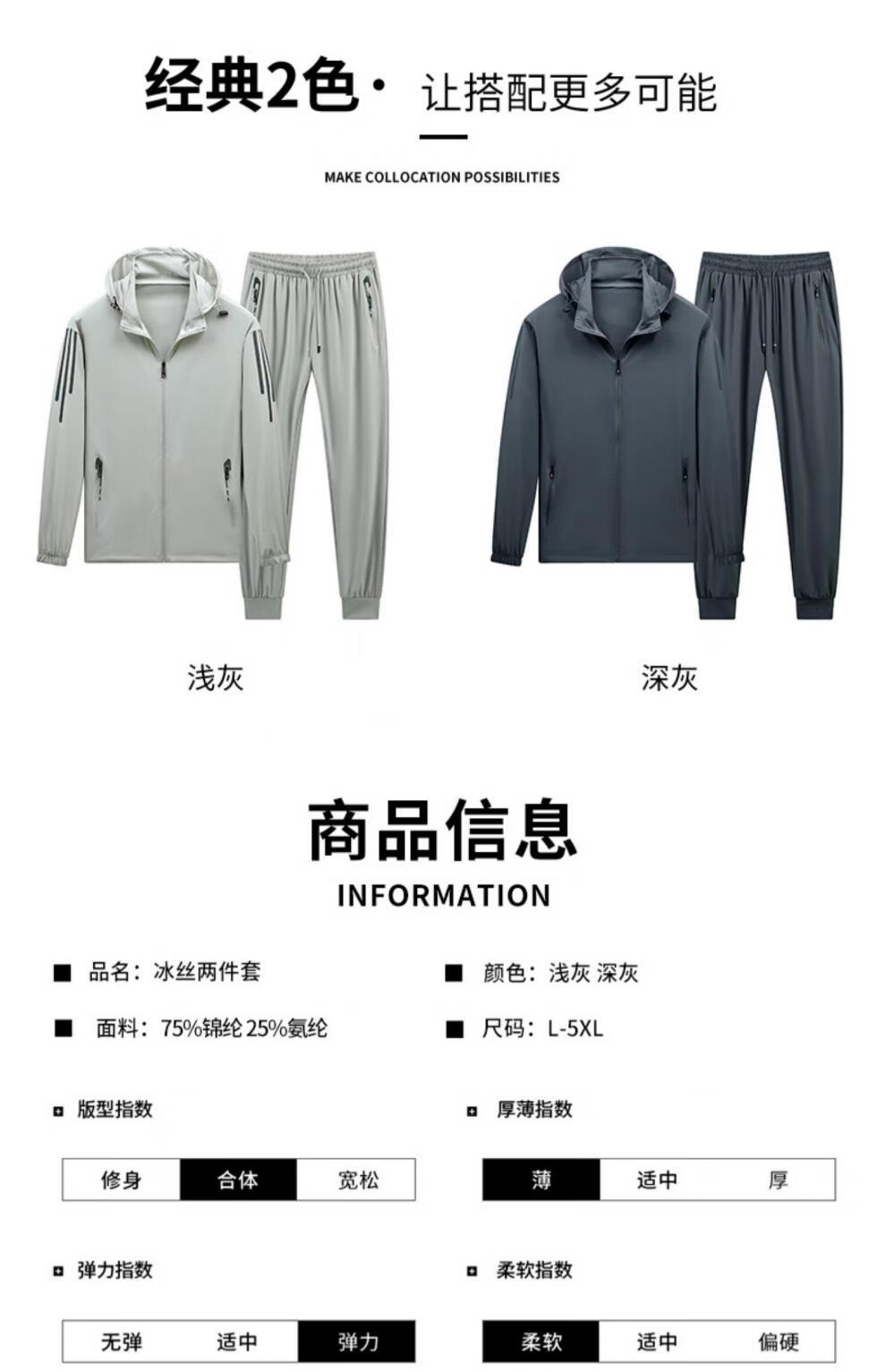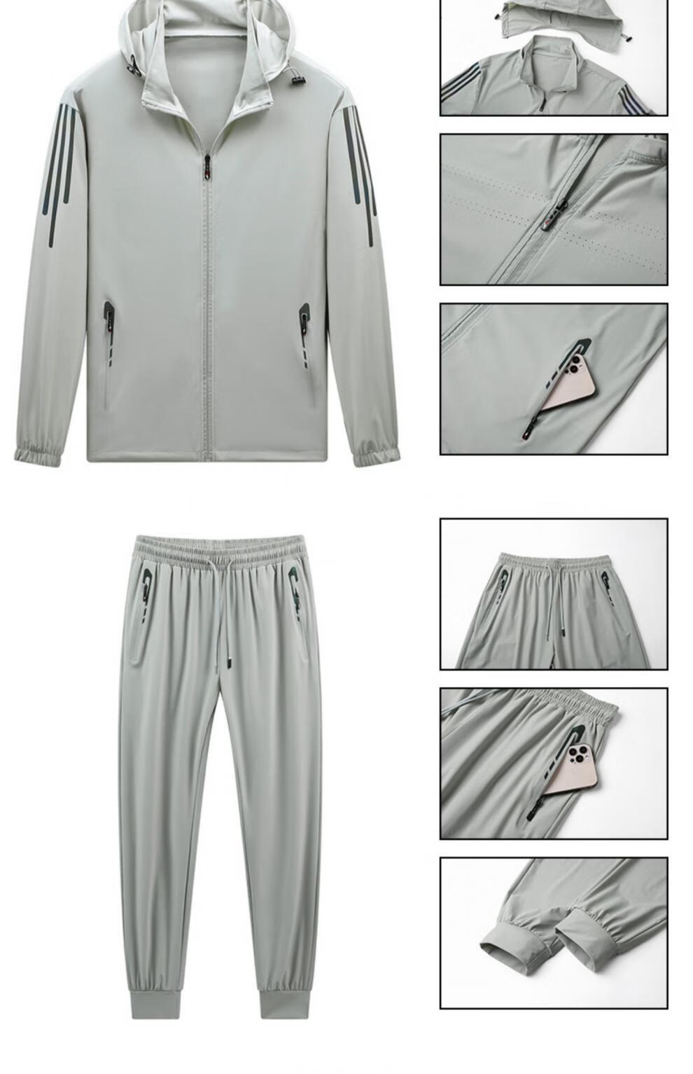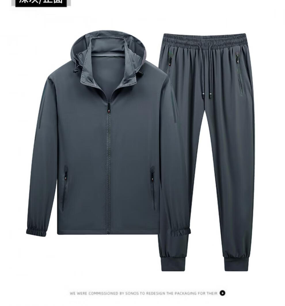 ROMON Ice Silk Fishing Suit Men's Summer Thin Breathable Elastic Sun Protection Clothing Casual Sports Two-piece Set Light Gray L