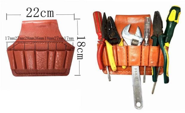 Kangxinya waist bag men's multi-functional tool bag electrician's portable cowhide small repair five-piece set with pure cowhide thickening on the waist, red leather 1-pack without belt