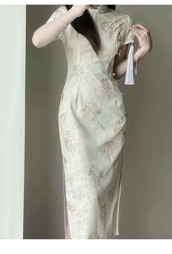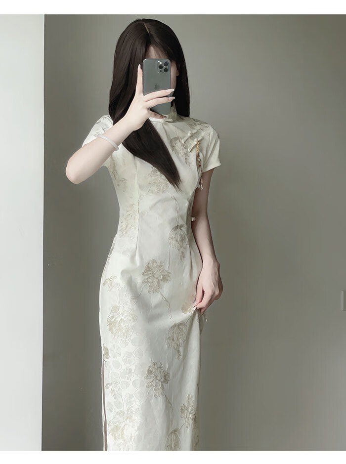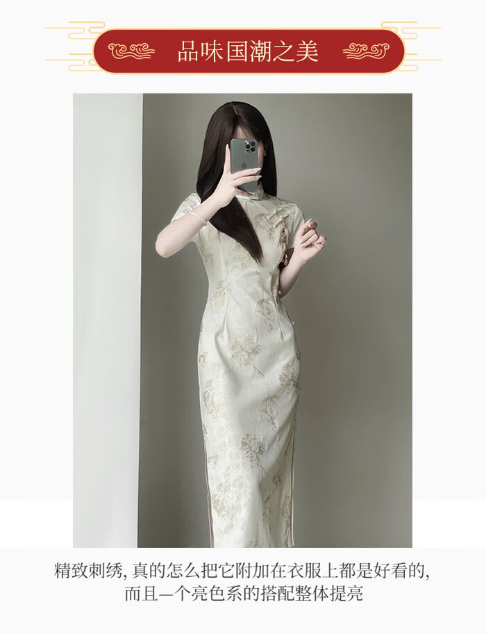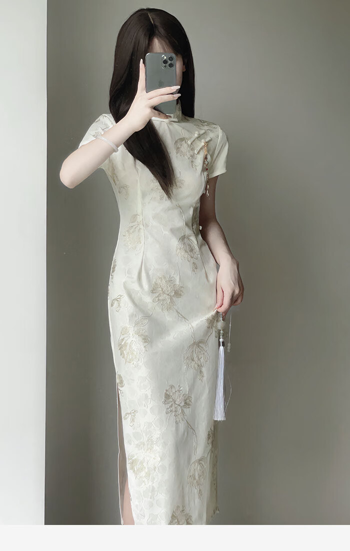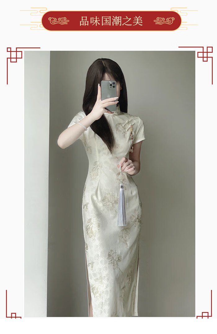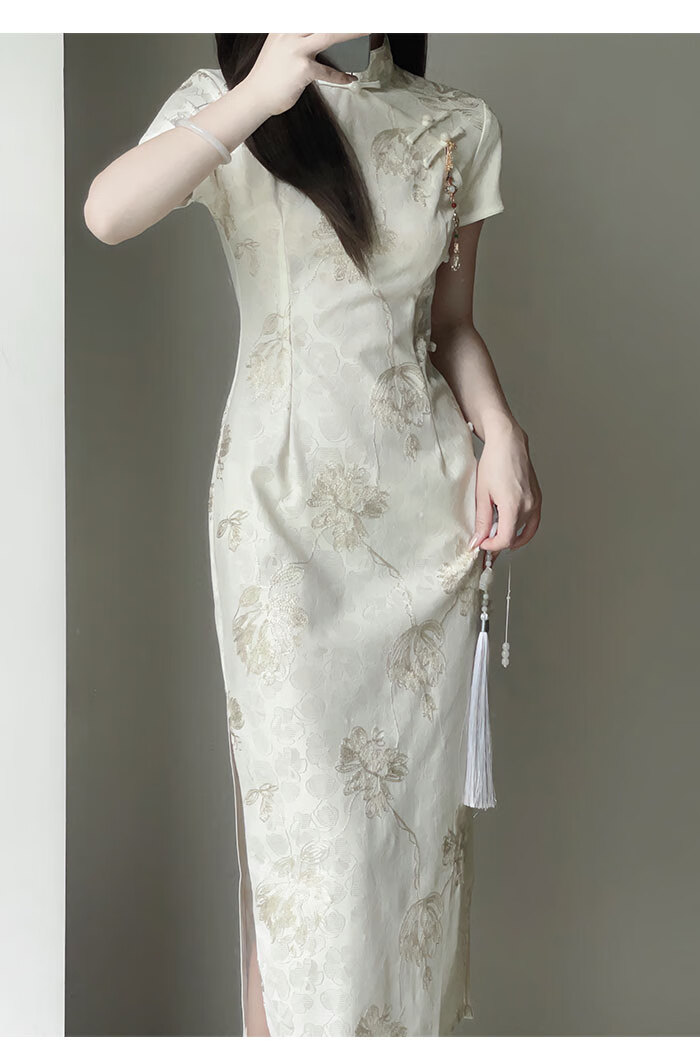 Jialong Mingxiu Cheongsam 2025 New Improved Summer Dress Temperament High-end Young Girl New Chinese Style Apricot M