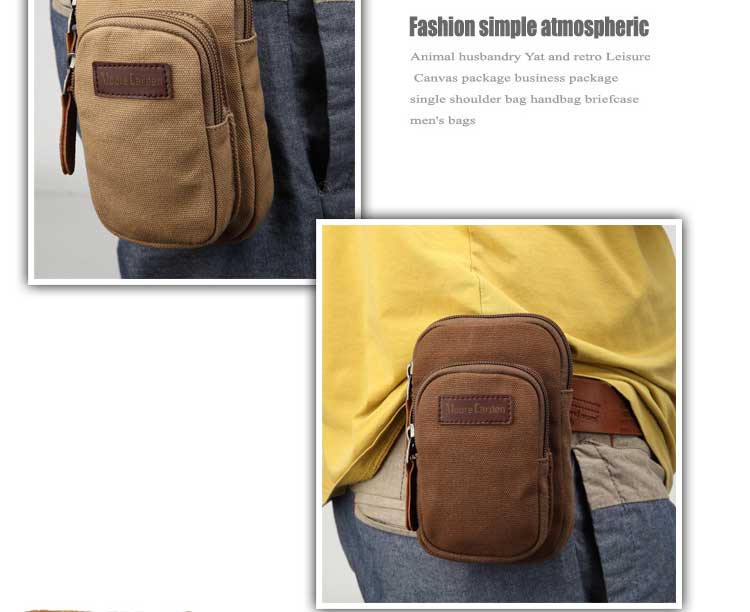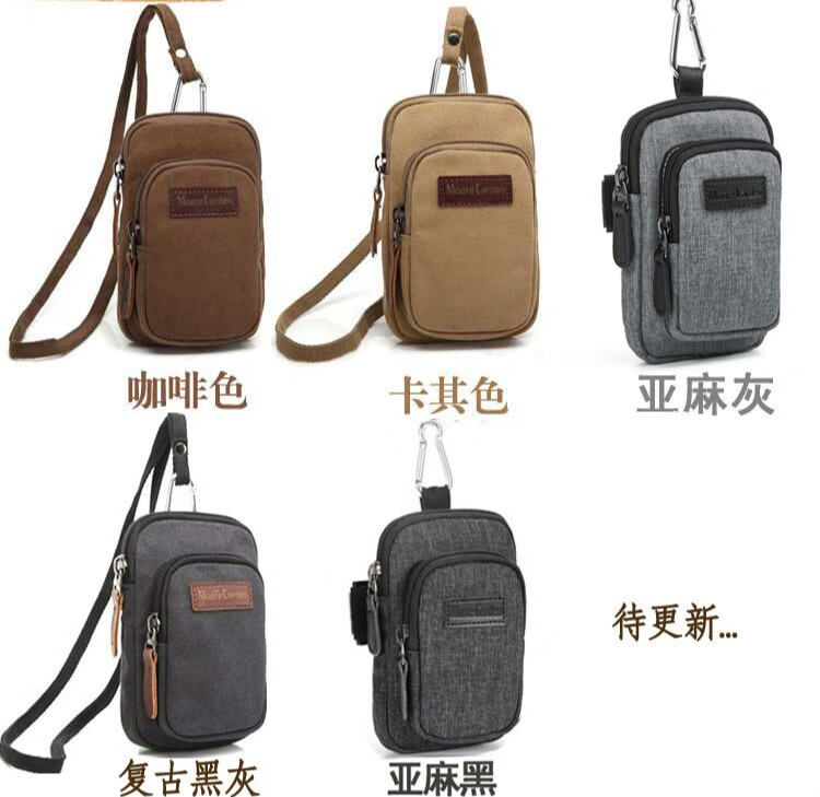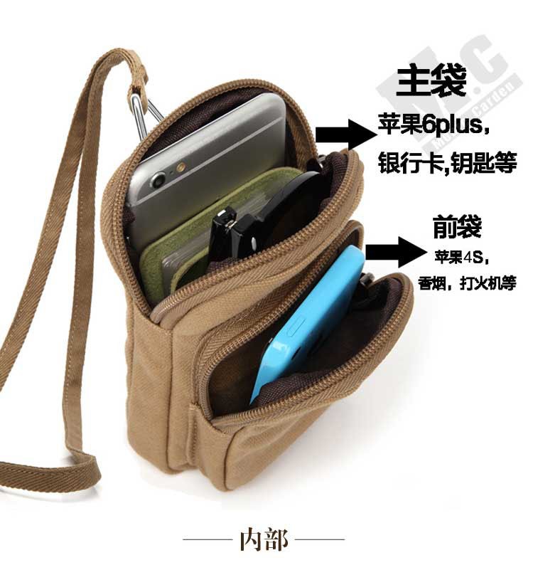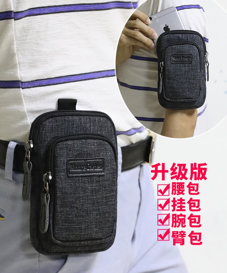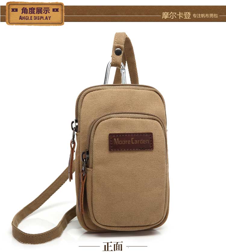 Baoya men's waist bag holds mobile phone, mobile phone bag, men's running wrist bag, multi-functional canvas arm bag, construction site belt for men, upgraded version khaki color