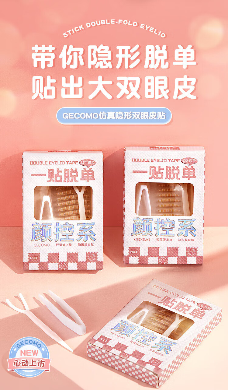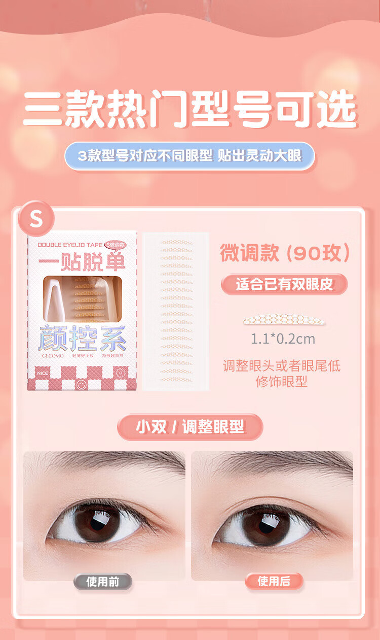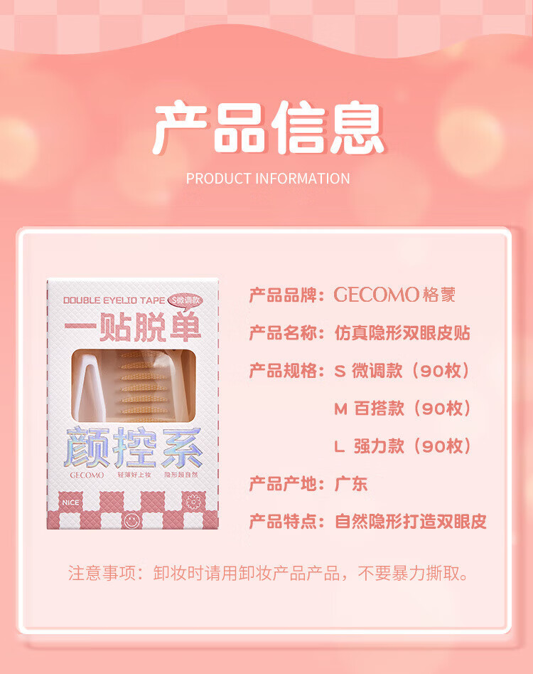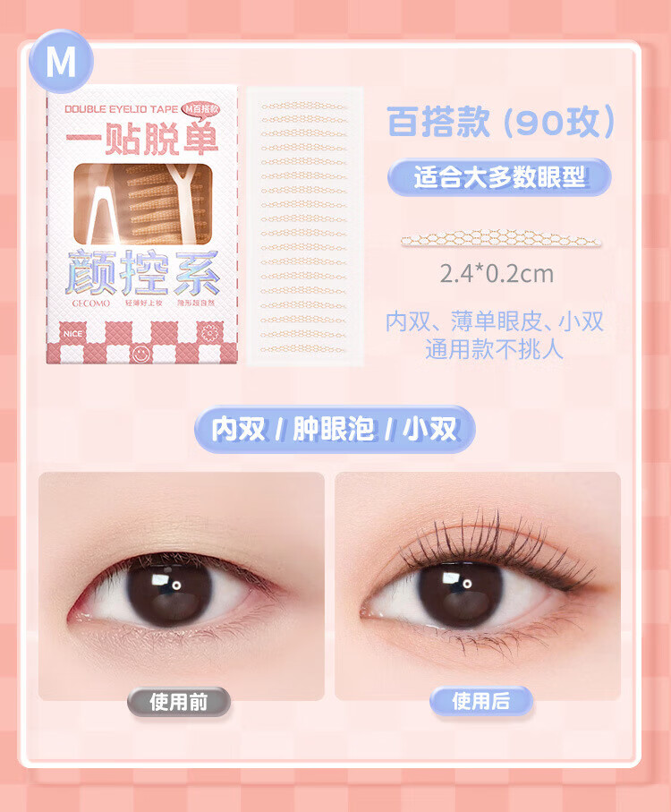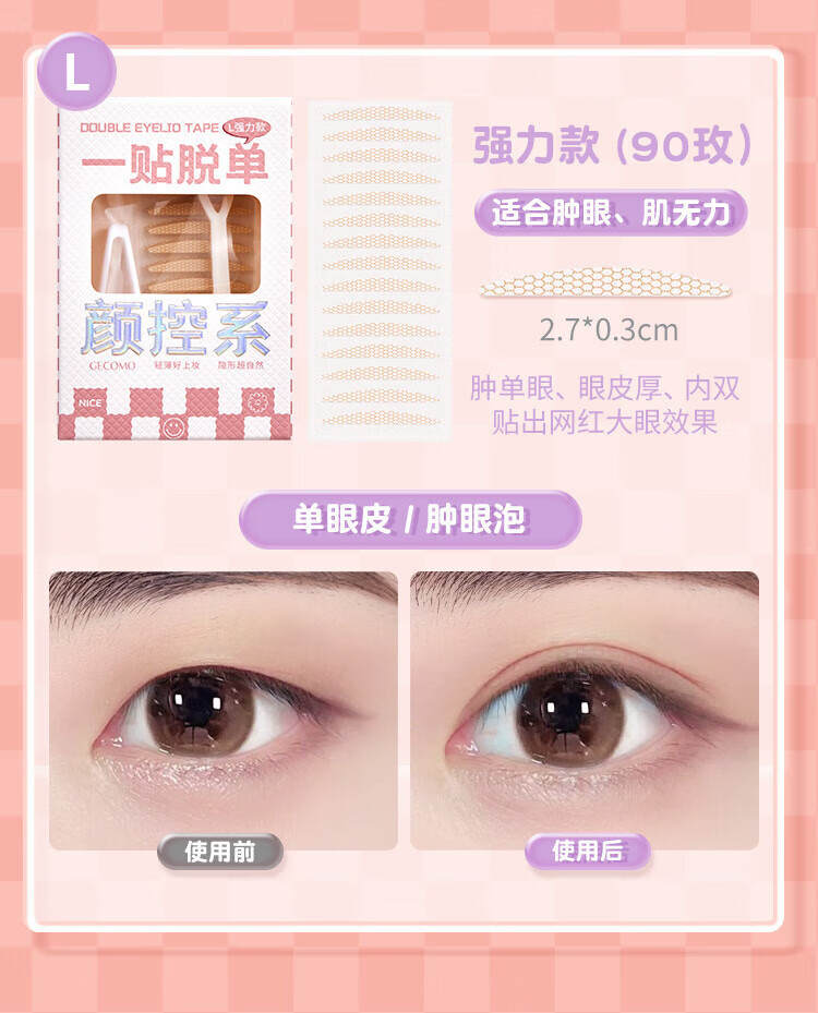 GECOMO simulated invisible double eyelid patch, long-lasting, naturally swollen eyelids with beautiful eyes, specially designed for female beginners and easy to use L strong version (90 pieces) 90 pieces