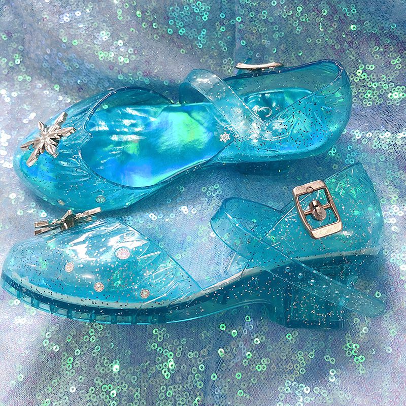 G.duck sandalias de cristal de tacón alto para niñas de pato amarillo Frozen Elsa Princess zapatos iluminados 6-12 zapatos de cristal con luz de flash para niña de 6 a 12 años tamaño 26/27 longitud interior 16,5 cm