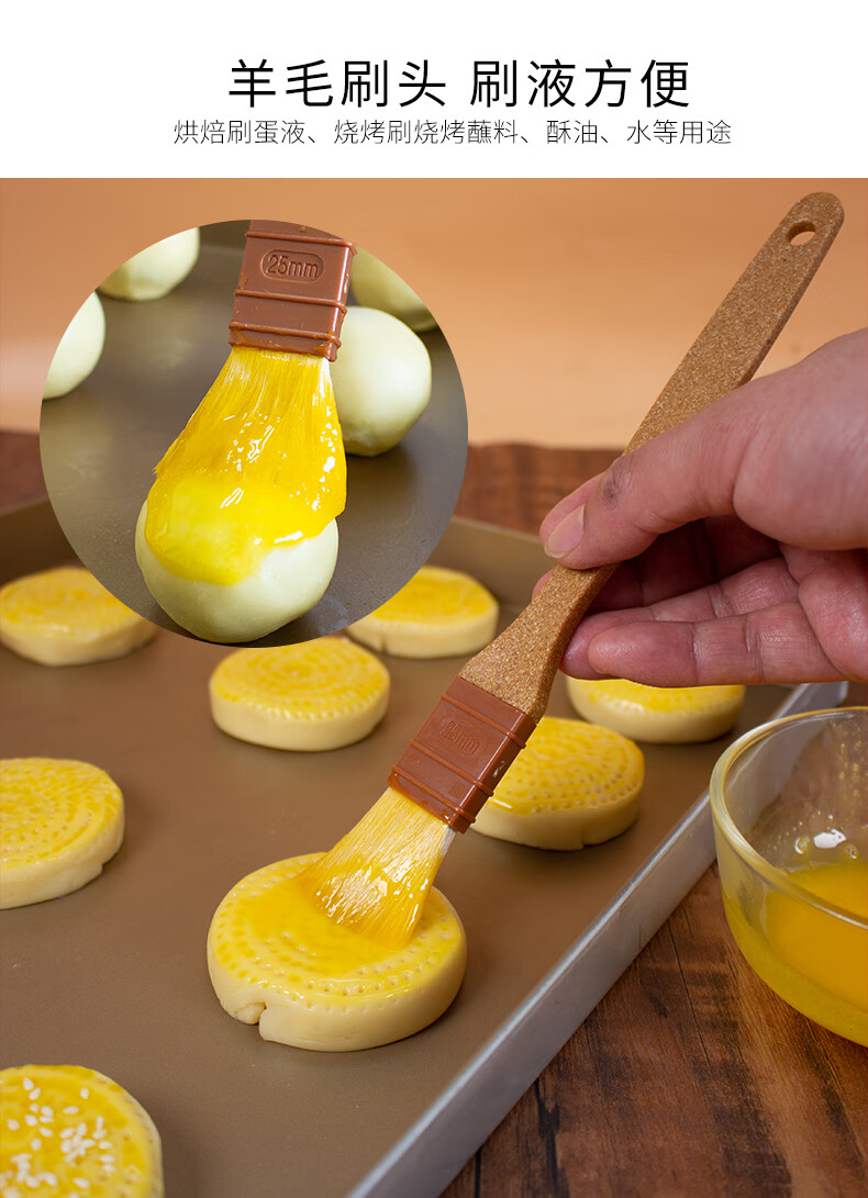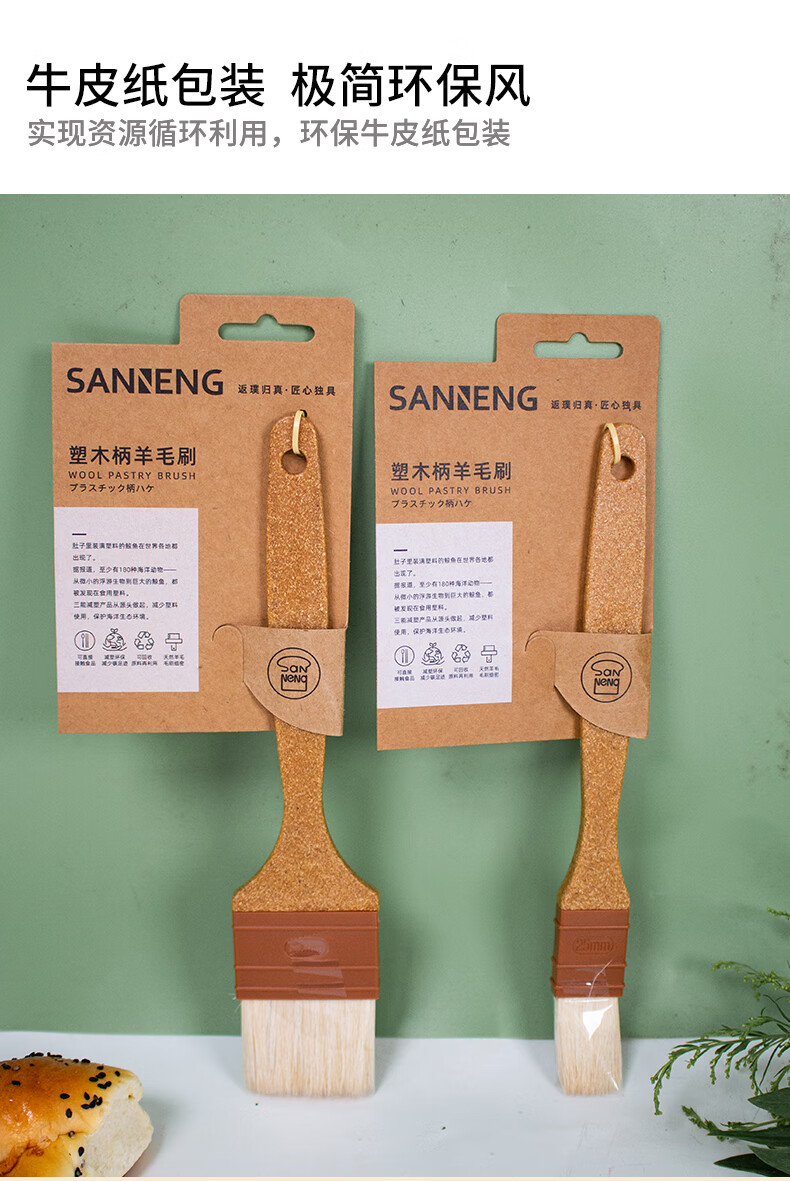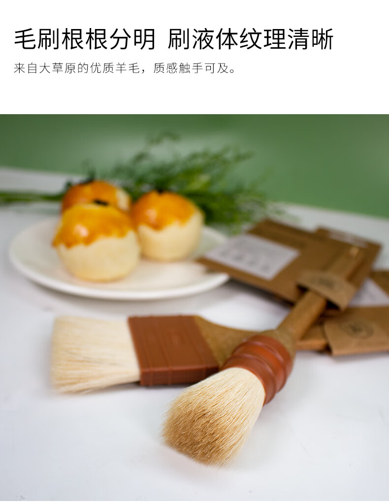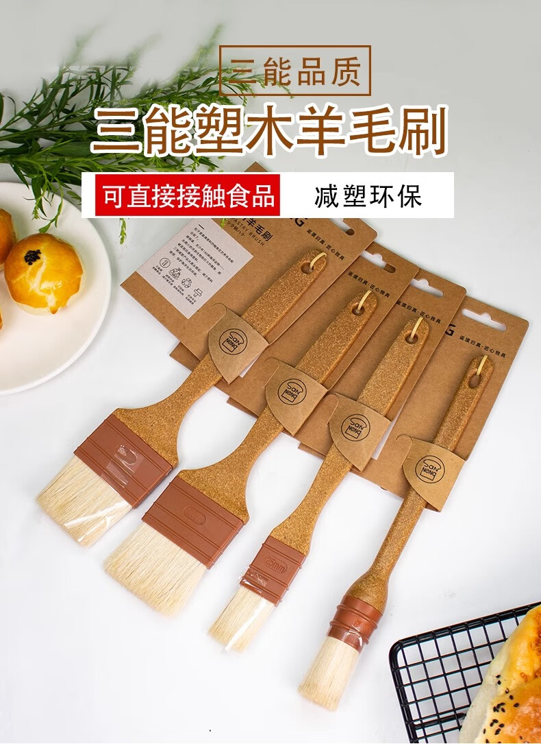 SANNENG Wool Brush Plastic Wood Handle Straight Egg Yolk Mooncake Brush Oil Brush Egg Liquid Brush Sauce Kitchen Baking BBQ Brush Plastic Wood Handle Straight Wool Brush - Medium No. SN4043