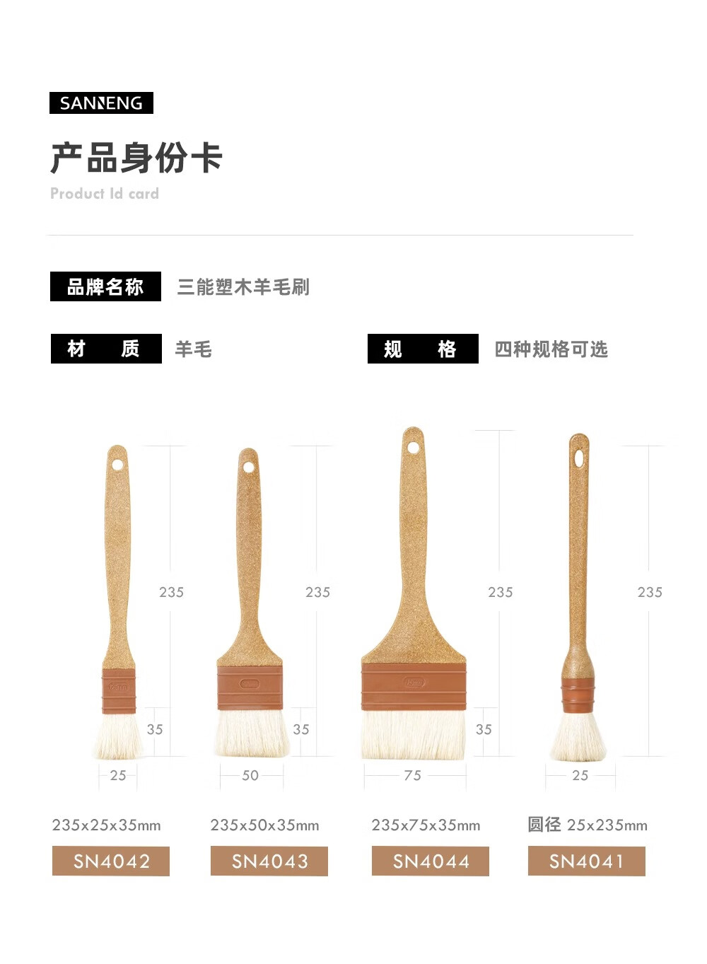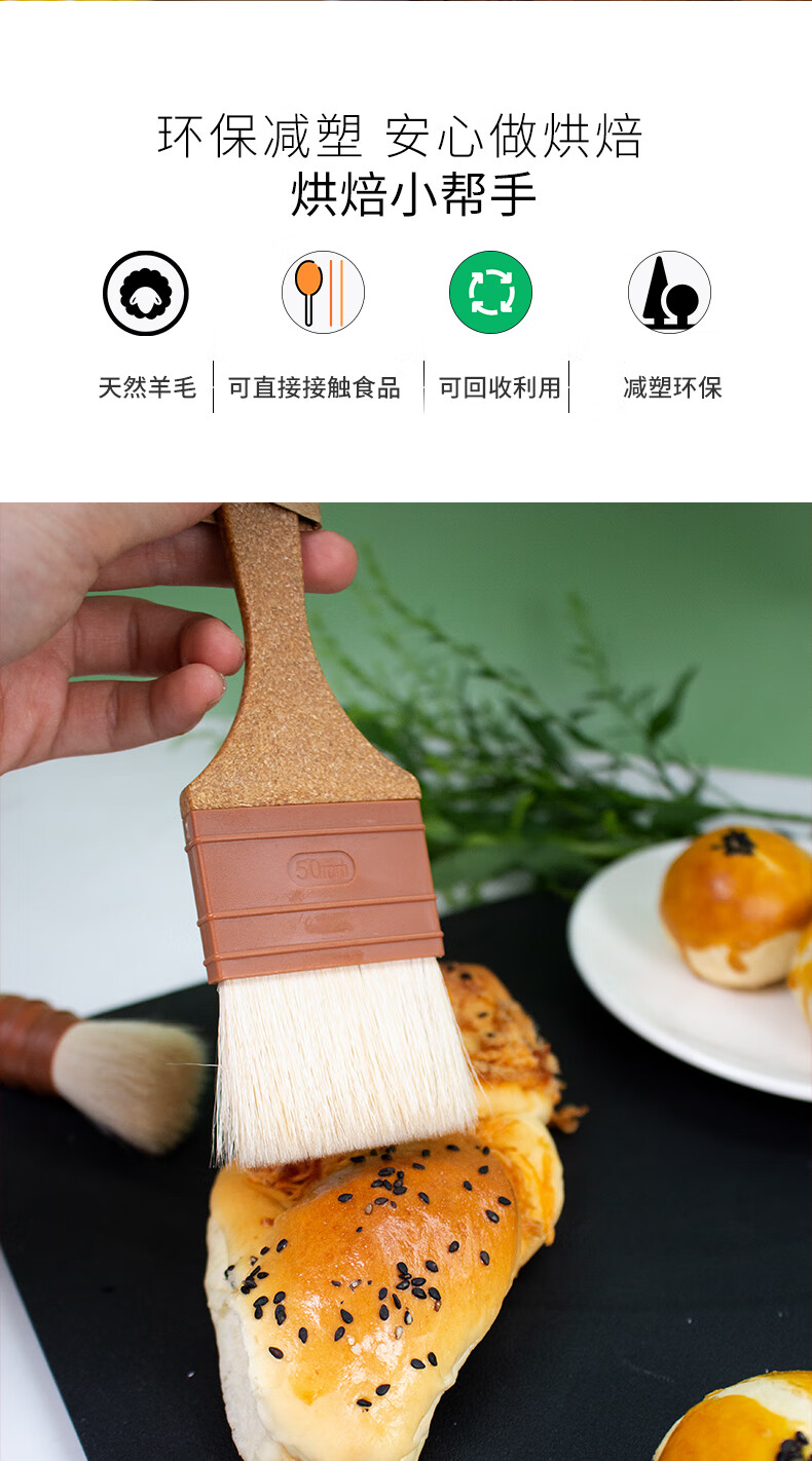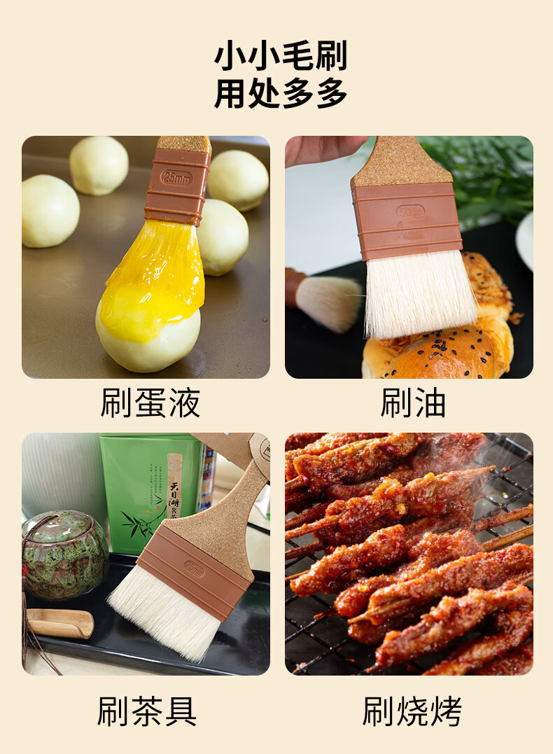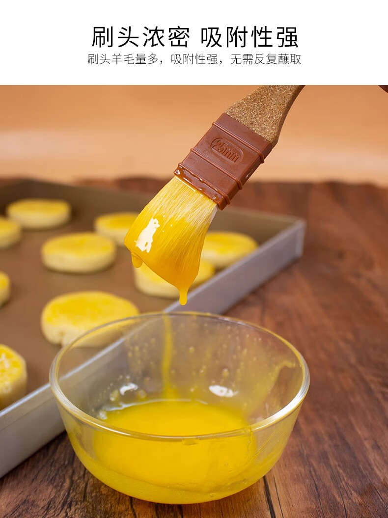SANNENG Wool Brush Plastic Wood Handle Straight Egg Yolk Mooncake Brush Oil Brush Egg Liquid Brush Sauce Kitchen Baking BBQ Brush Plastic Wood Handle Straight Wool Brush - Medium No. SN4043