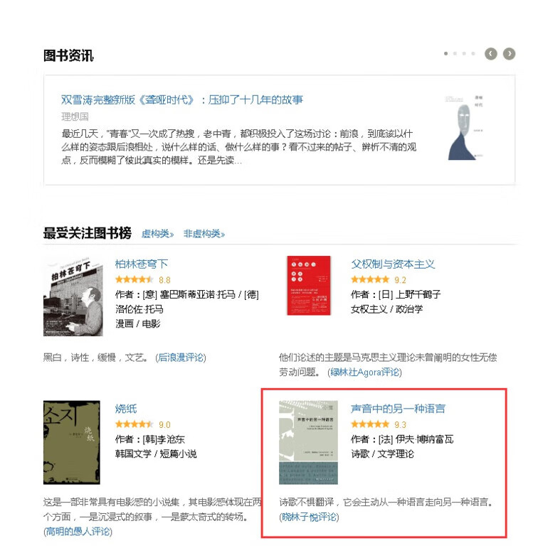 <Another Language in the Voice> Daya & Baideya Humanities Series. Douban's most popular books list continues to be on the list! The first Chinese translation of the famous contemporary poet and translator Bonnefoy's translation works. The most important translation treatise since Benjamin's