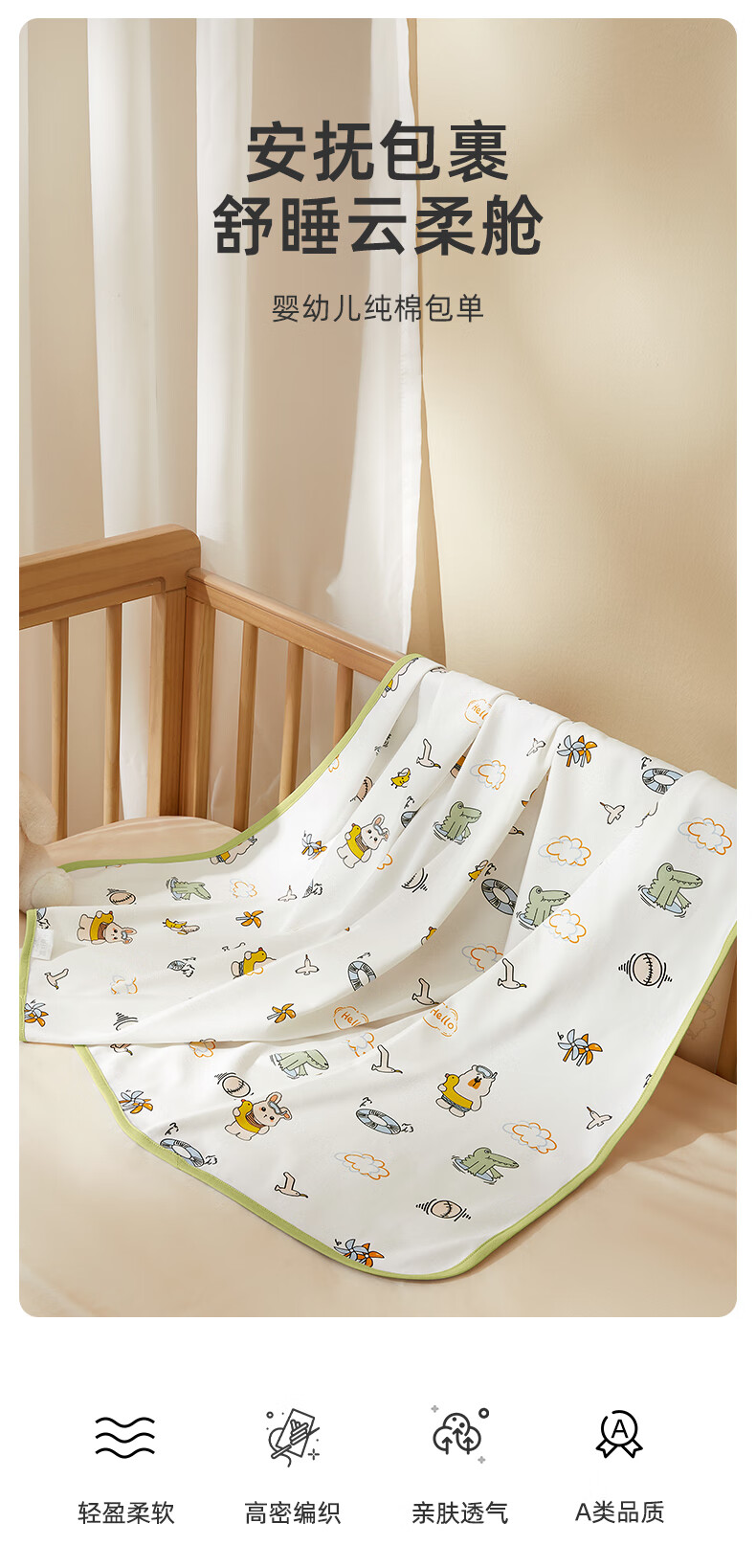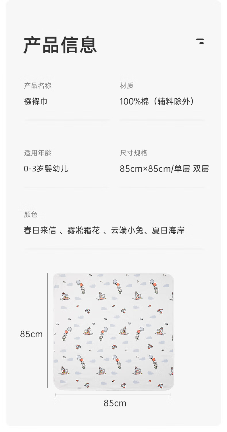 October Crystallized Baby Cover Sheet Newborn Baby Cover Pure Cotton Quilt Maternity Room Supplies Cloud Bunny Spring and Summer Single Layer 85*85cm