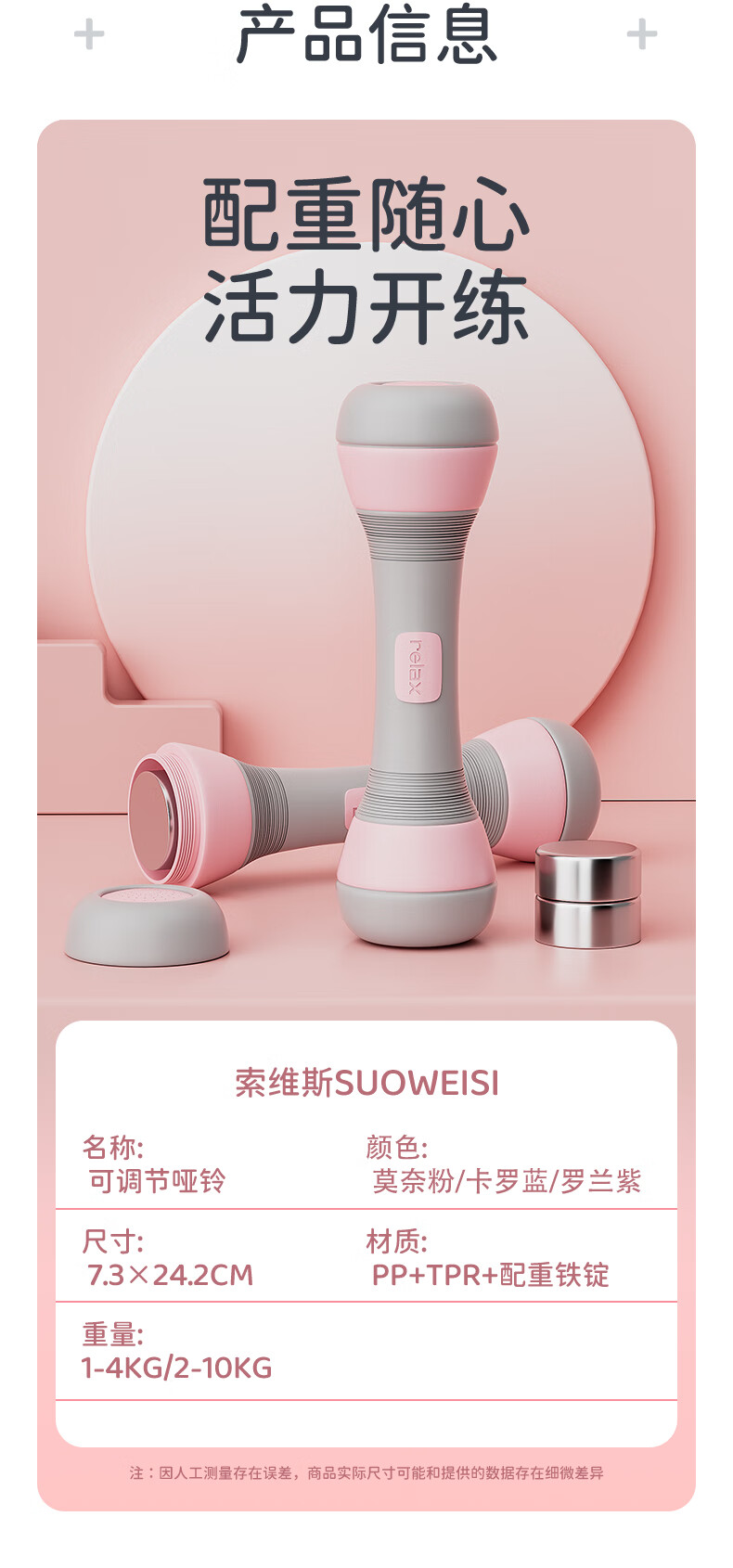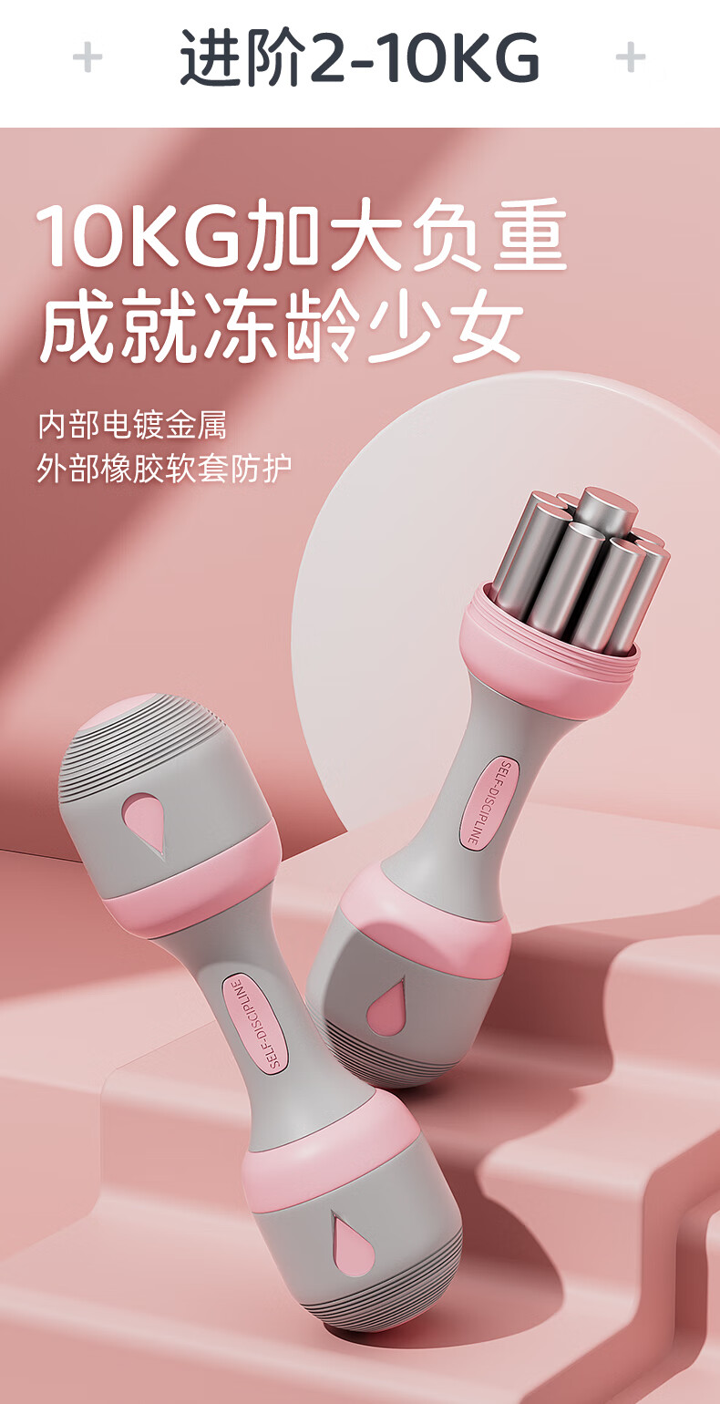 Suoweisi (SUOWEISI) women's adjustable weight fitness home fitness equipment slim arm girls and children's arm muscle training dumbbells Sakura pink single 5kg adjustable pair 10kg