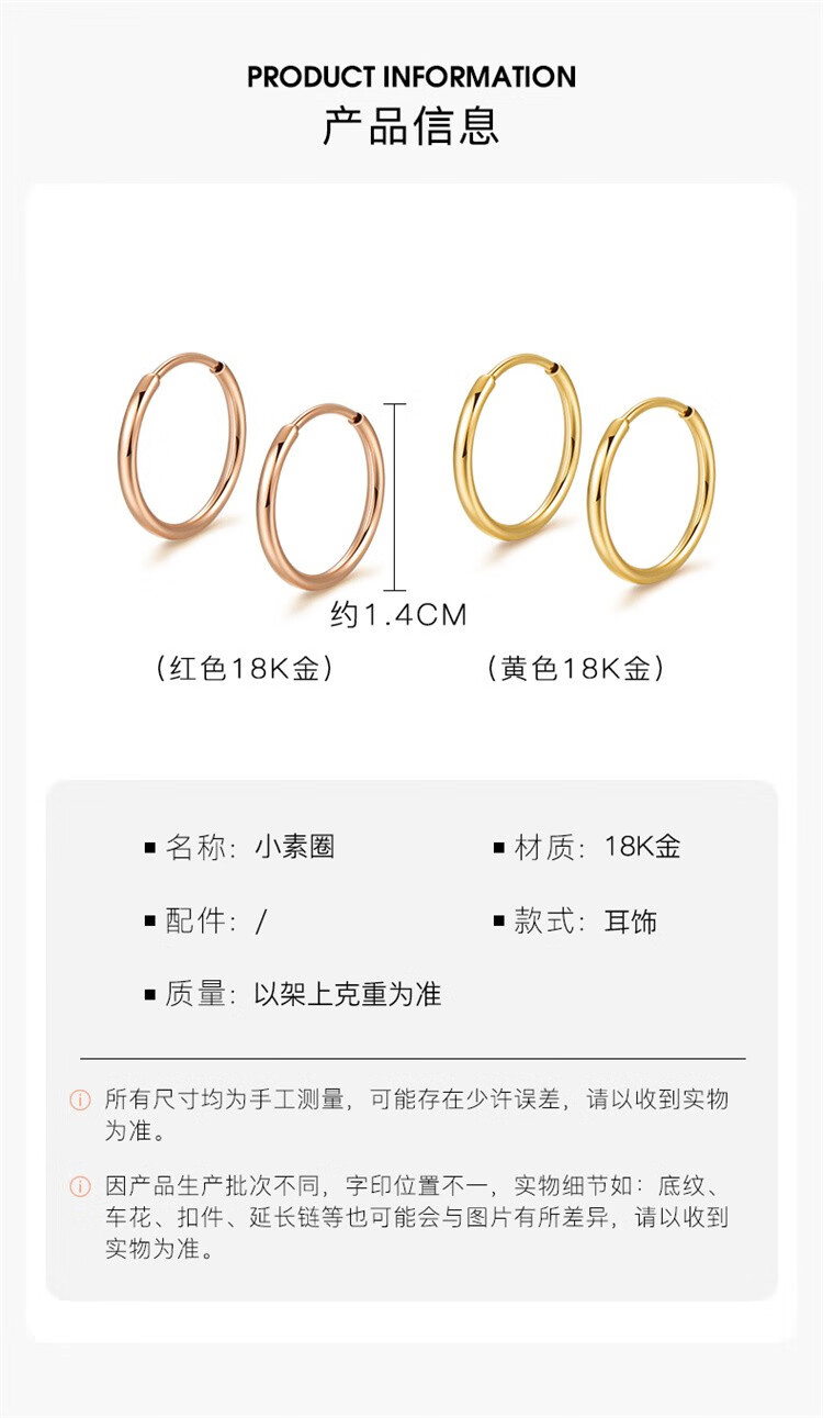Ming brand jewelry red and yellow 18K gold versatile color gold plain hoop small earrings earrings for gift women CSH0284 pricing about 0.66-0.87 grams K red style CSH0284