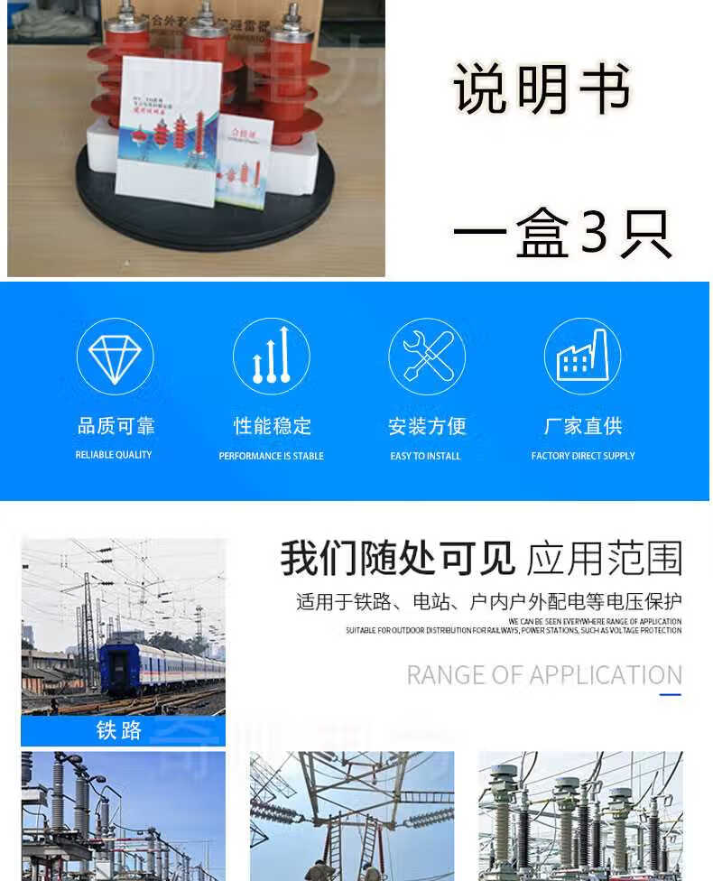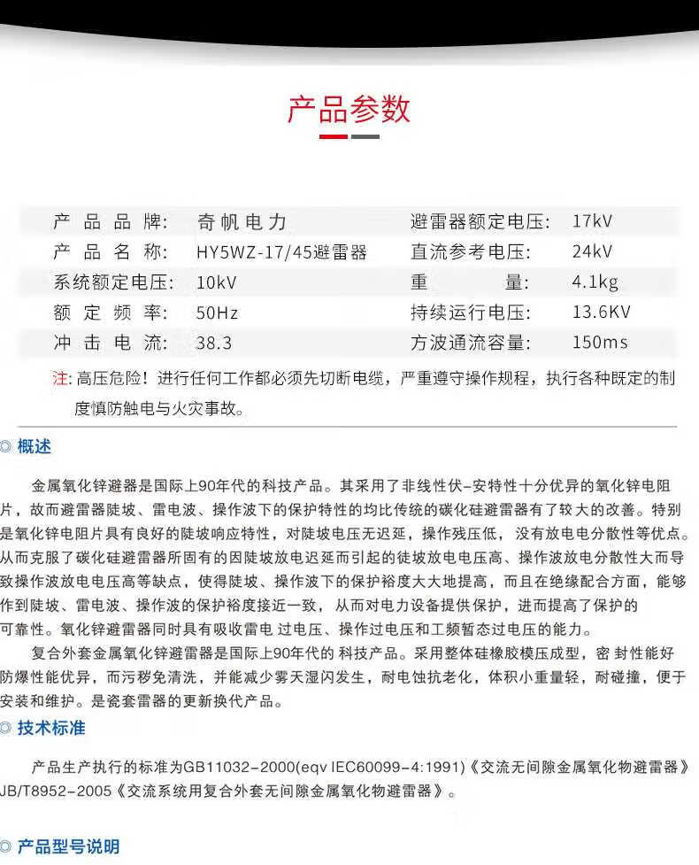 10KV zinc oxide arrester HY5WS-17/50L tripping high voltage arrester with disconnector mounting bracket