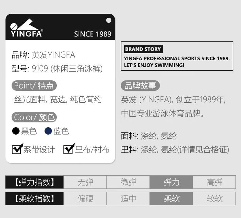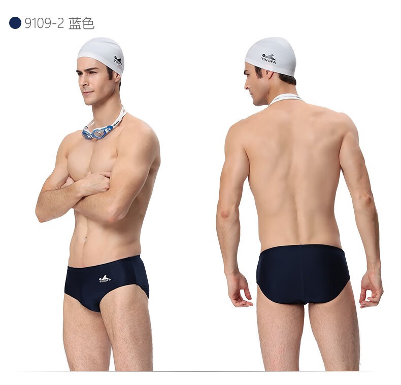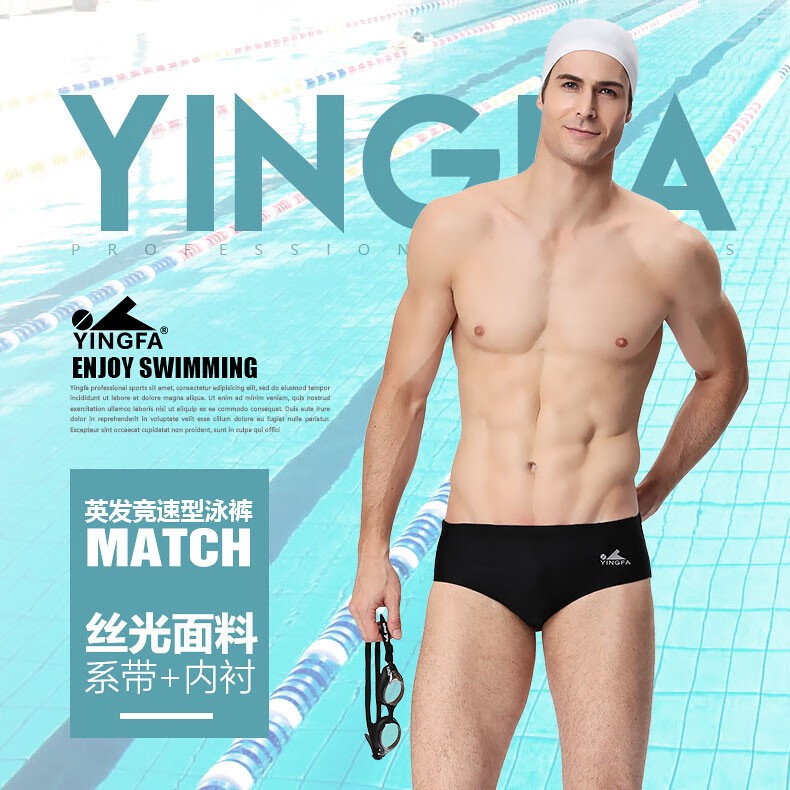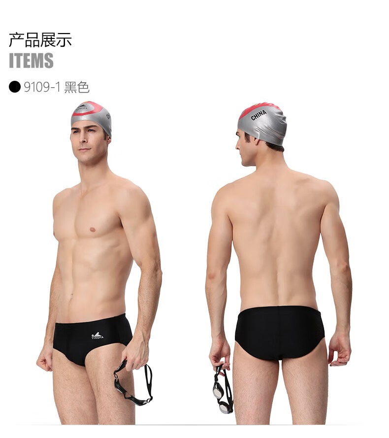 YINGFA men's solid color wide-brimmed briefs professional competition training racing dry breathable chlorine-resistant comfortable swimming trunks equipment 9109-1 black 2XL (waist circumference 83-88cm)