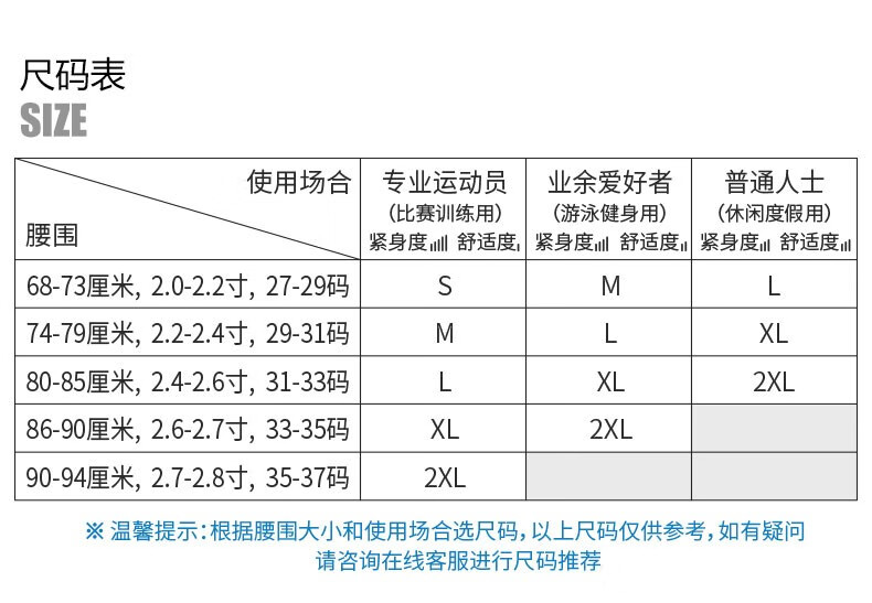 USA(inch) 28-30 30-32 32-34 34-38 38-42