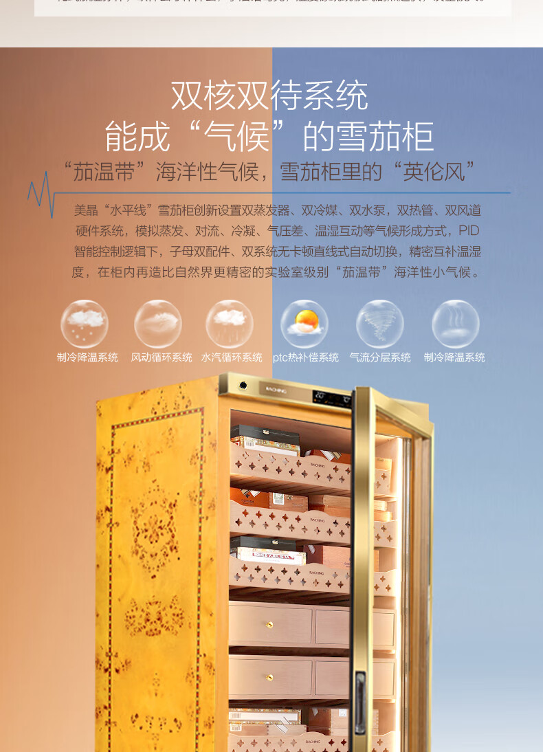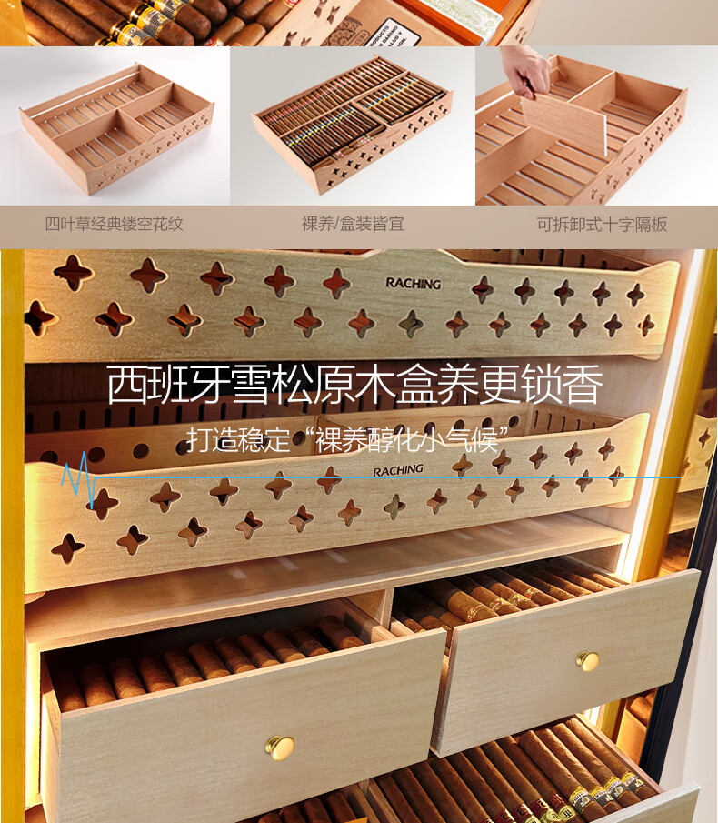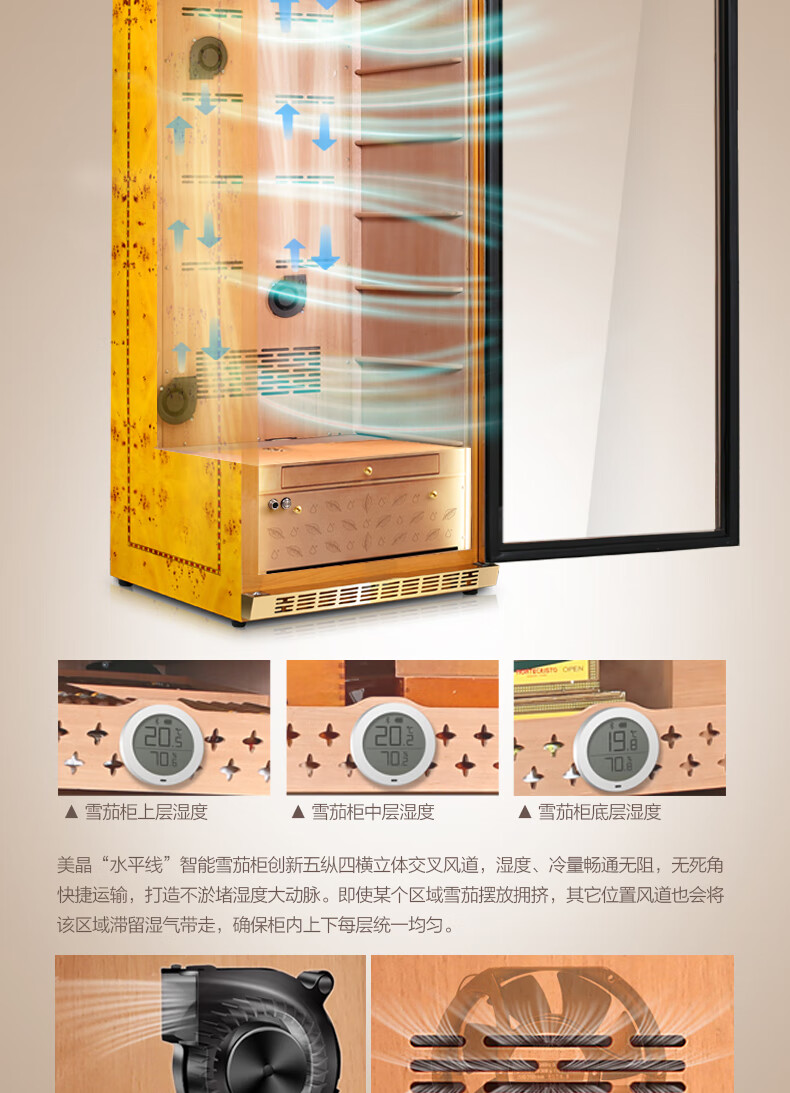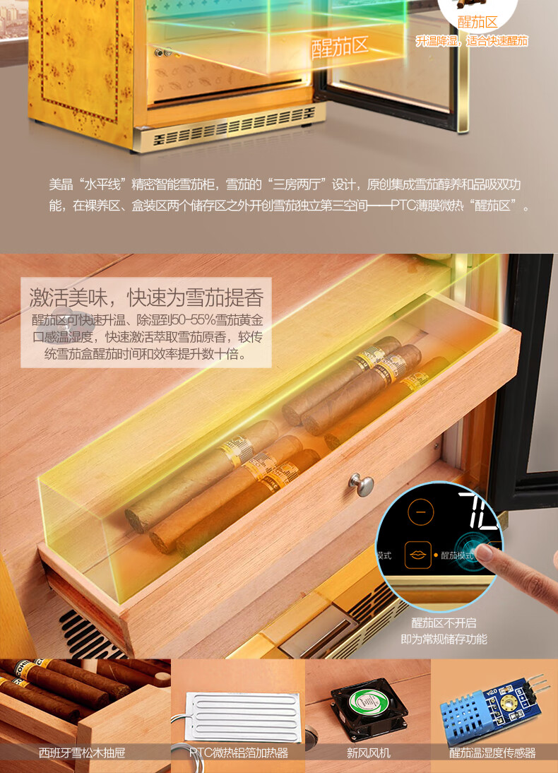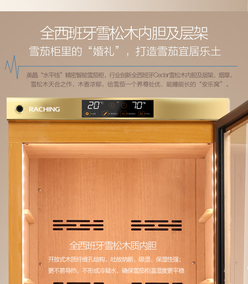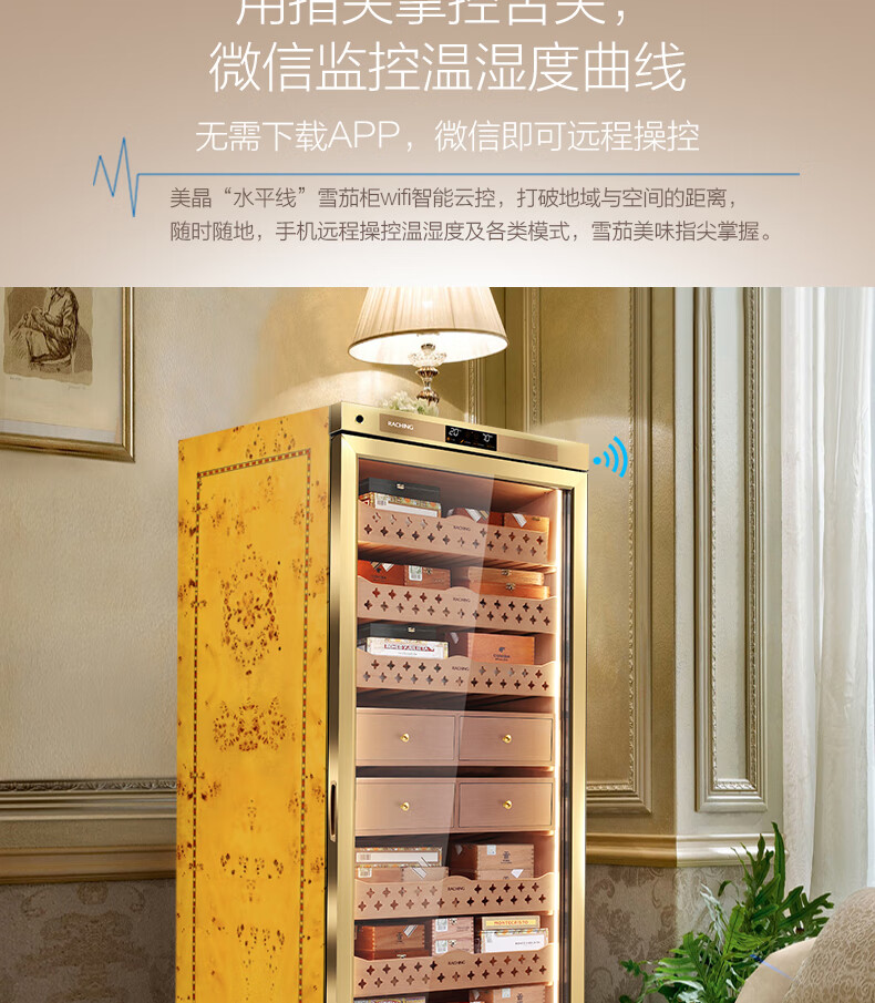 Meijing (raching) MON5800A WIFI smart solid wood horizontal line constant temperature constant temperature large capacity cigar cabinet temperature control humidity cigar humidifier home starry sky black (Spanish cedar wood shelf) + ammonia purifier