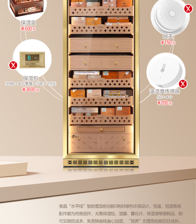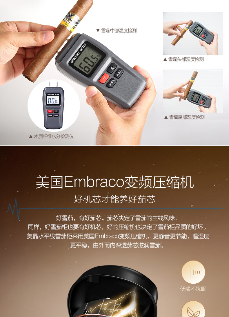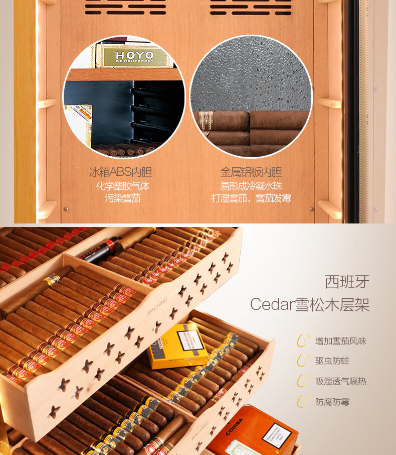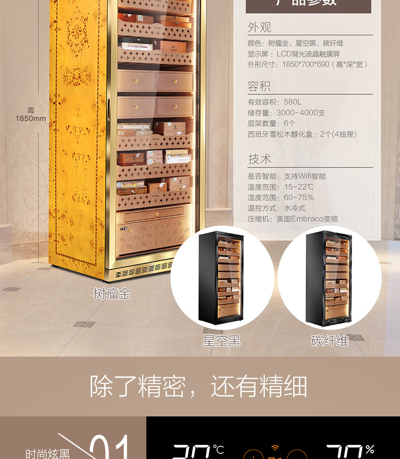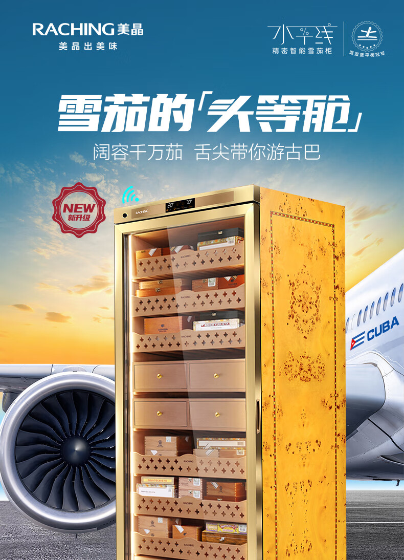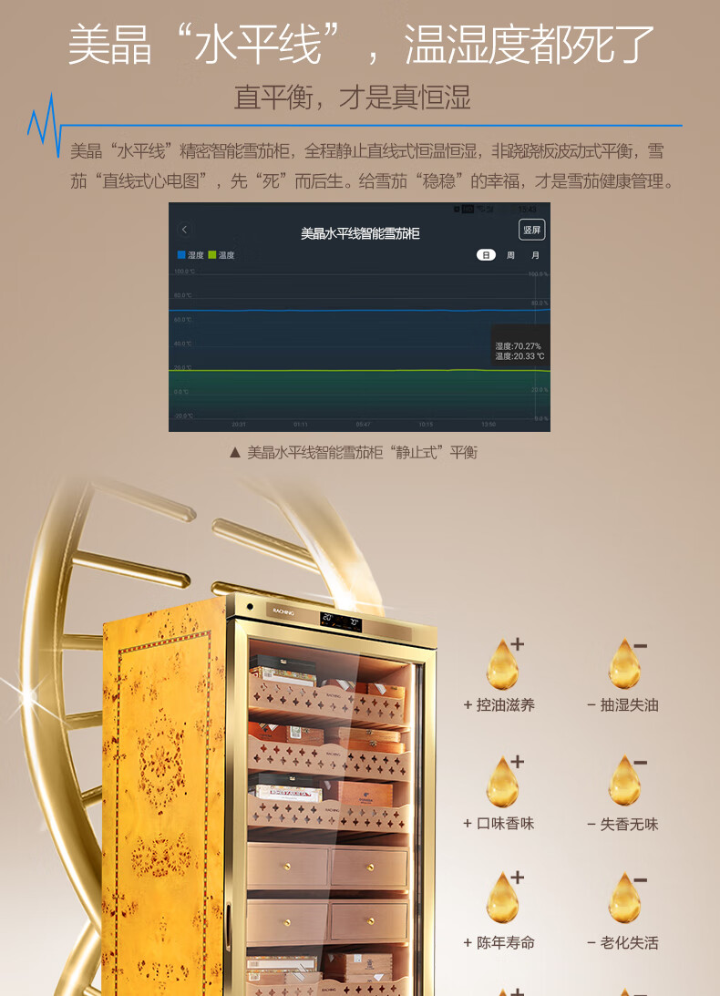Meijing (raching) MON5800A WIFI smart solid wood horizontal line constant temperature constant temperature large capacity cigar cabinet temperature control humidity cigar humidifier home starry sky black (Spanish cedar wood shelf) + ammonia purifier
