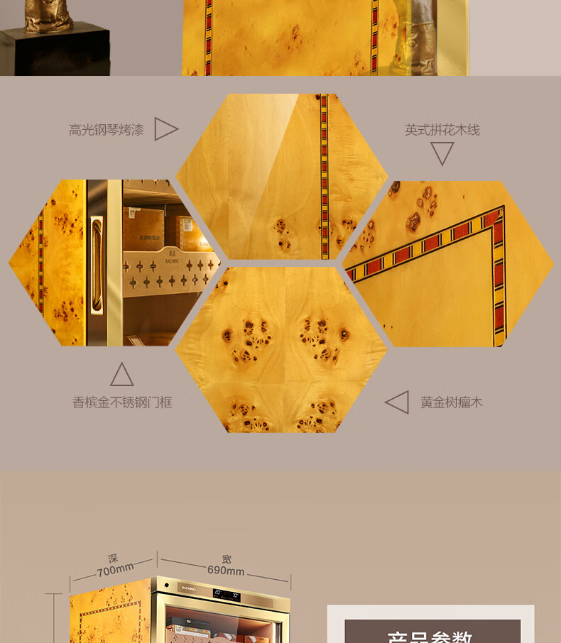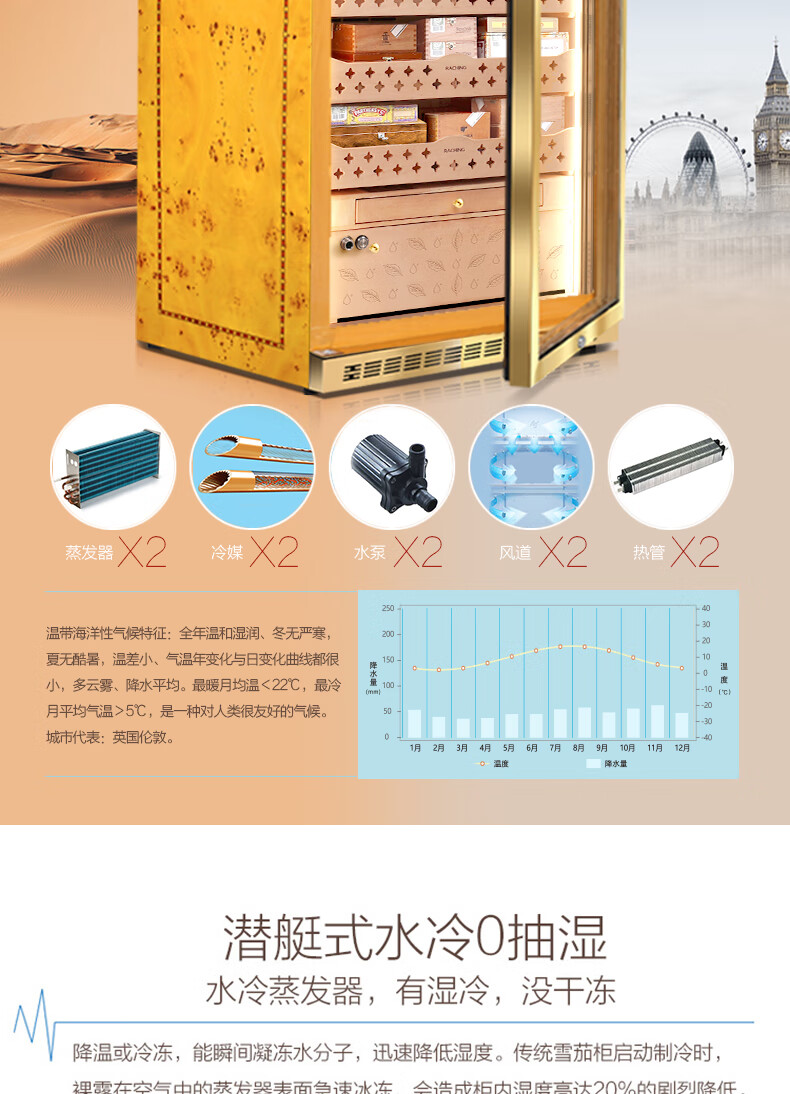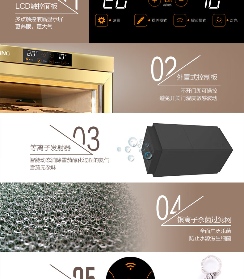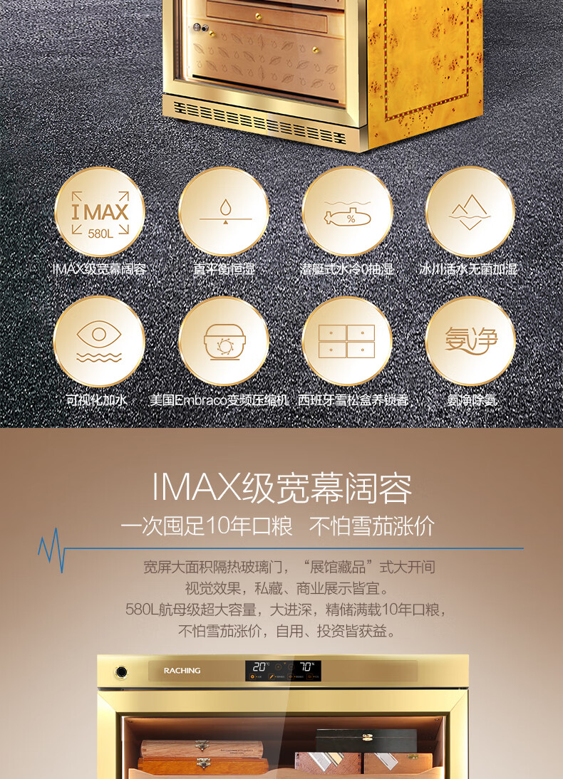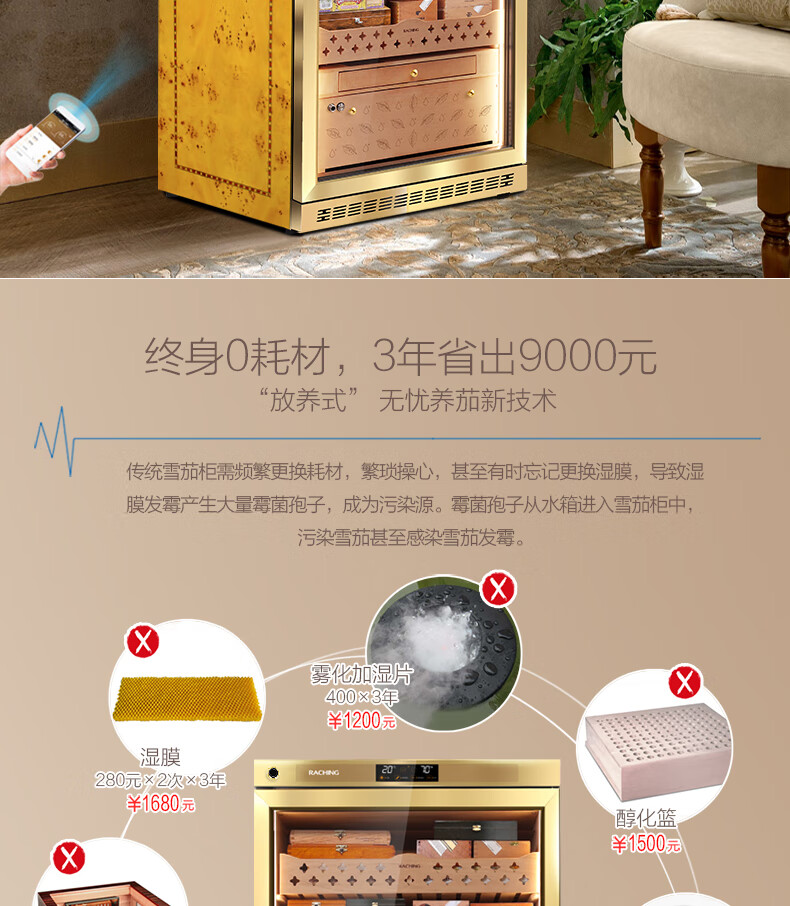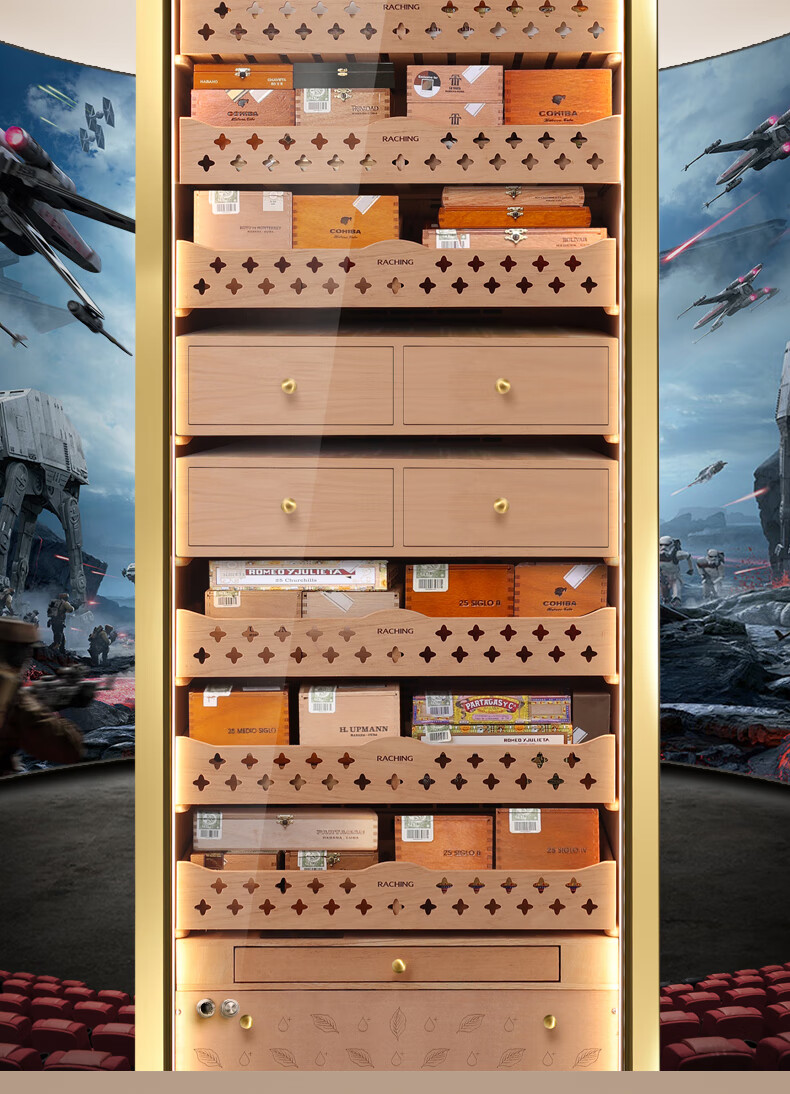 Meijing (raching) MON5800A WIFI smart solid wood horizontal line constant temperature constant temperature large capacity cigar cabinet temperature control humidity cigar humidifier home starry sky black (Spanish cedar wood shelf) + ammonia purifier